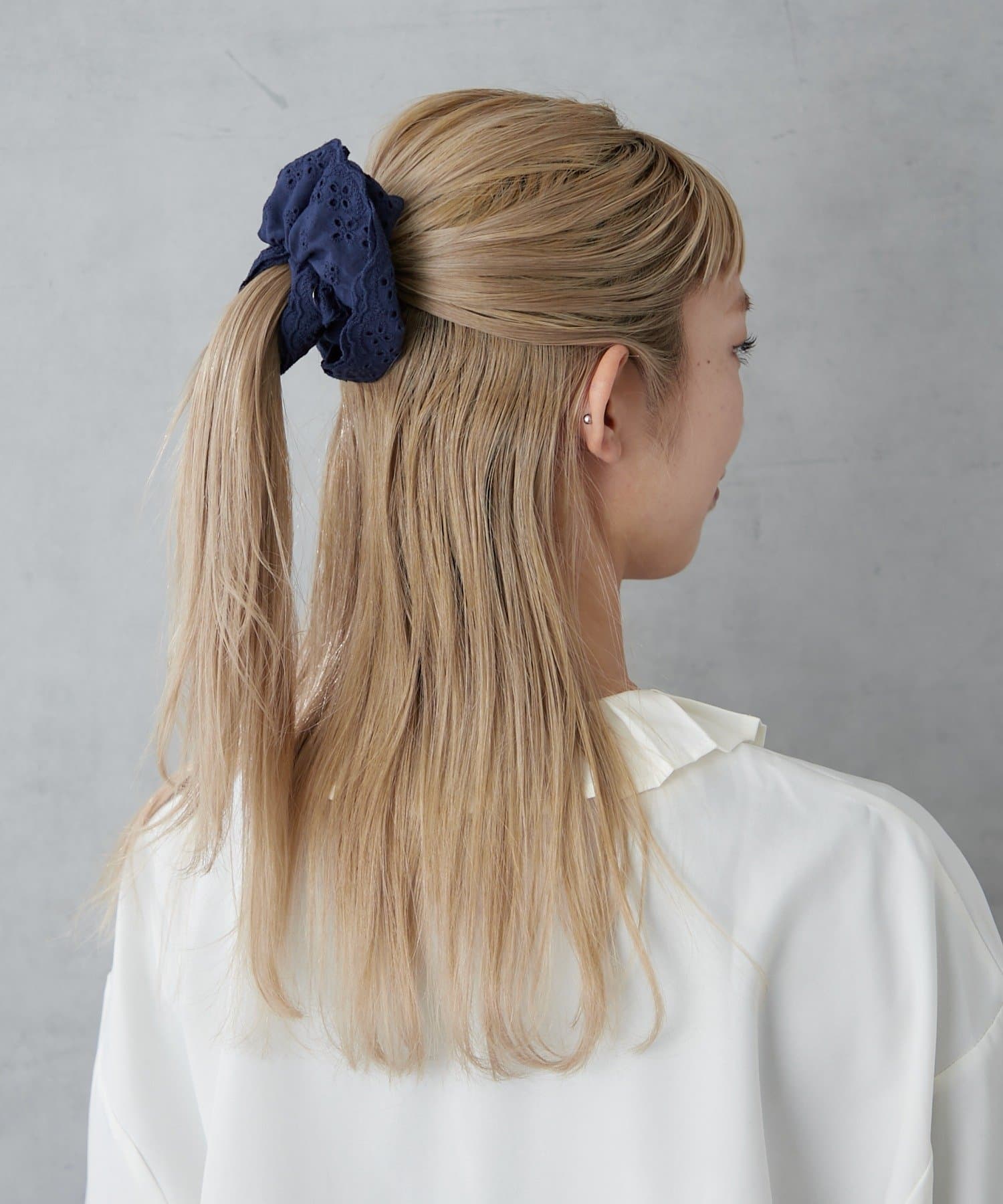 いつものヘアスタイルに、さり気ない甘さをプラスしてくれるレースシュシュ。