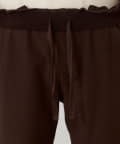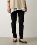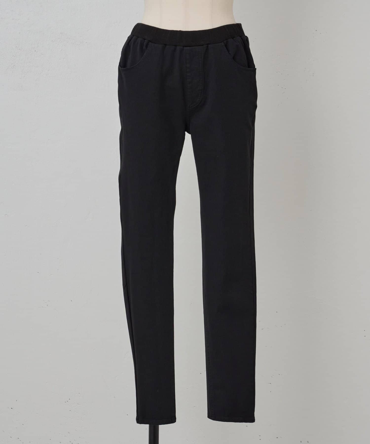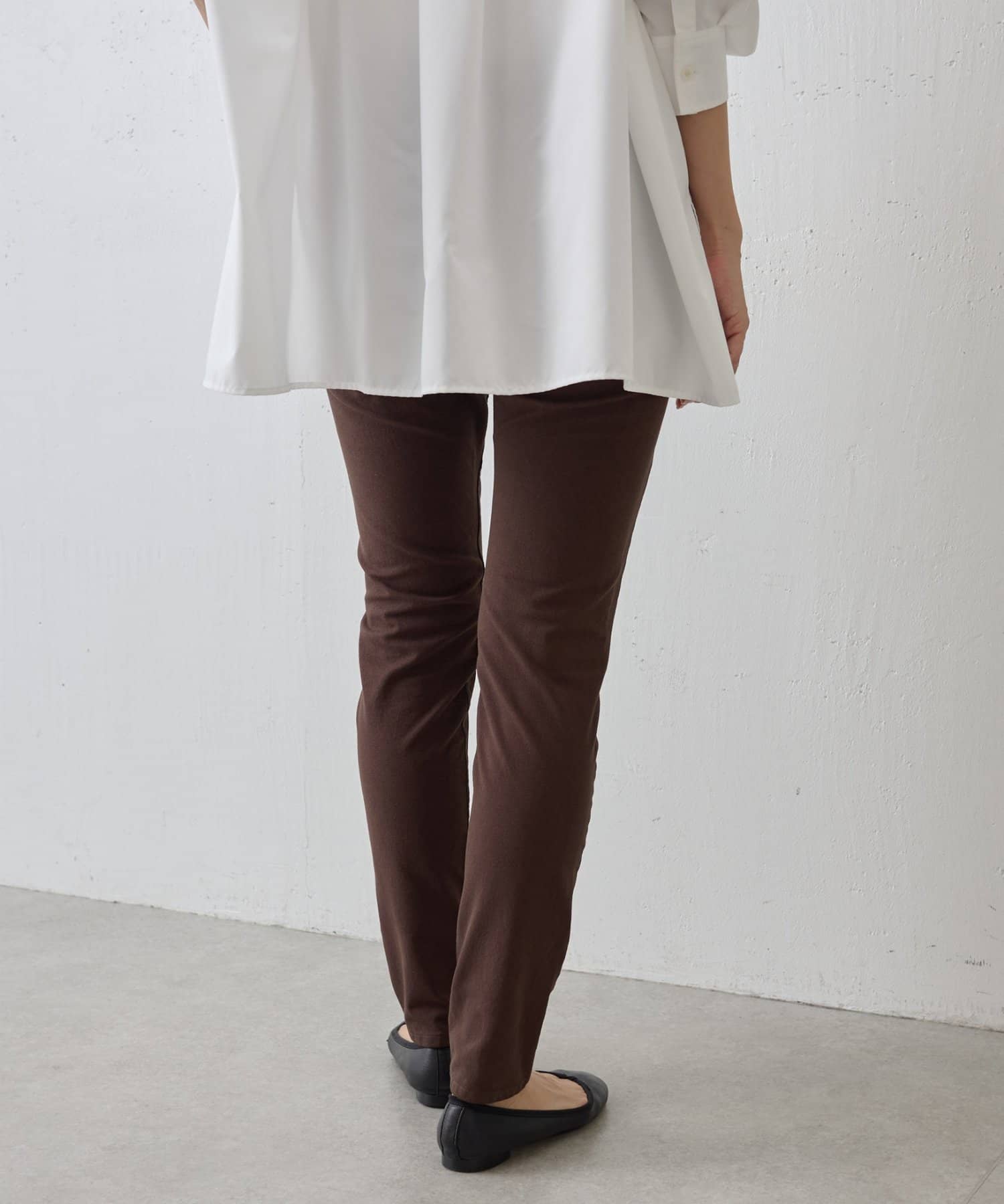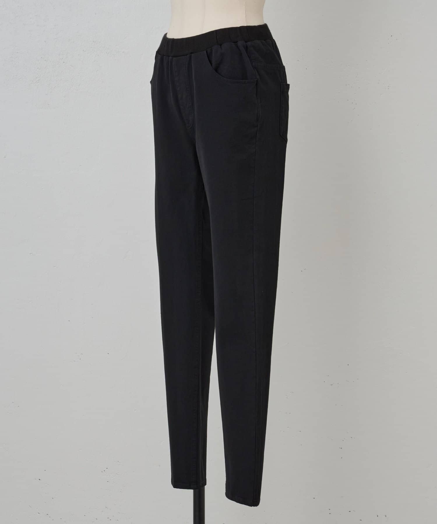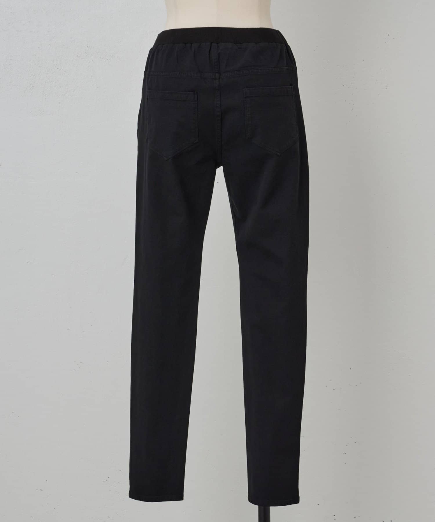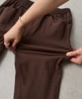 着脱が簡単なウエストゴム仕様。シンプルなデザインなので他のアイテムとも相性が良く、一枚あると便利なアイテムです。