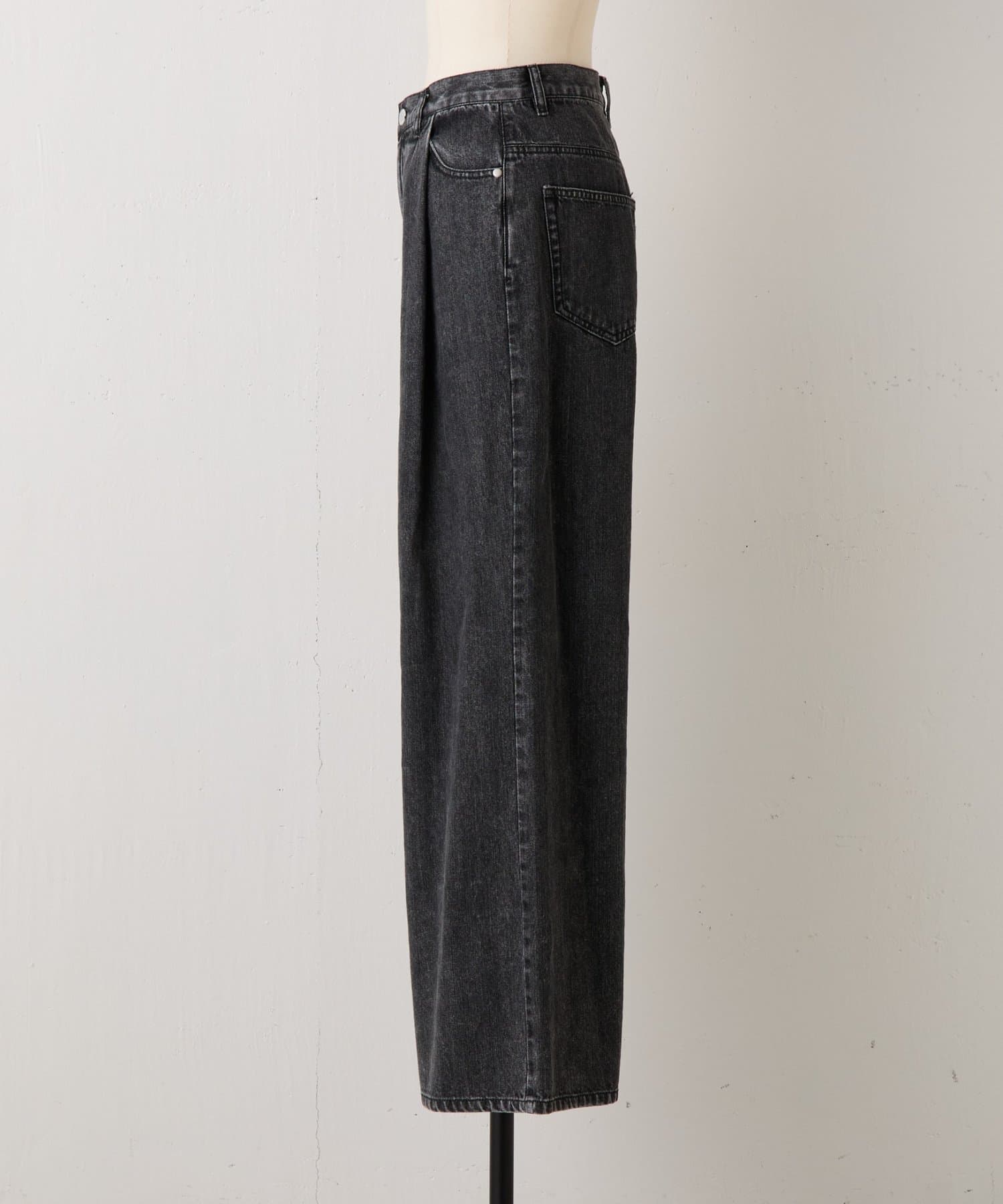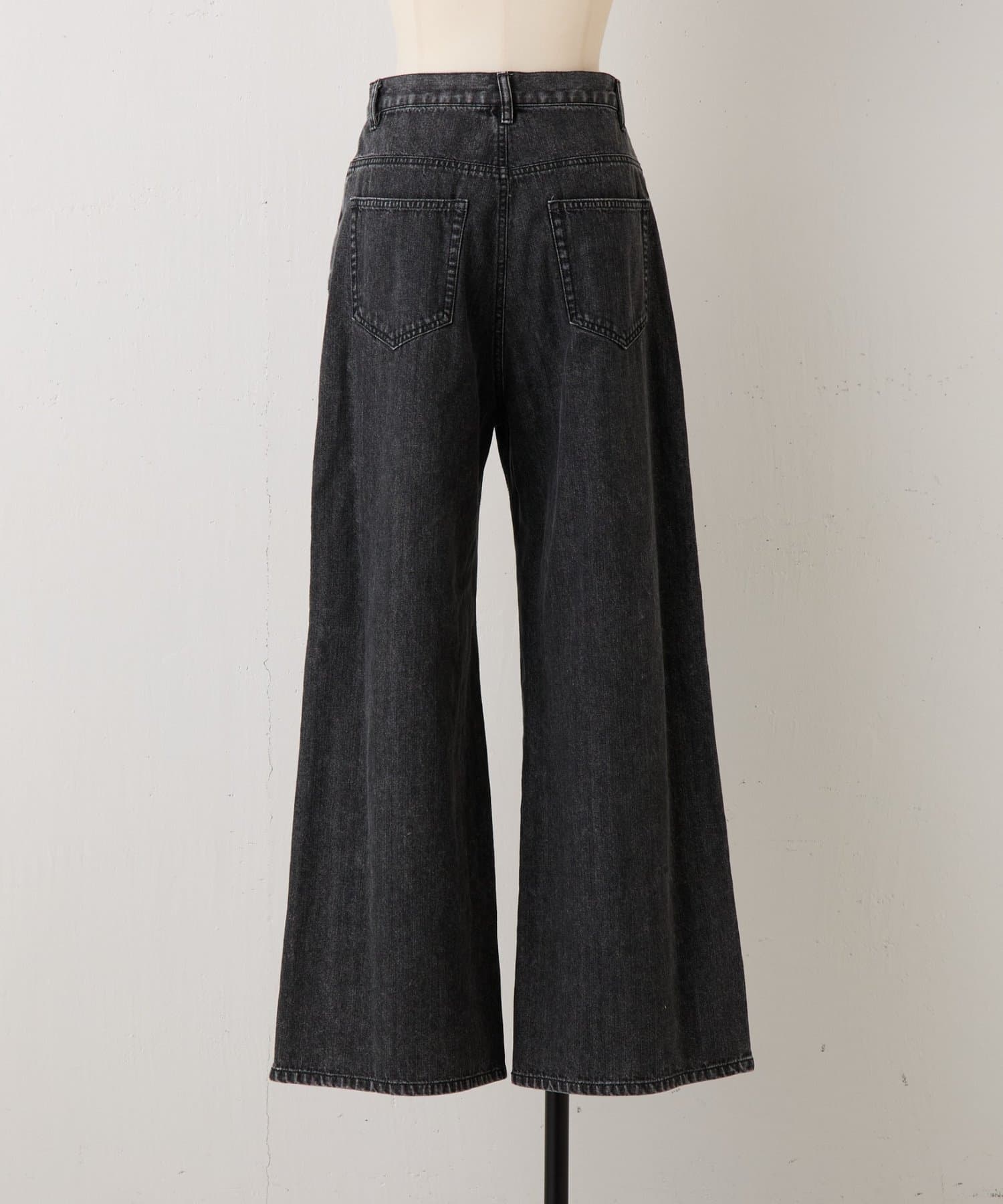 セミフレアで綺麗なラインが魅力のブラックデニム。