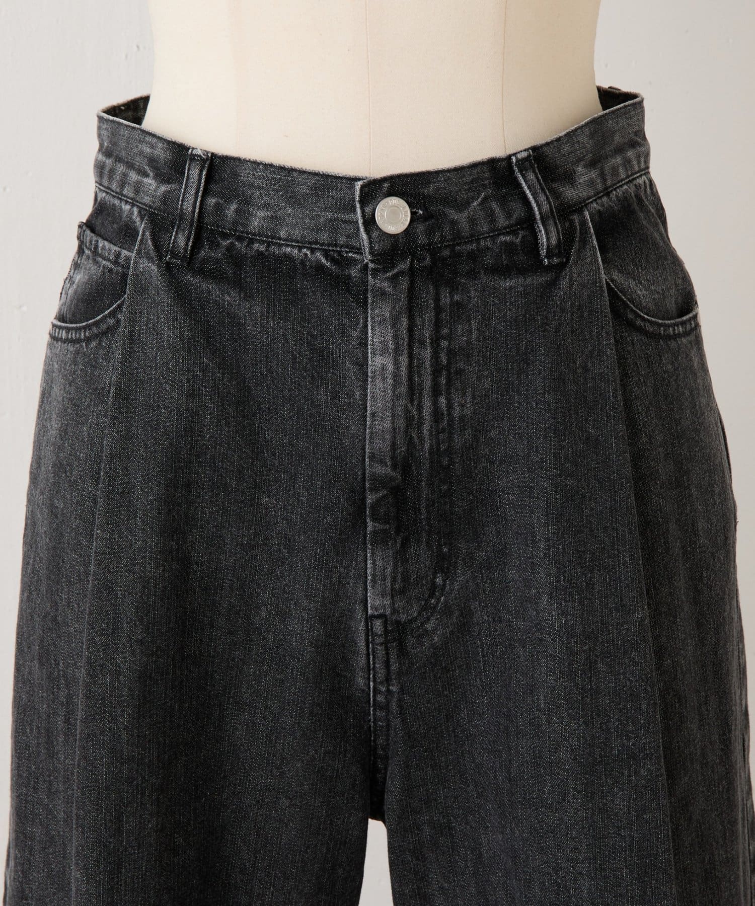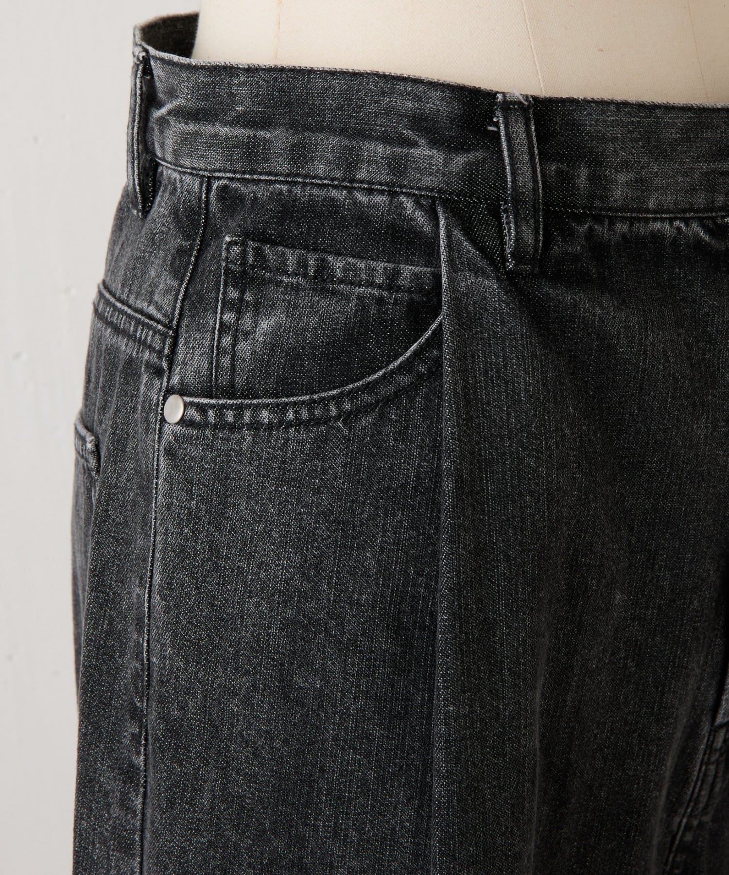 ハードな印象のブラックデニムですが、グレーがかったカラーなので色々なコーデに馴染みます。