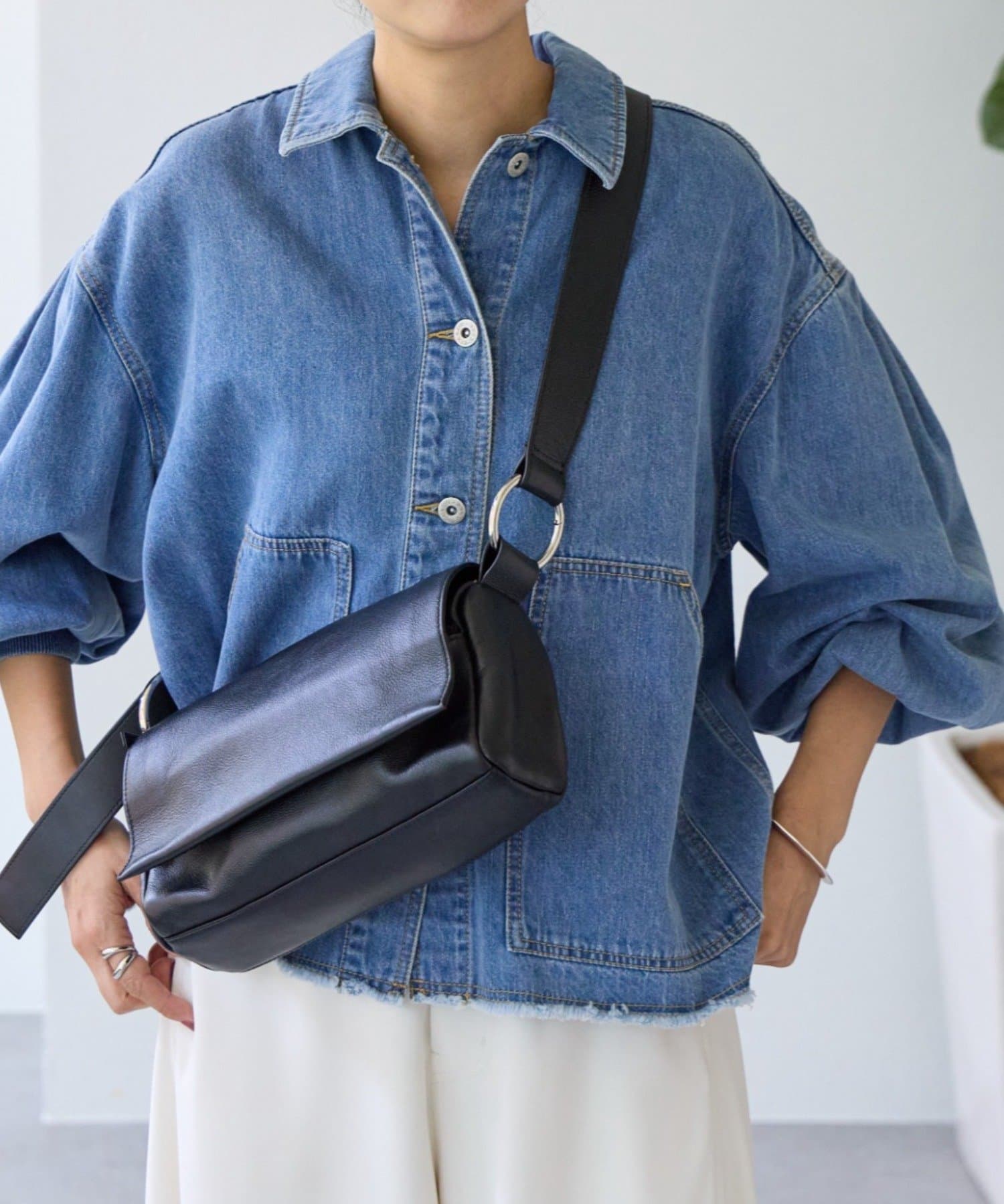 リングがショルダーについているので、リングにカードケースやスカーフなど自由に取り付けが可能。