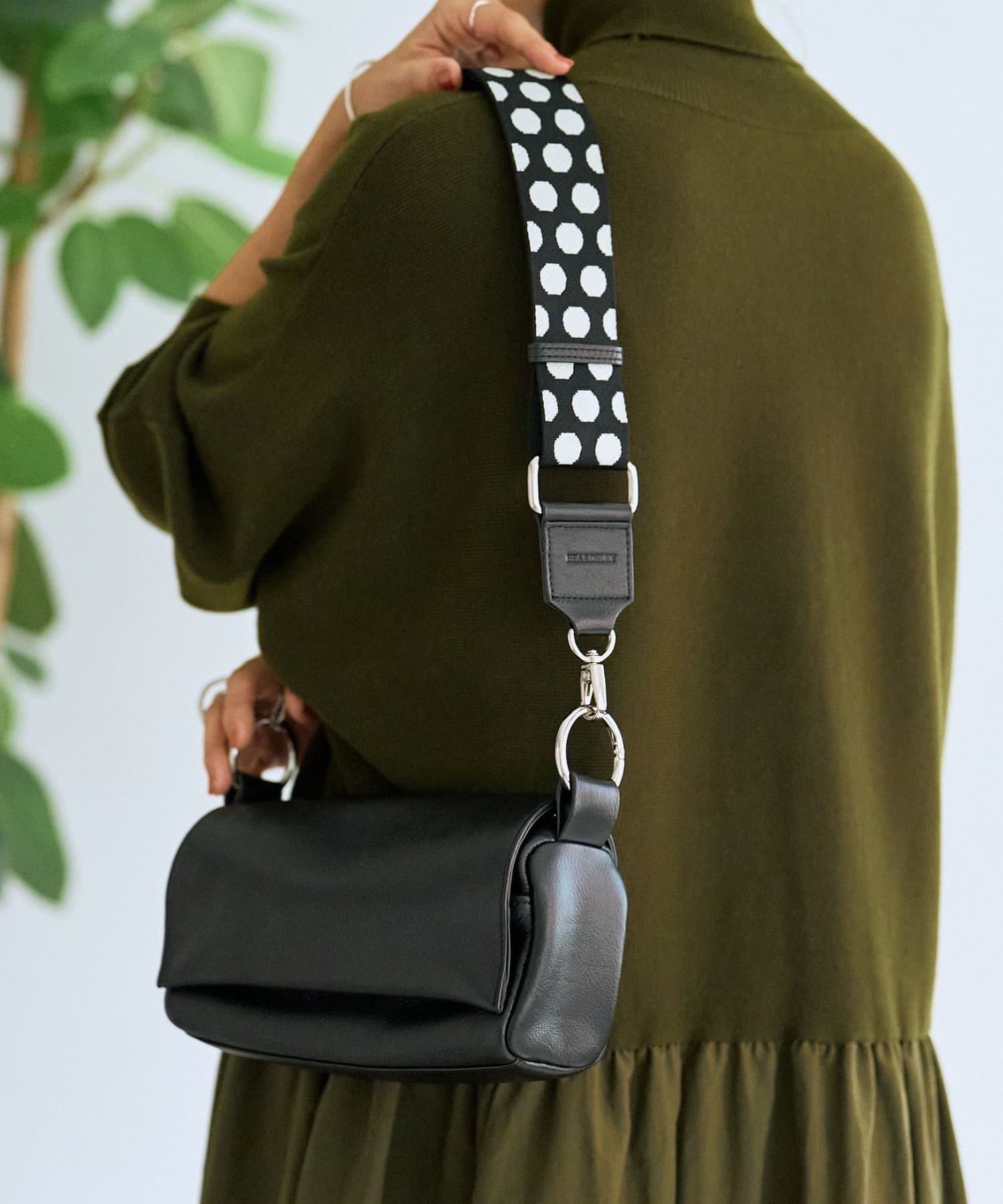 購入場所:店舗ボディバックは散々悩んでブラックを購入。そのため、洋服のコーディネートによっては、暗くなりがちと思い、ドットのショルダーベルトも購入。抜け感も出るし、大正解でした!