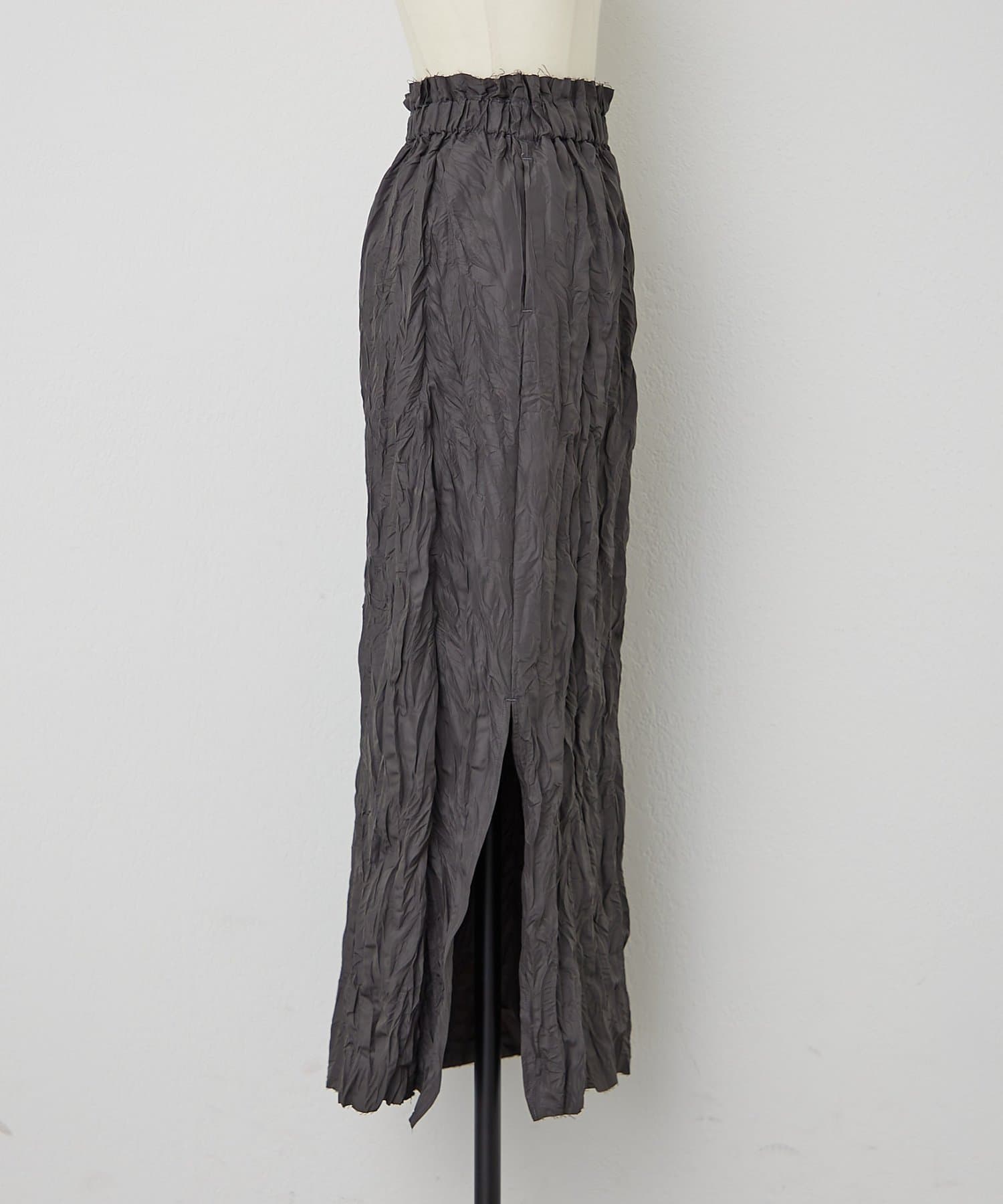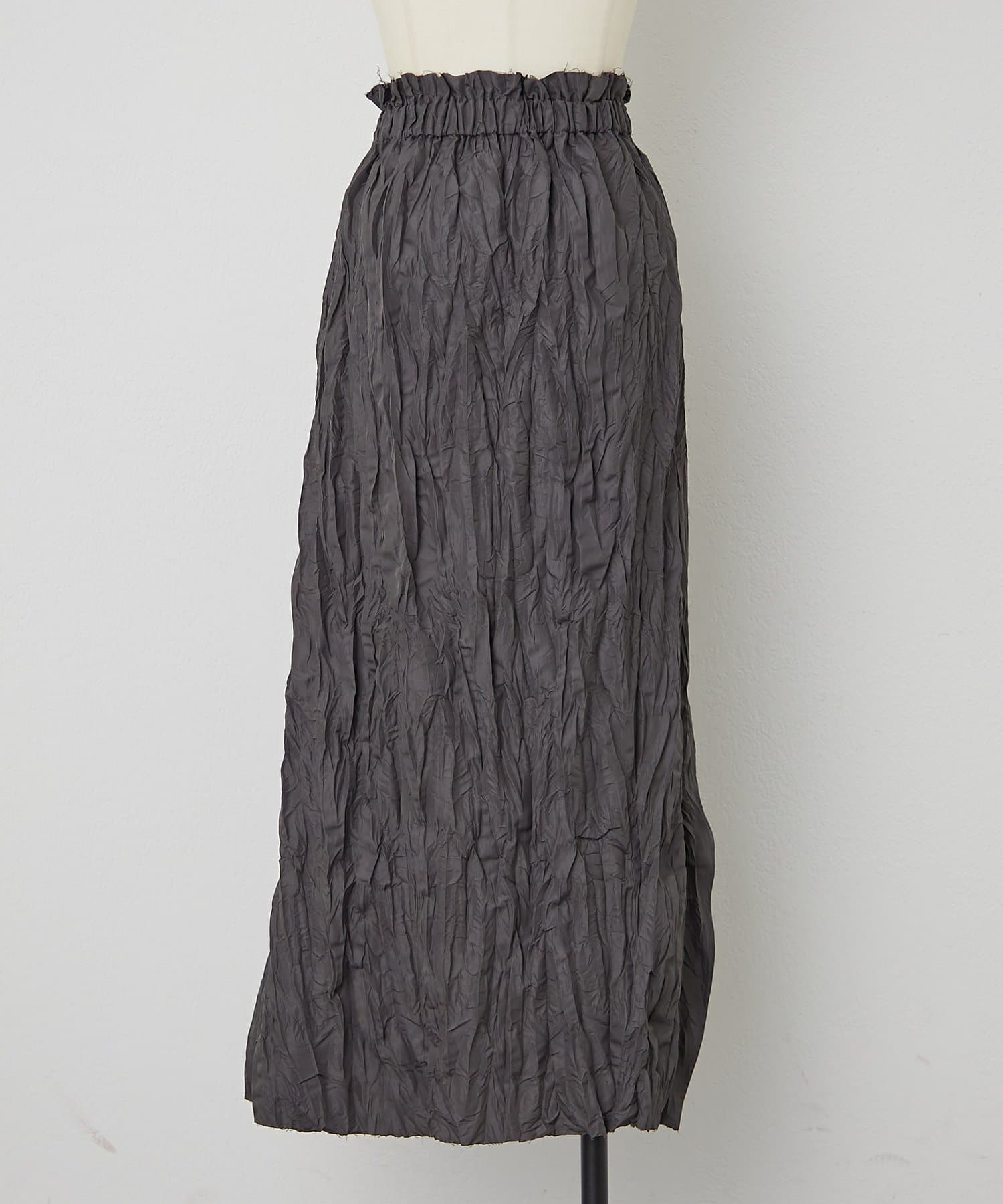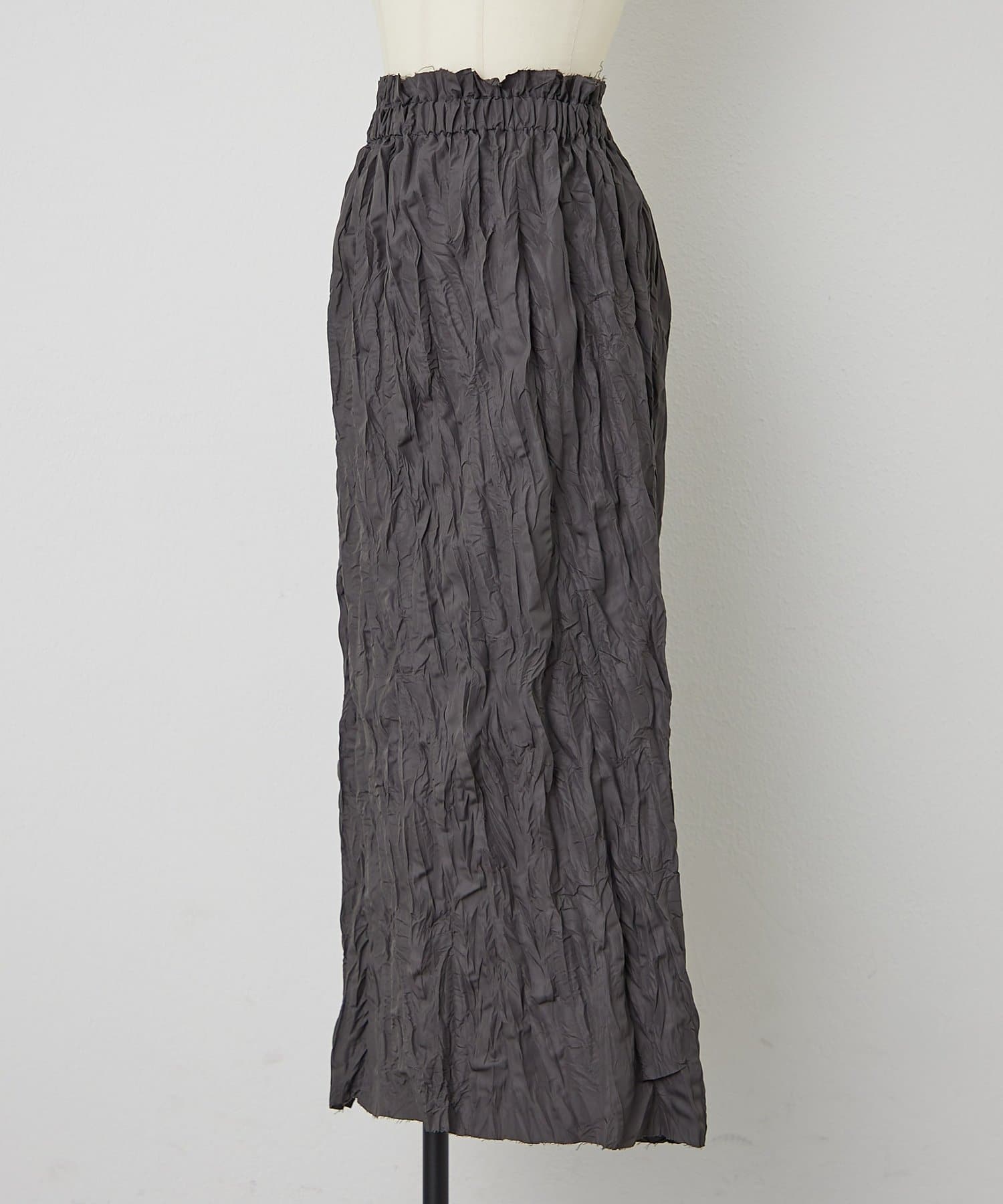 上品な艶とシワ感が魅力の、ワッシャー加工を施したロングスカート。