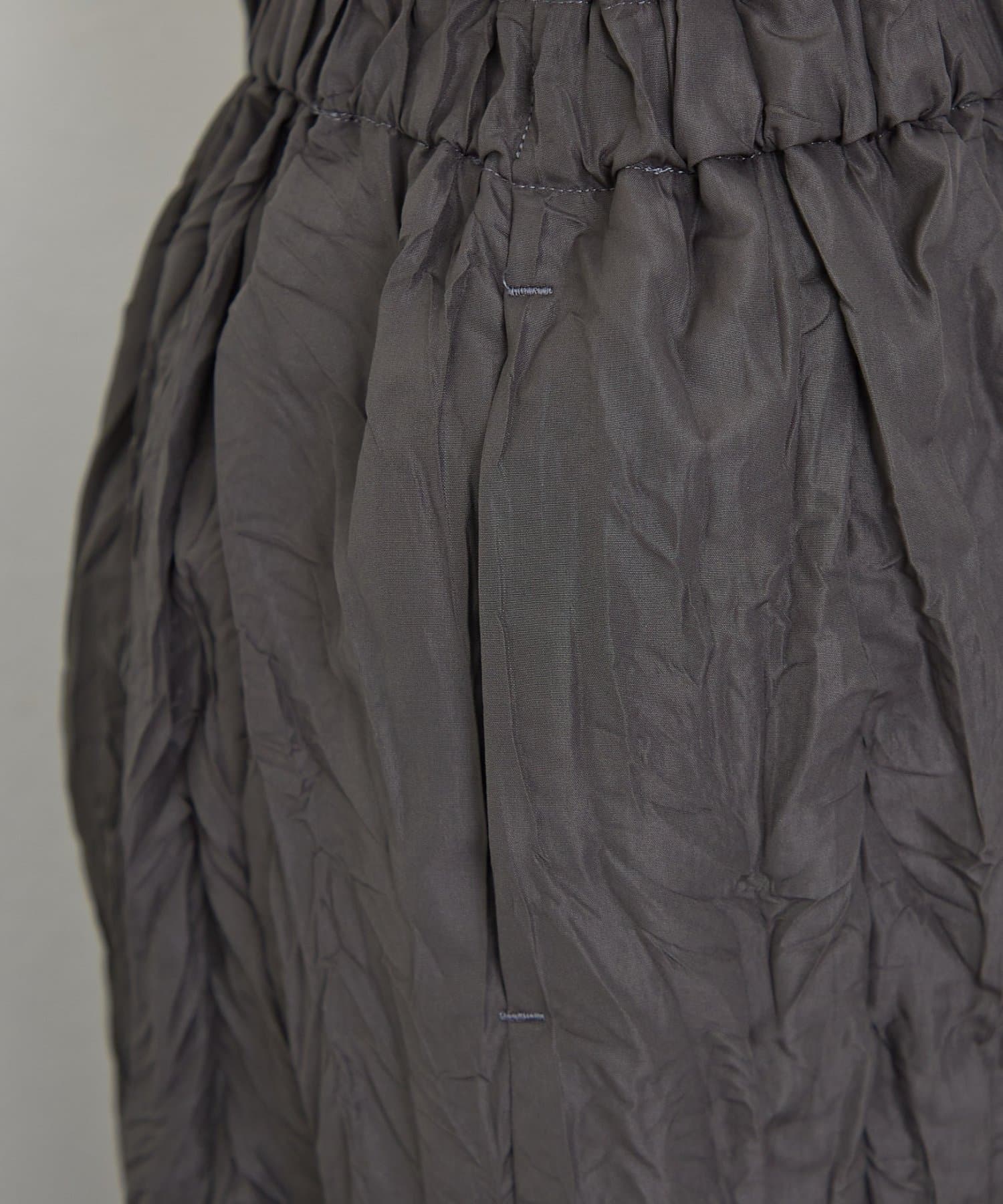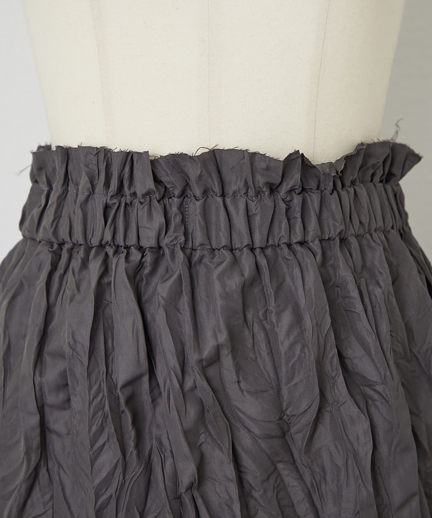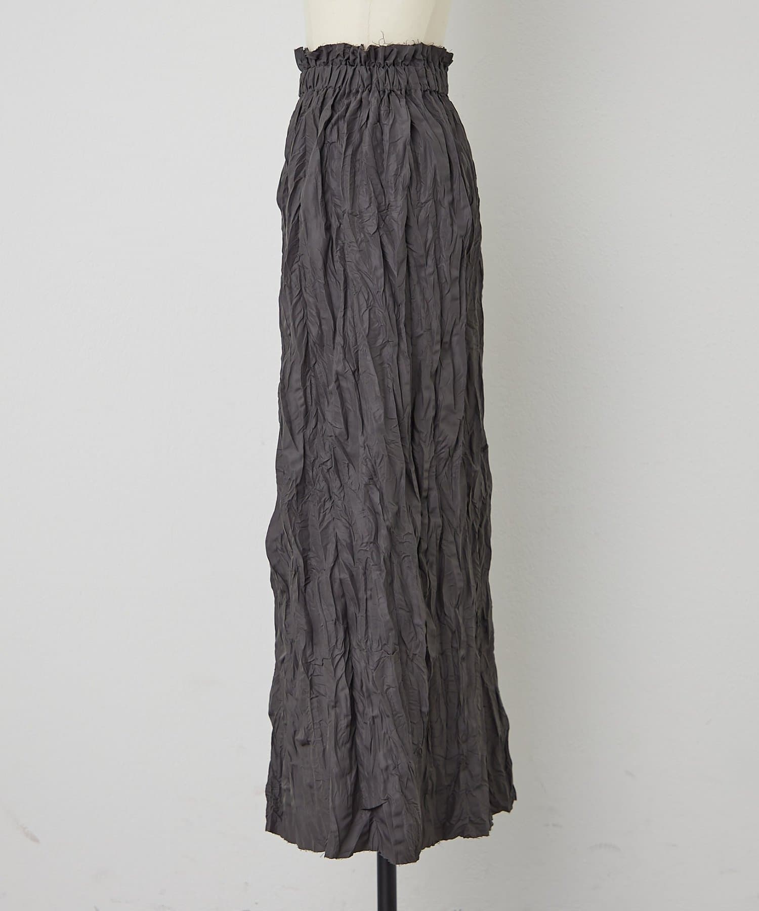 上品な艶とシワ感が魅力の、ワッシャー加工を施したロングスカート。