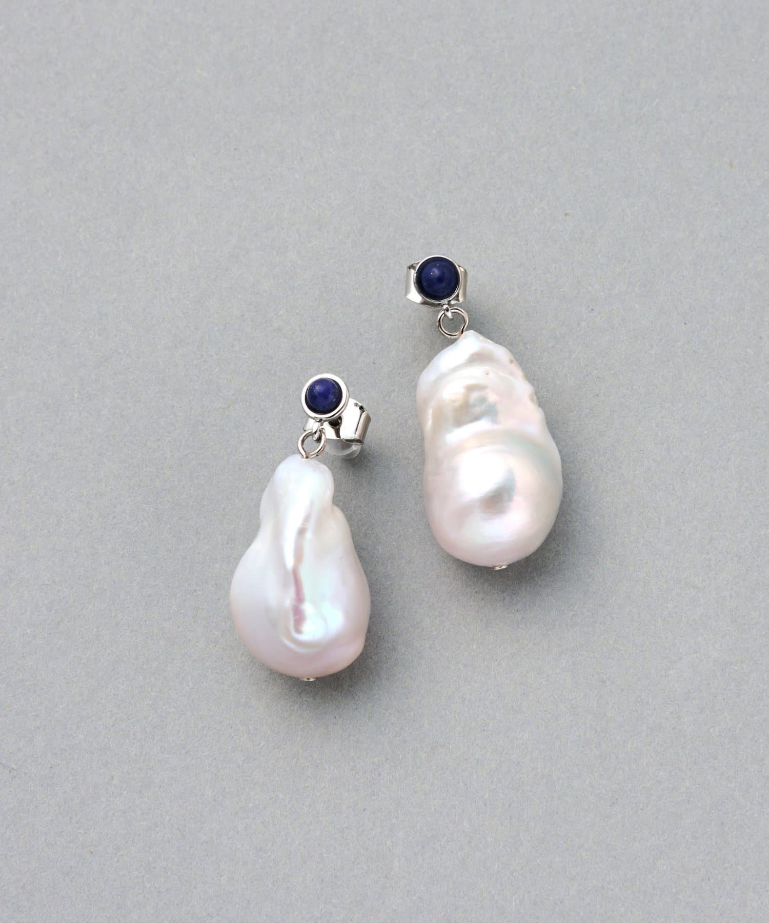 存在感のある深いブルーと、個性豊かなパールが耳元を彩ります。