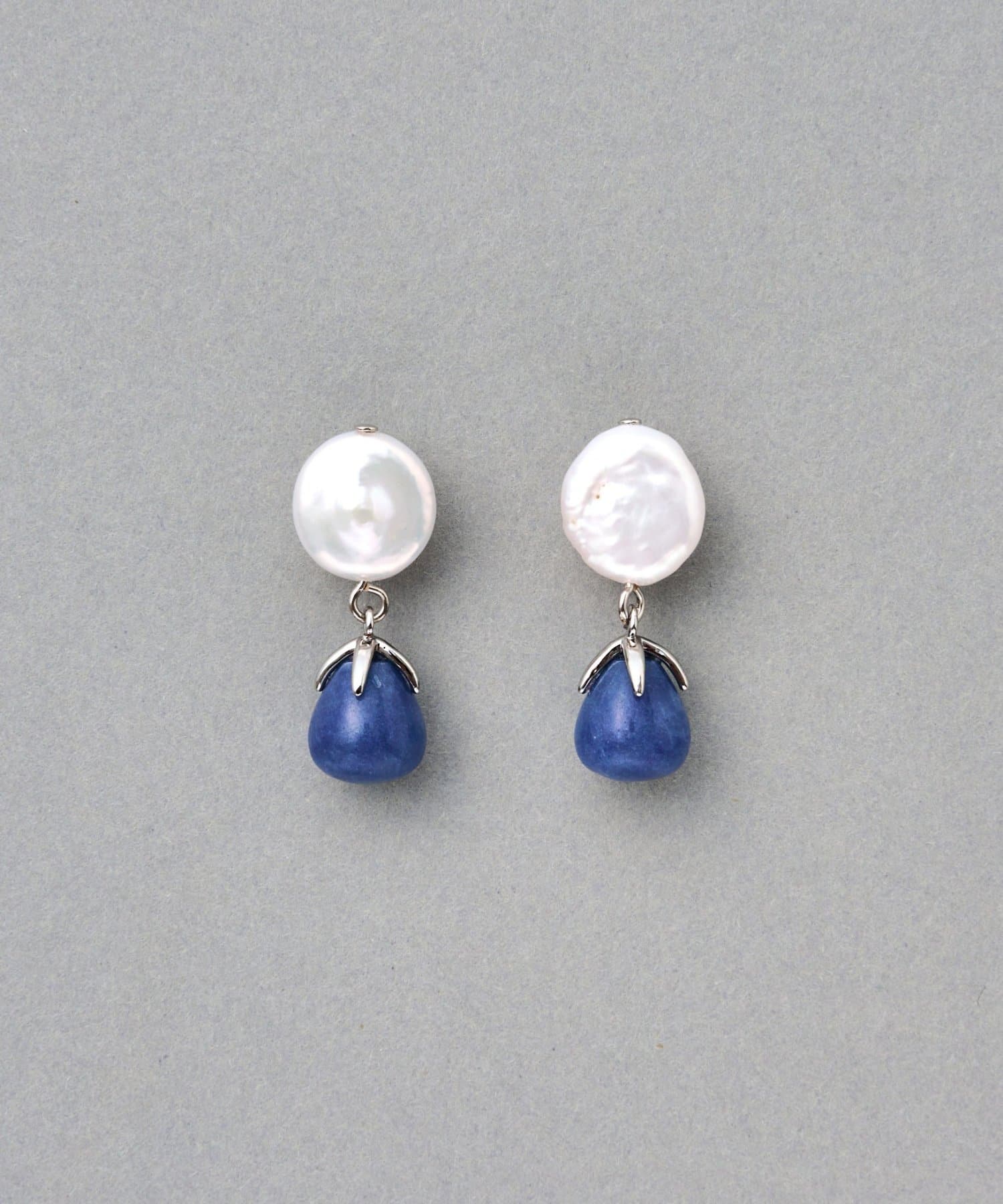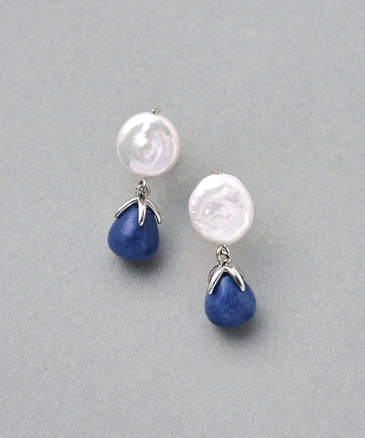 淡水パールの自然な光沢と、天然石のやわらかな色合いが調和した上品なドロップピアス。