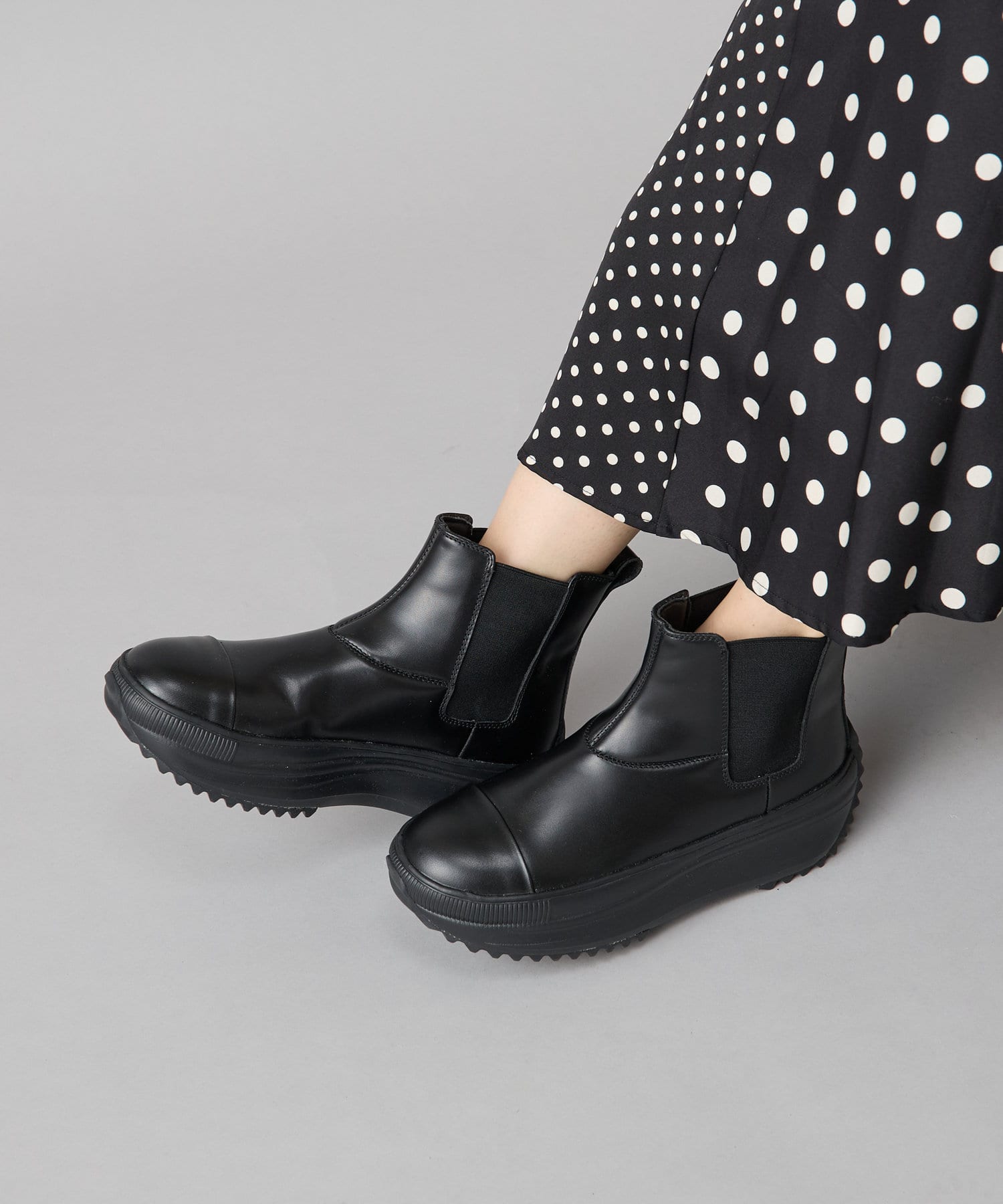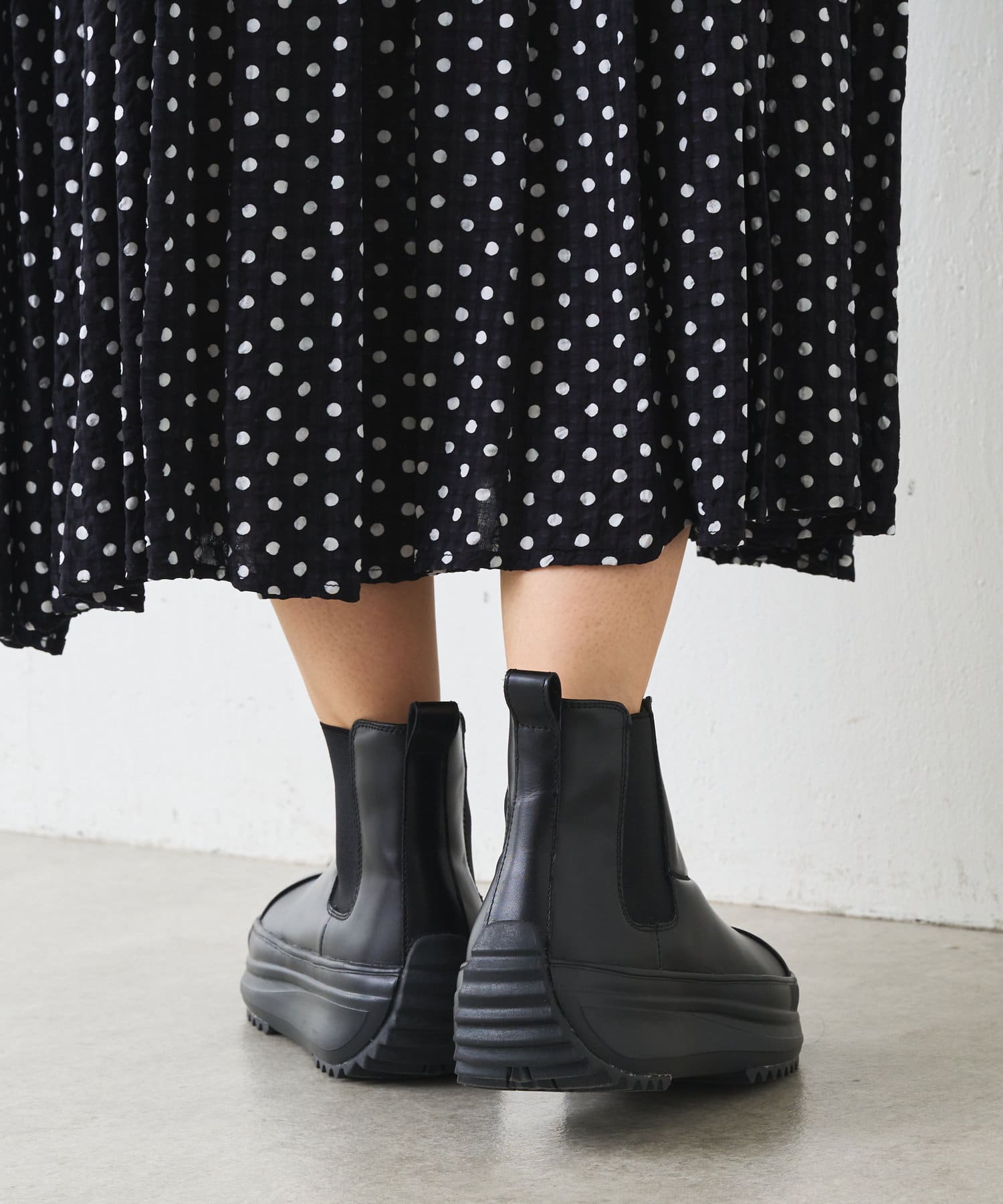 トレッキングシューズをモチーフとしたアウトソールをショートブーツに落とし込んだ非常に歩きやすい逸品。