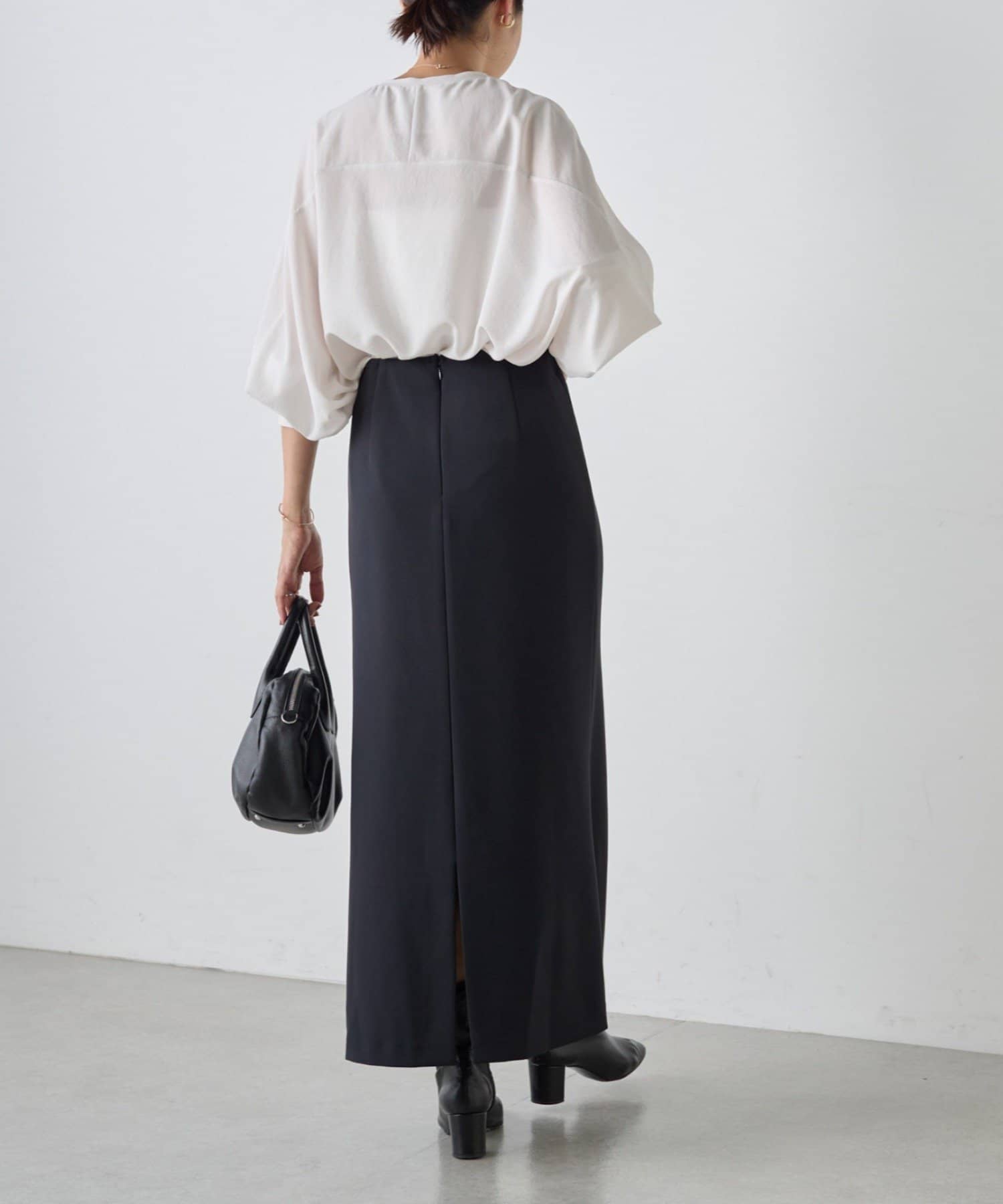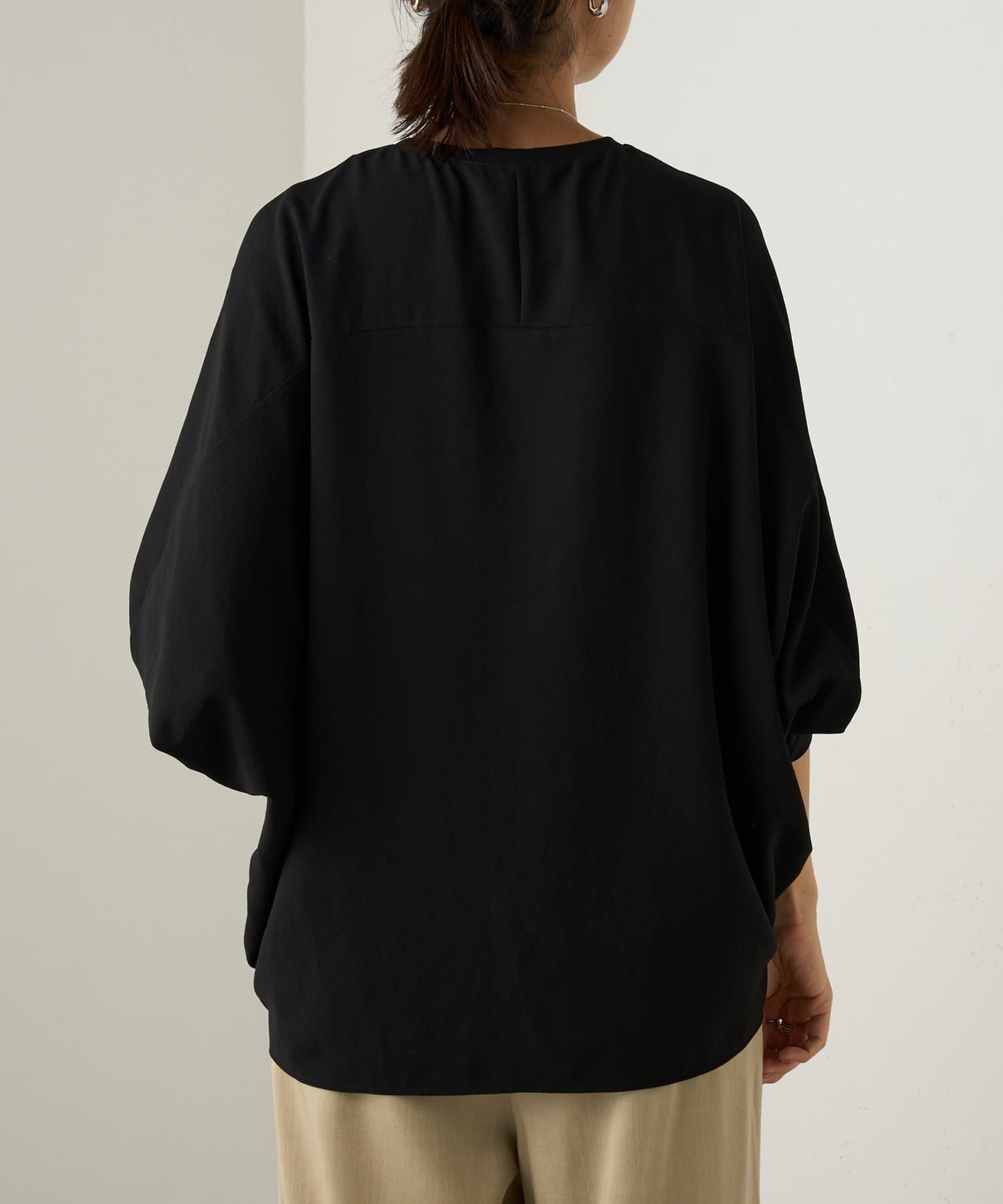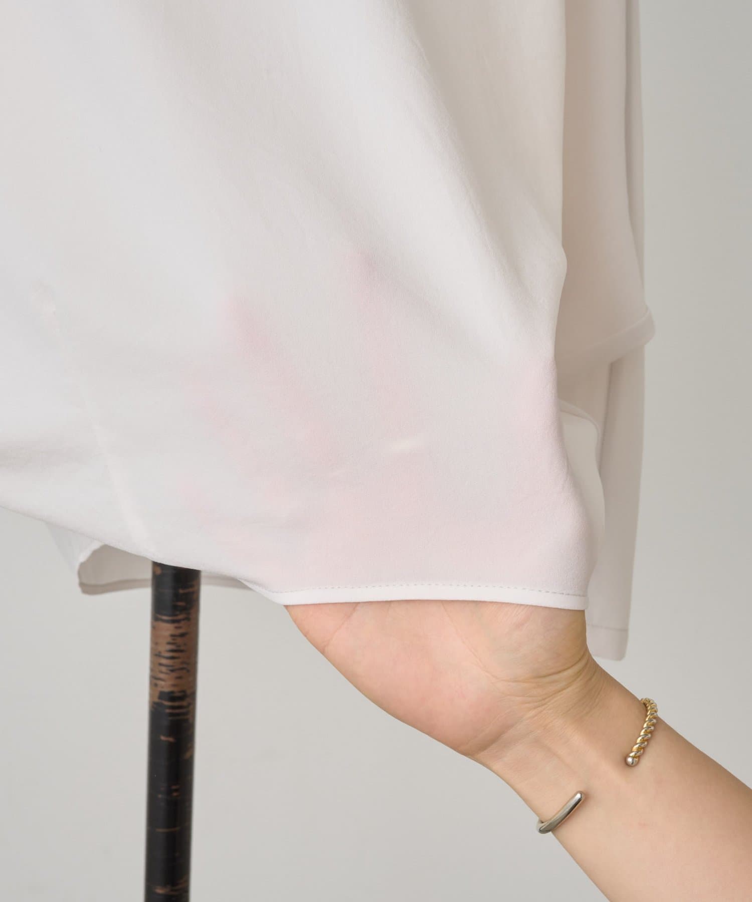 ストレッチの効いたジョーゼット素材で仕立てたブラウス。