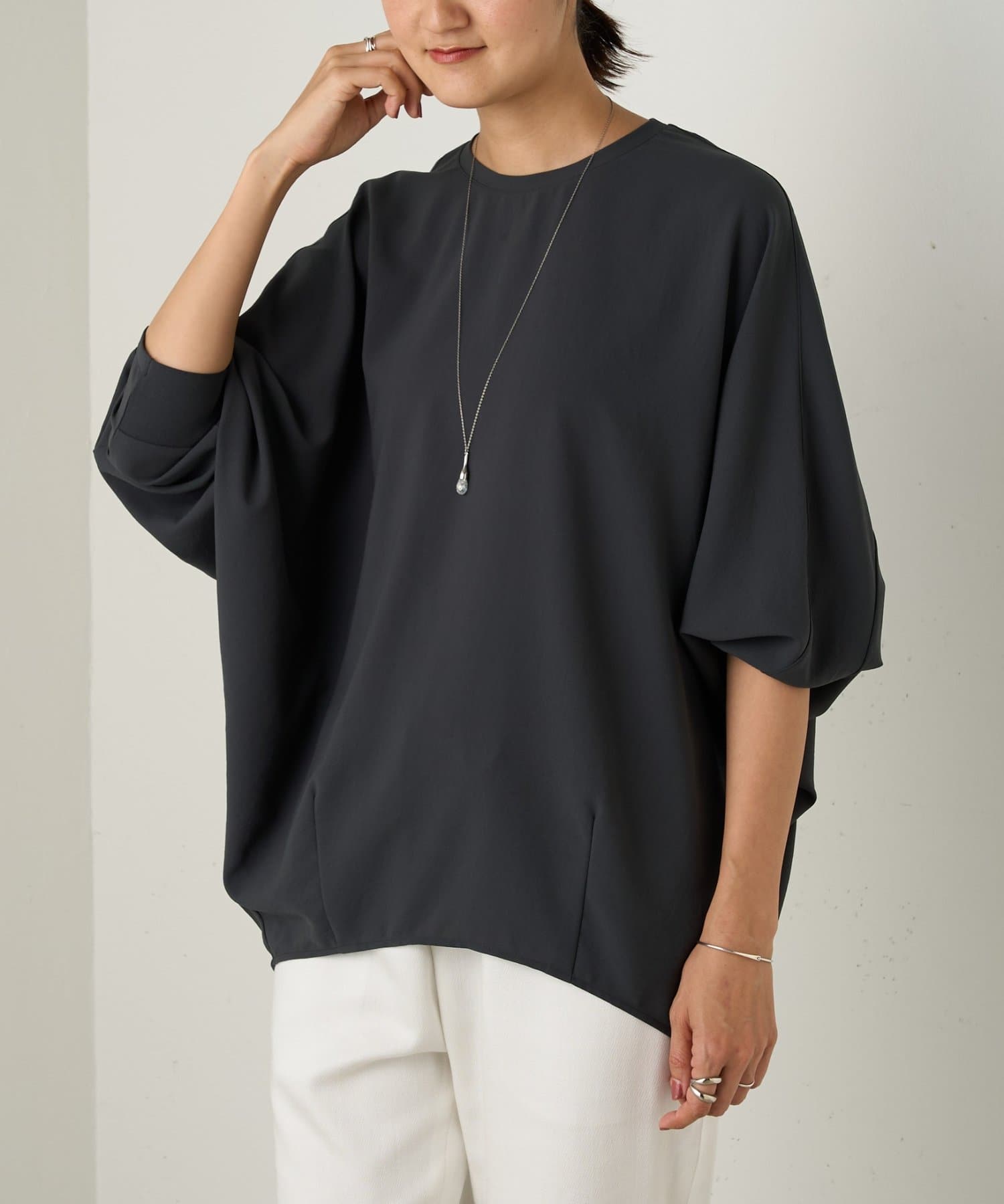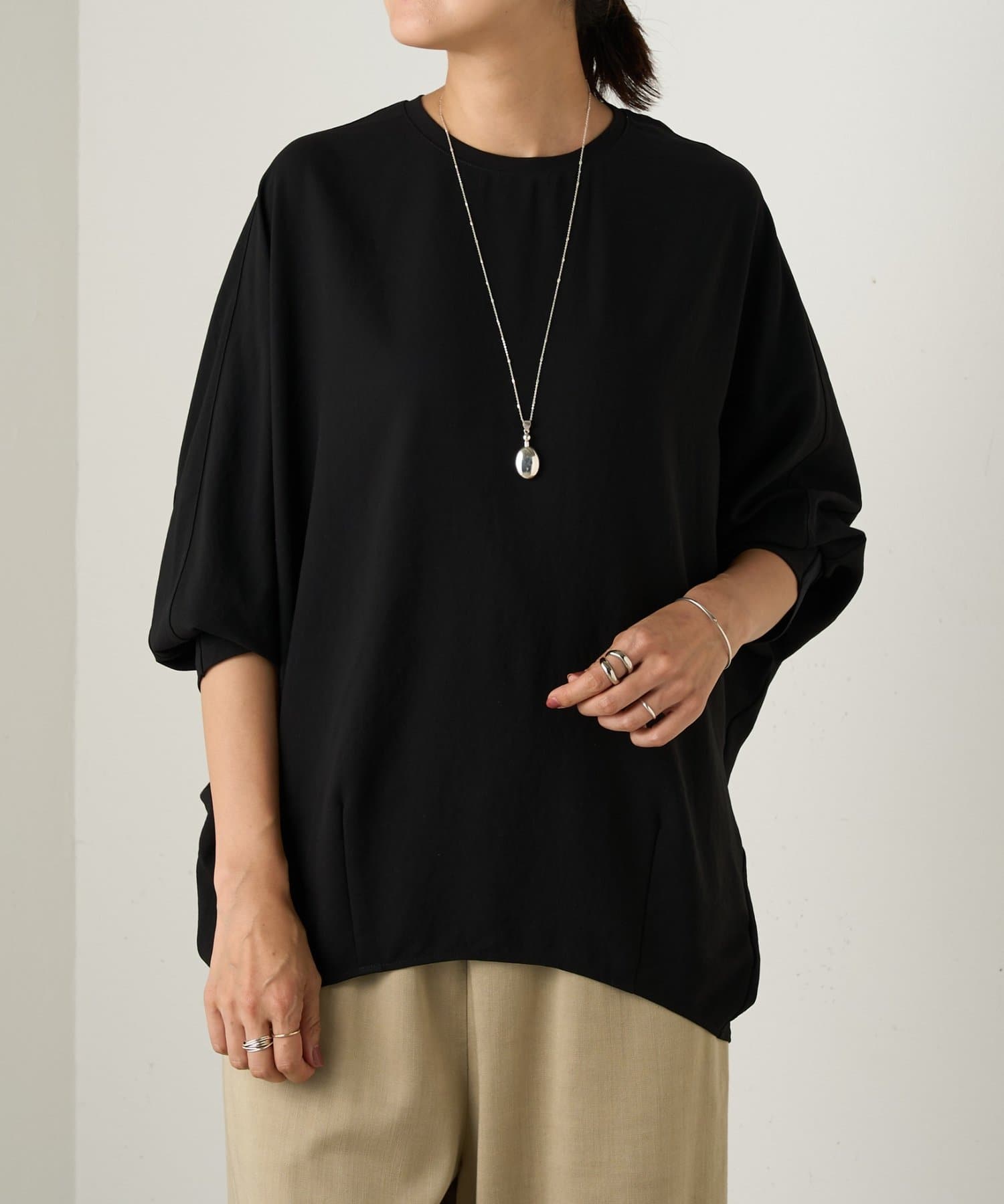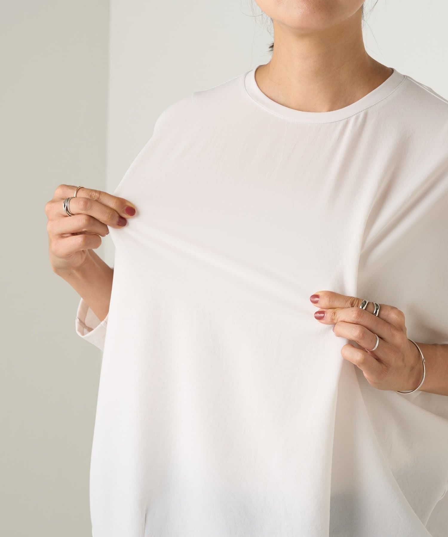 からだのラインを拾わないゆったりとしたシルエットと、滑らかな肌触りで快適な着心地に。