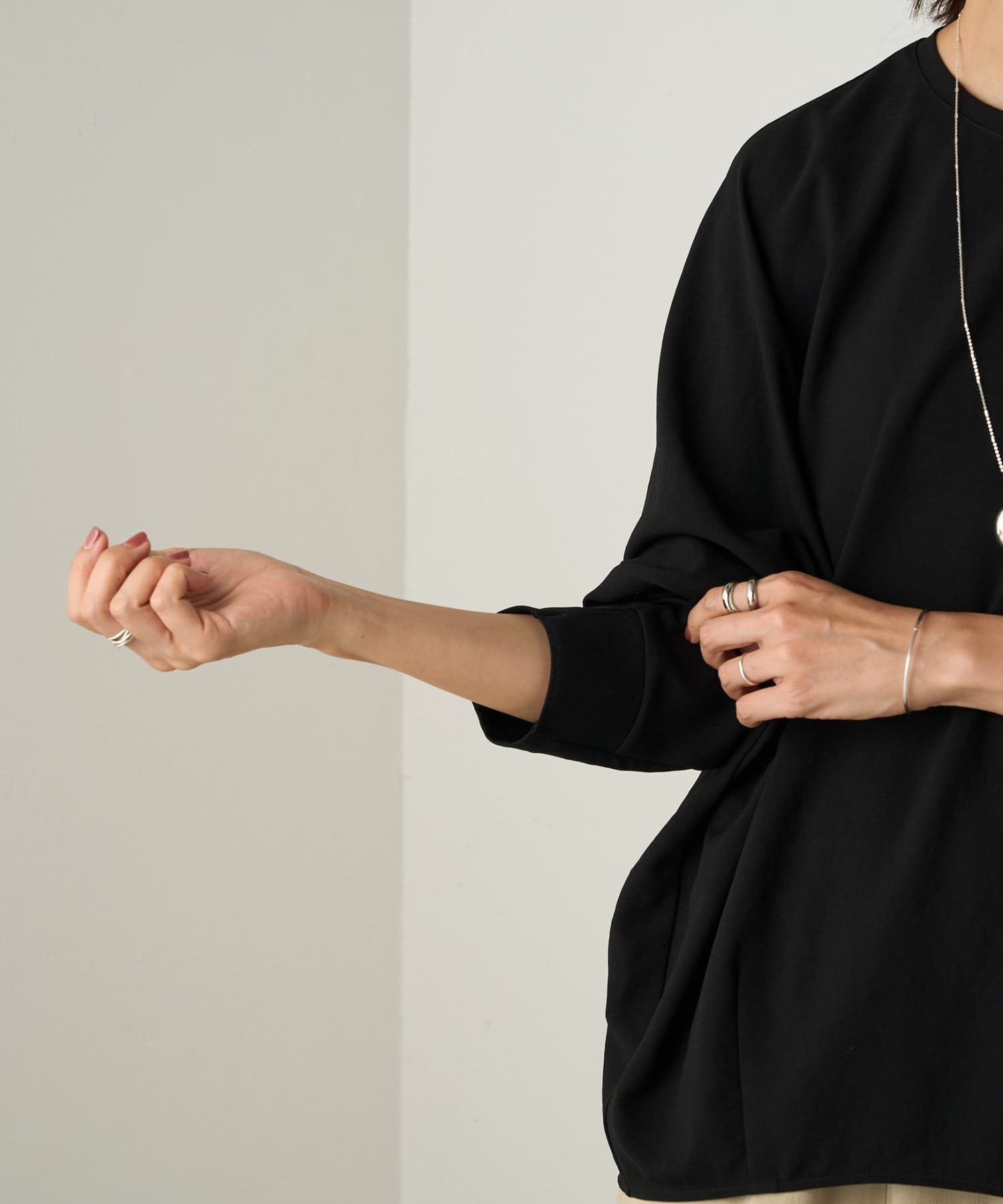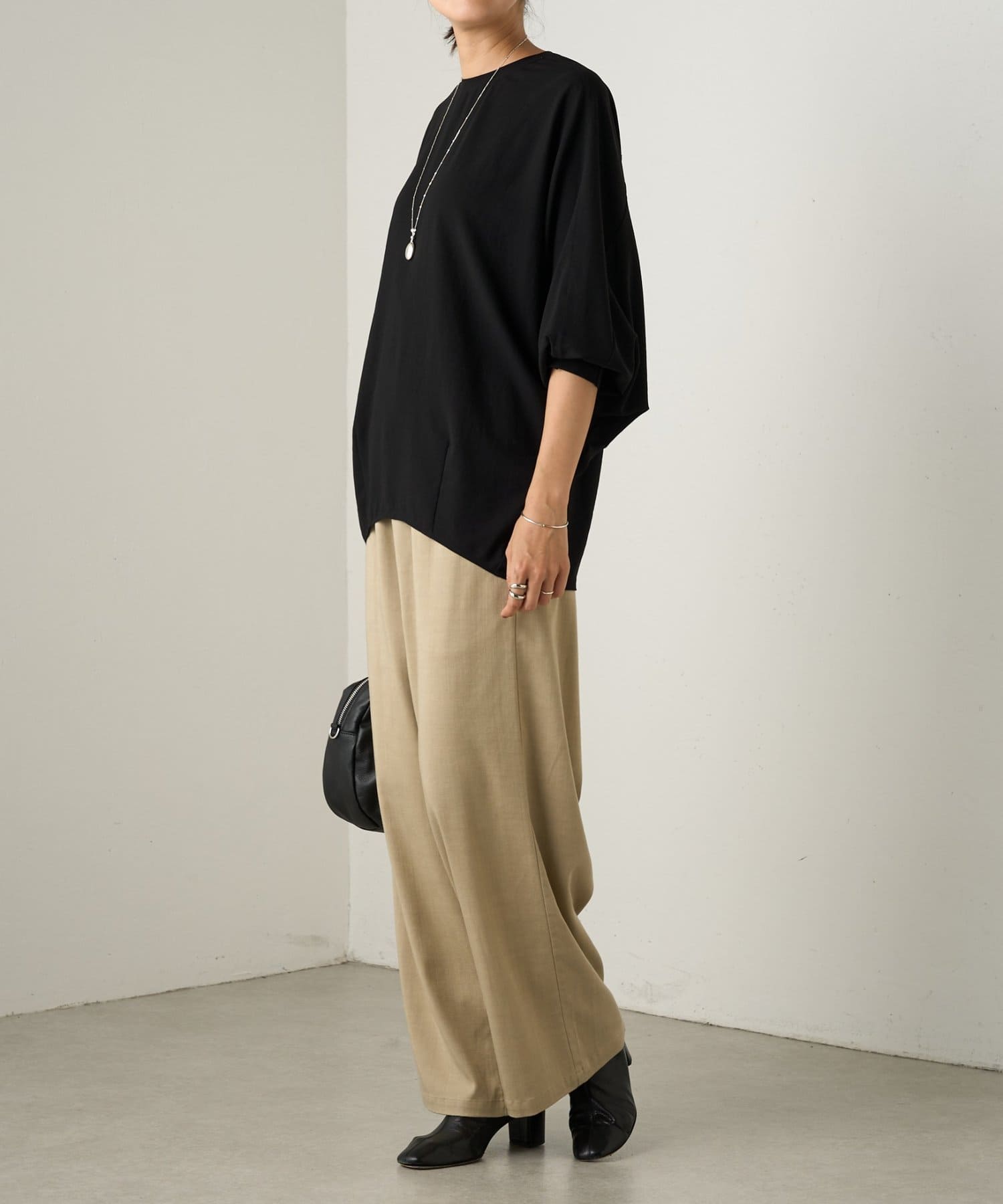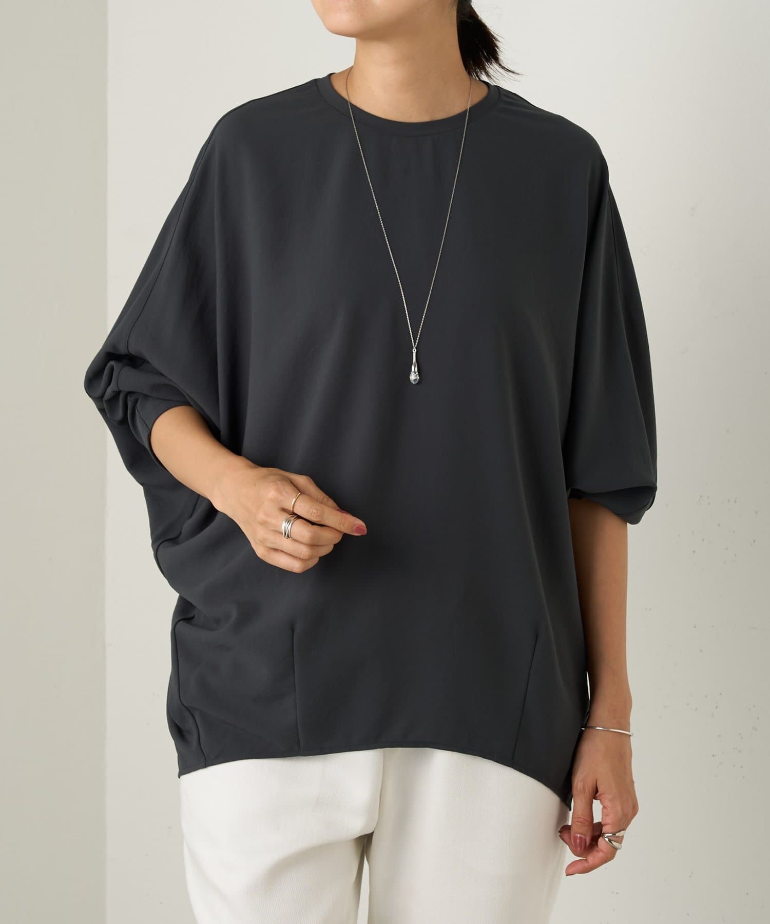 からだのラインを拾わないゆったりとしたシルエットと、滑らかな肌触りで快適な着心地に。