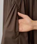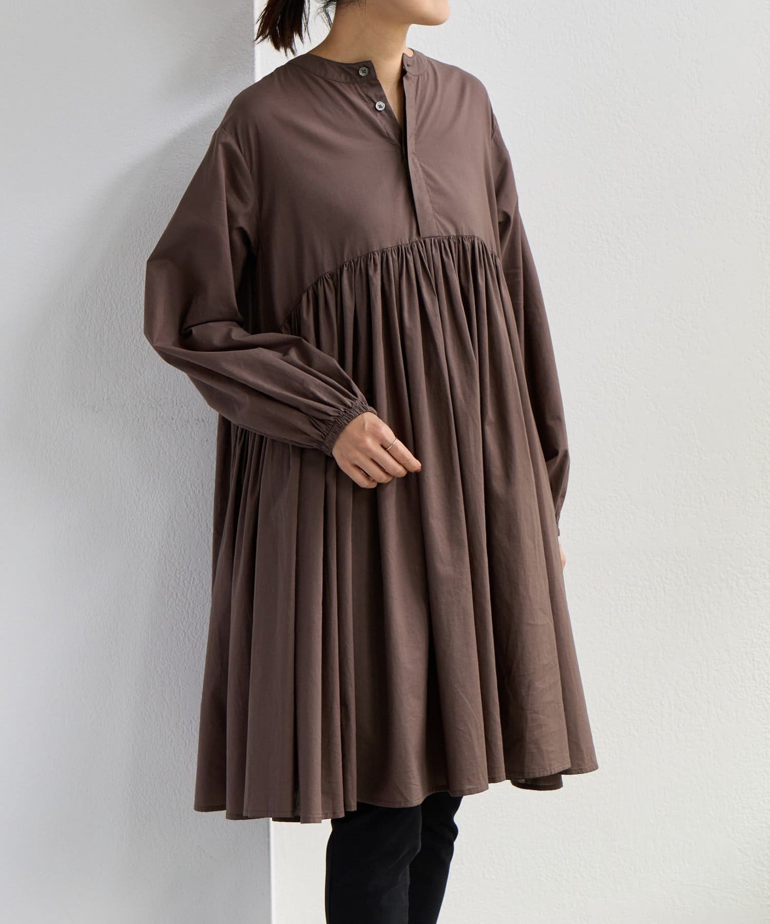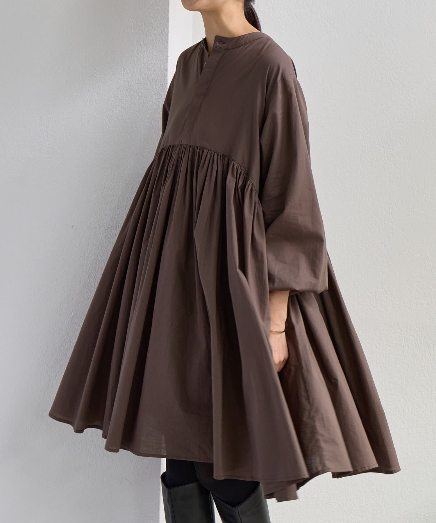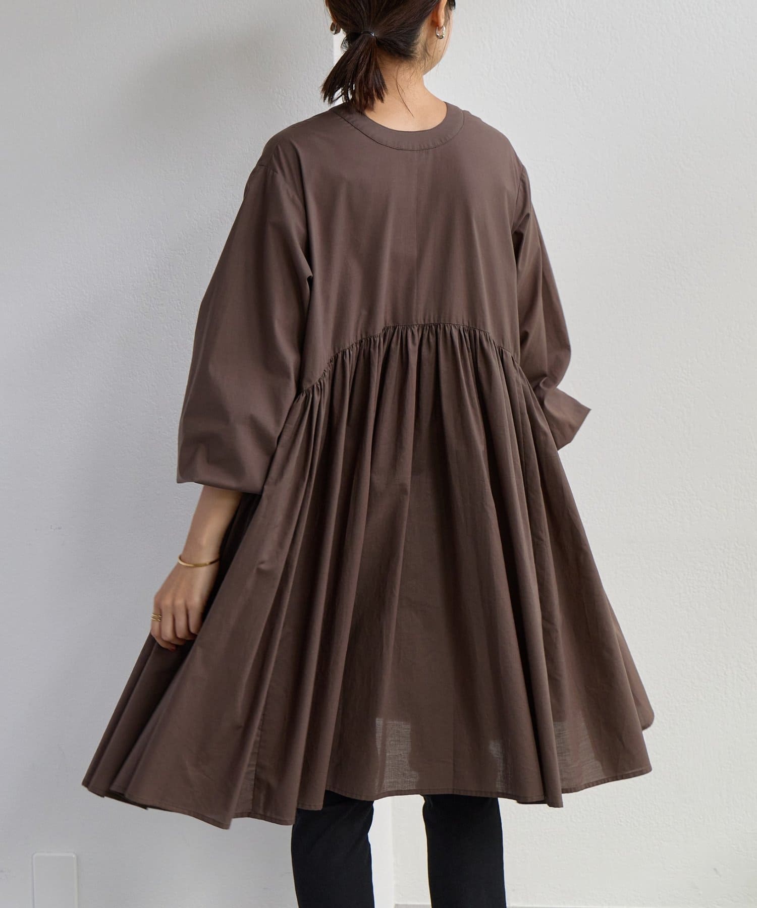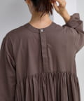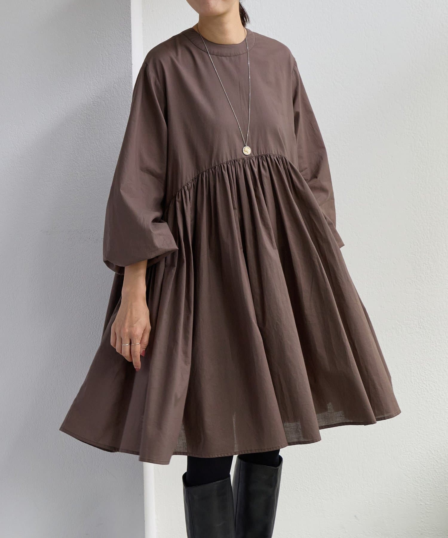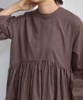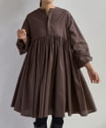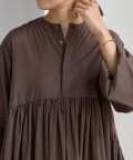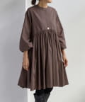 胸元をラウンドカットし、ギャザーをたっぷり寄せて、女性らしいデザインに。