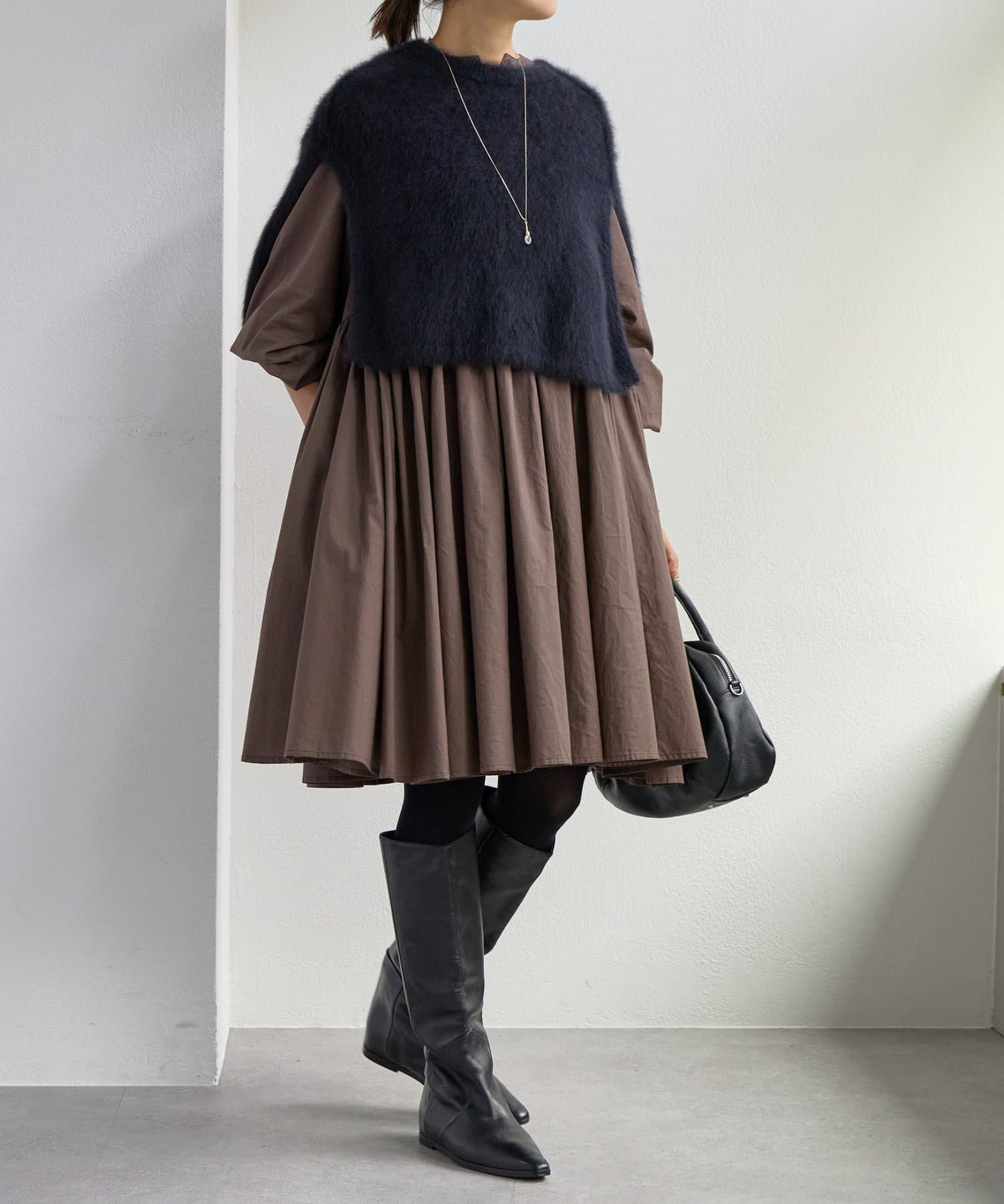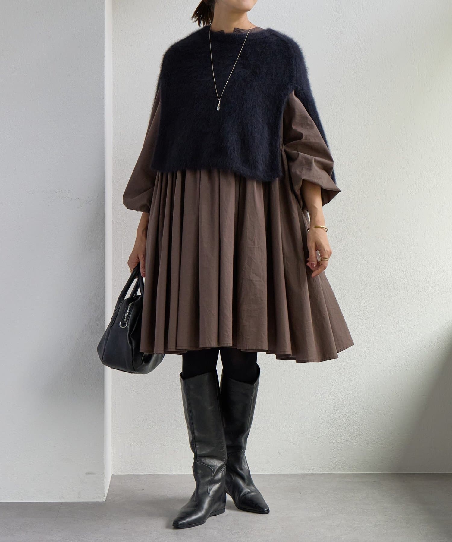 チュニック丈なので、細身のパギンスを合わせたり、タイツとロングブーツを合わせてワンピース感覚でも着て頂けるアイテム。