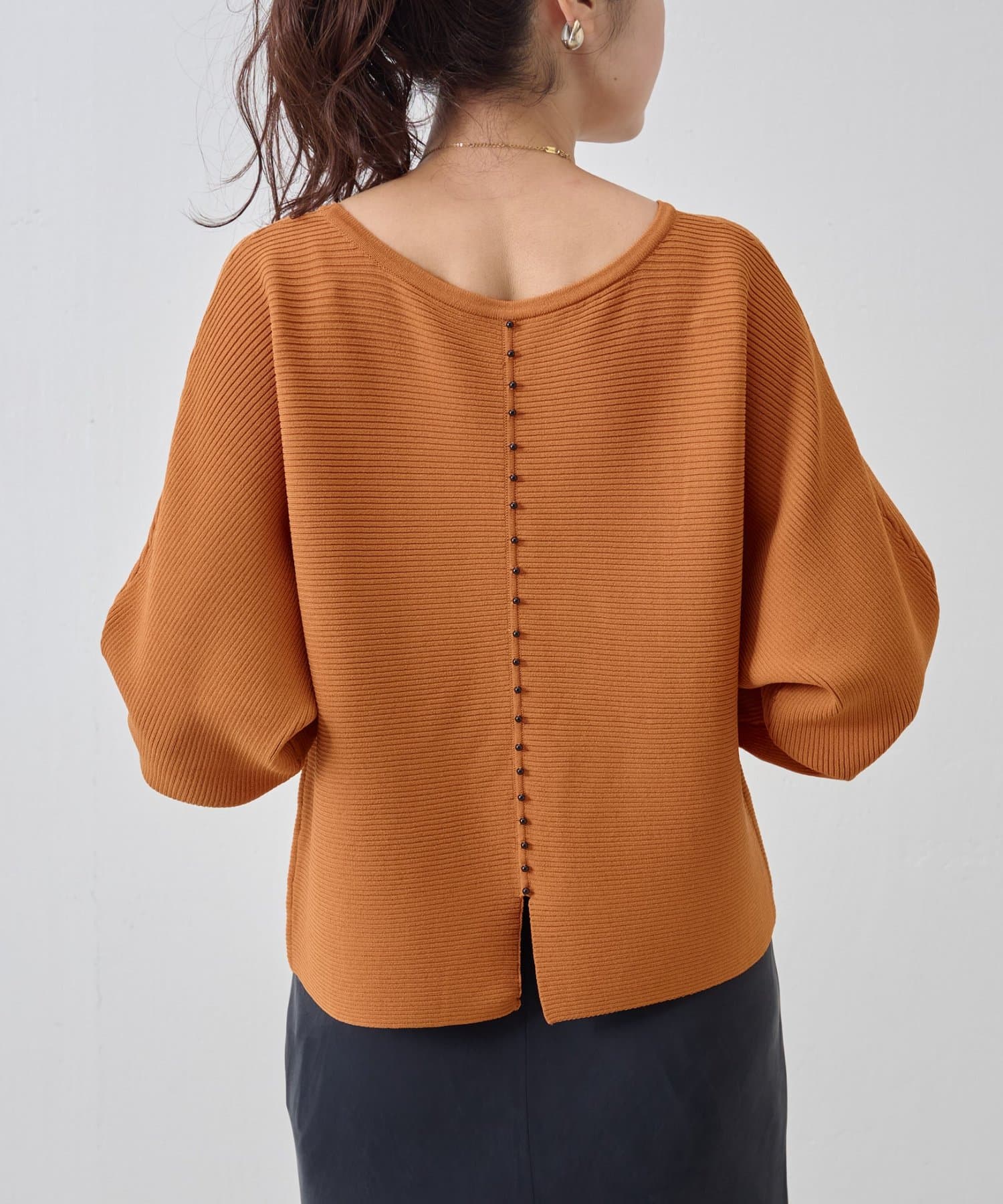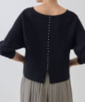 さりげない背中の飾りボタンがシンプルな中にスパイスをプラス。
