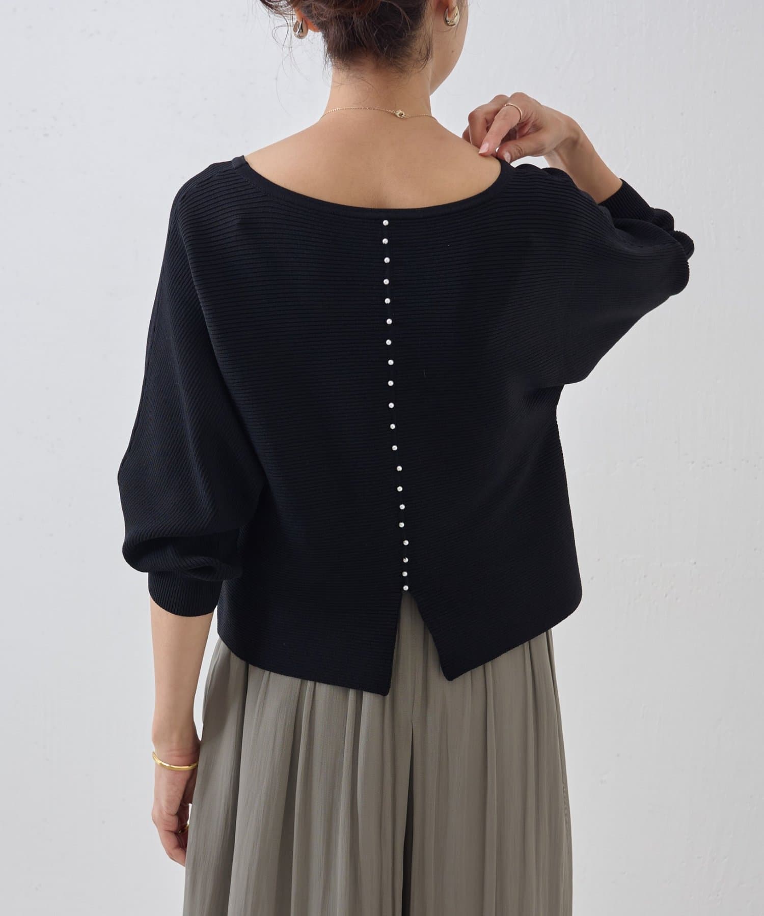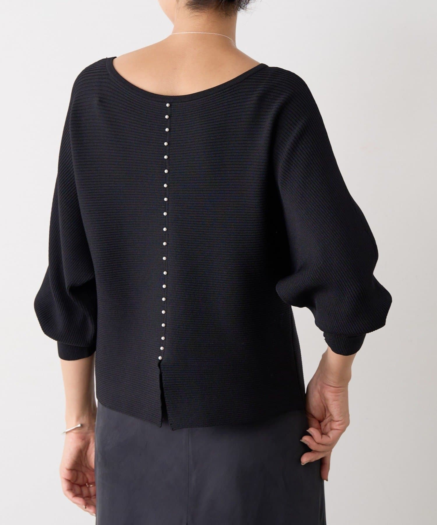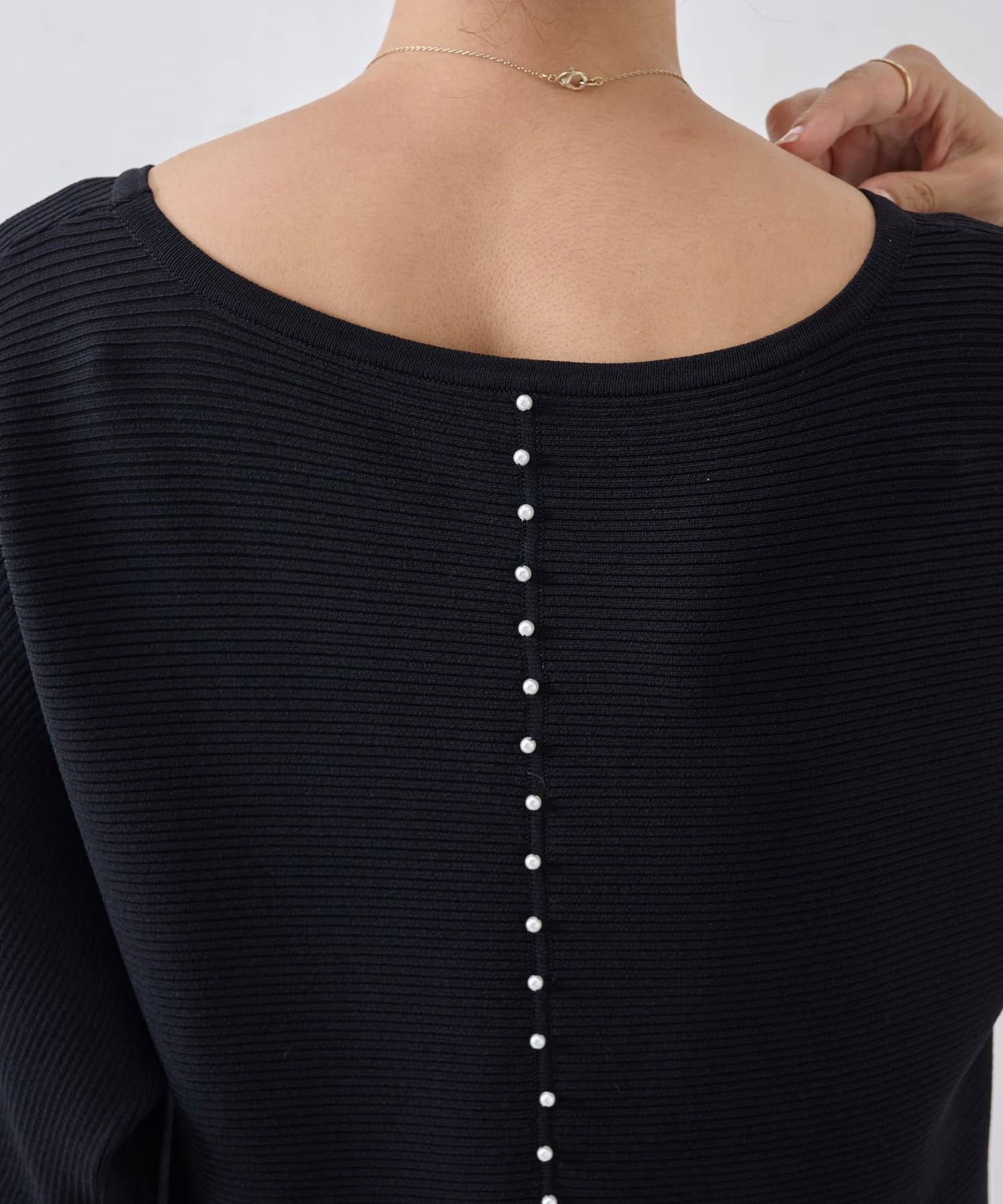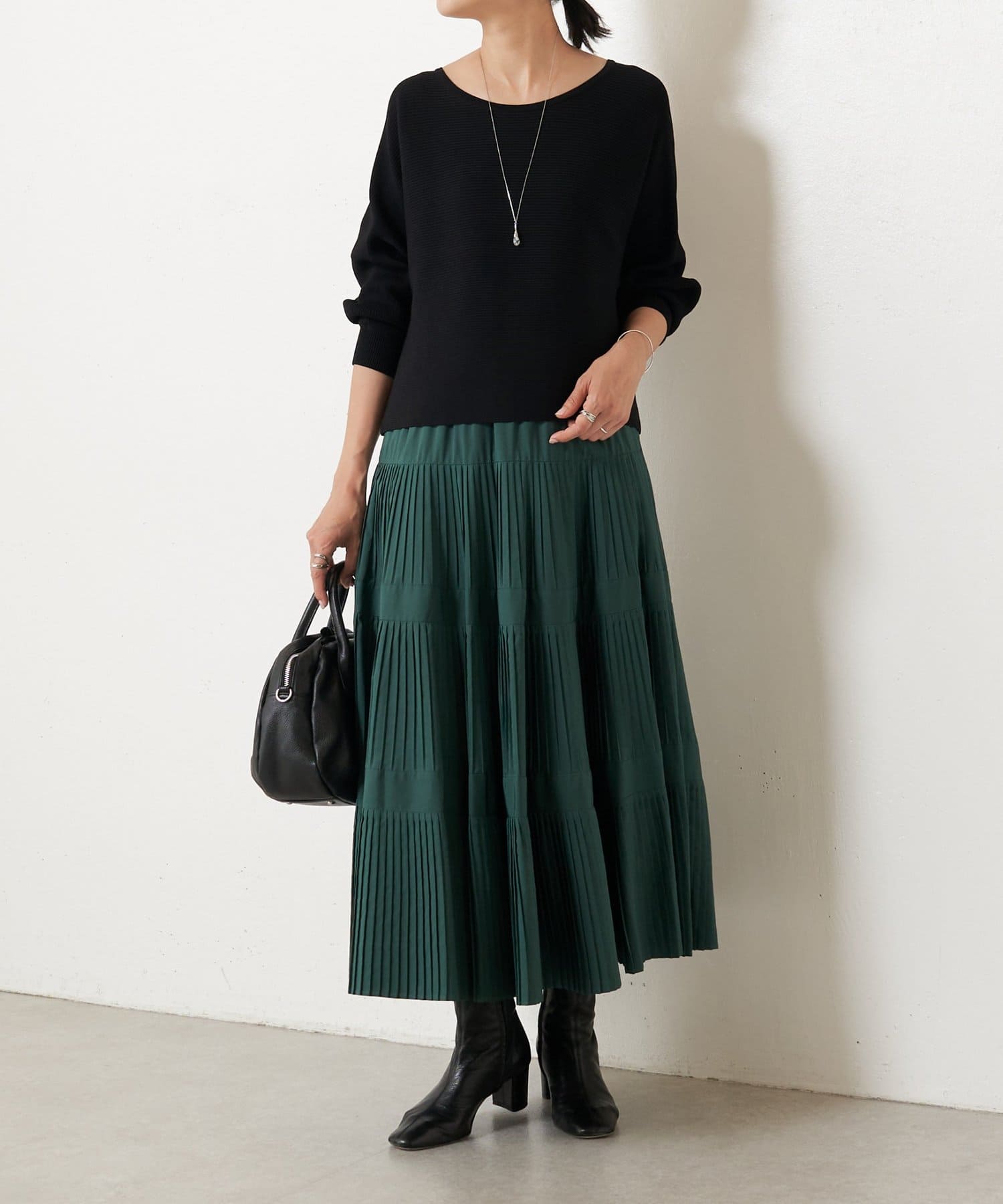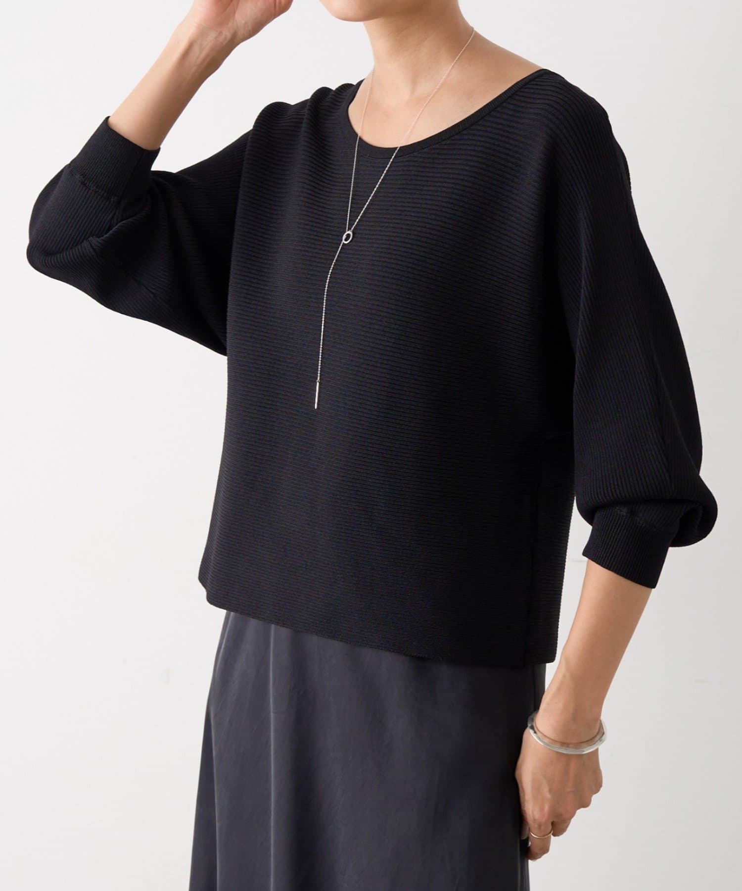 ニュアンスのあるボートネックは程よい抜け感で、デコルテラインを綺麗に見せてくれます。