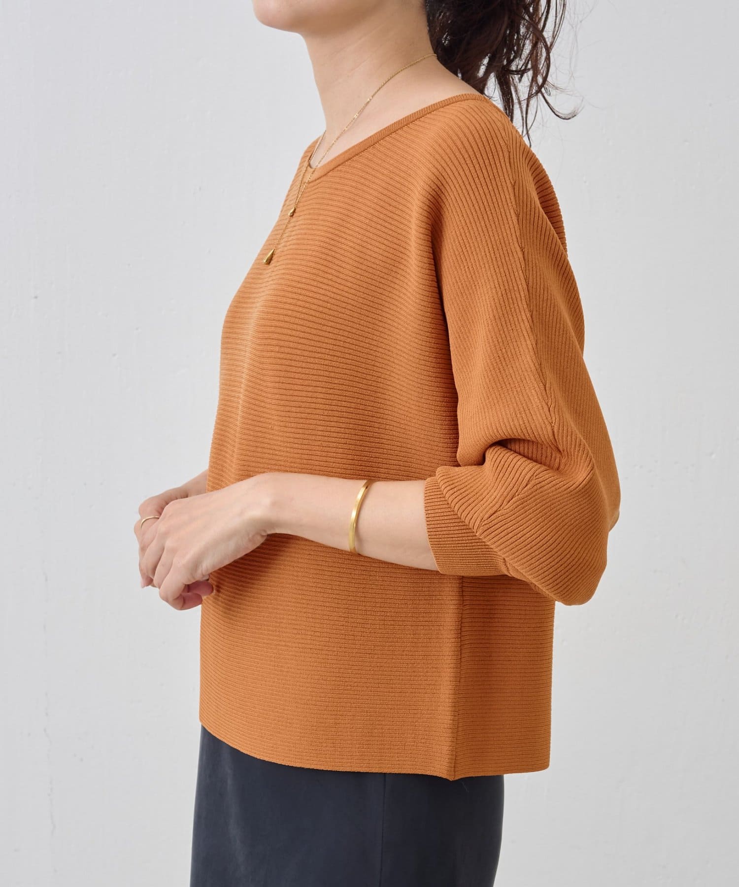程よい厚みと柔らかさが着心地の良い横リブニット。