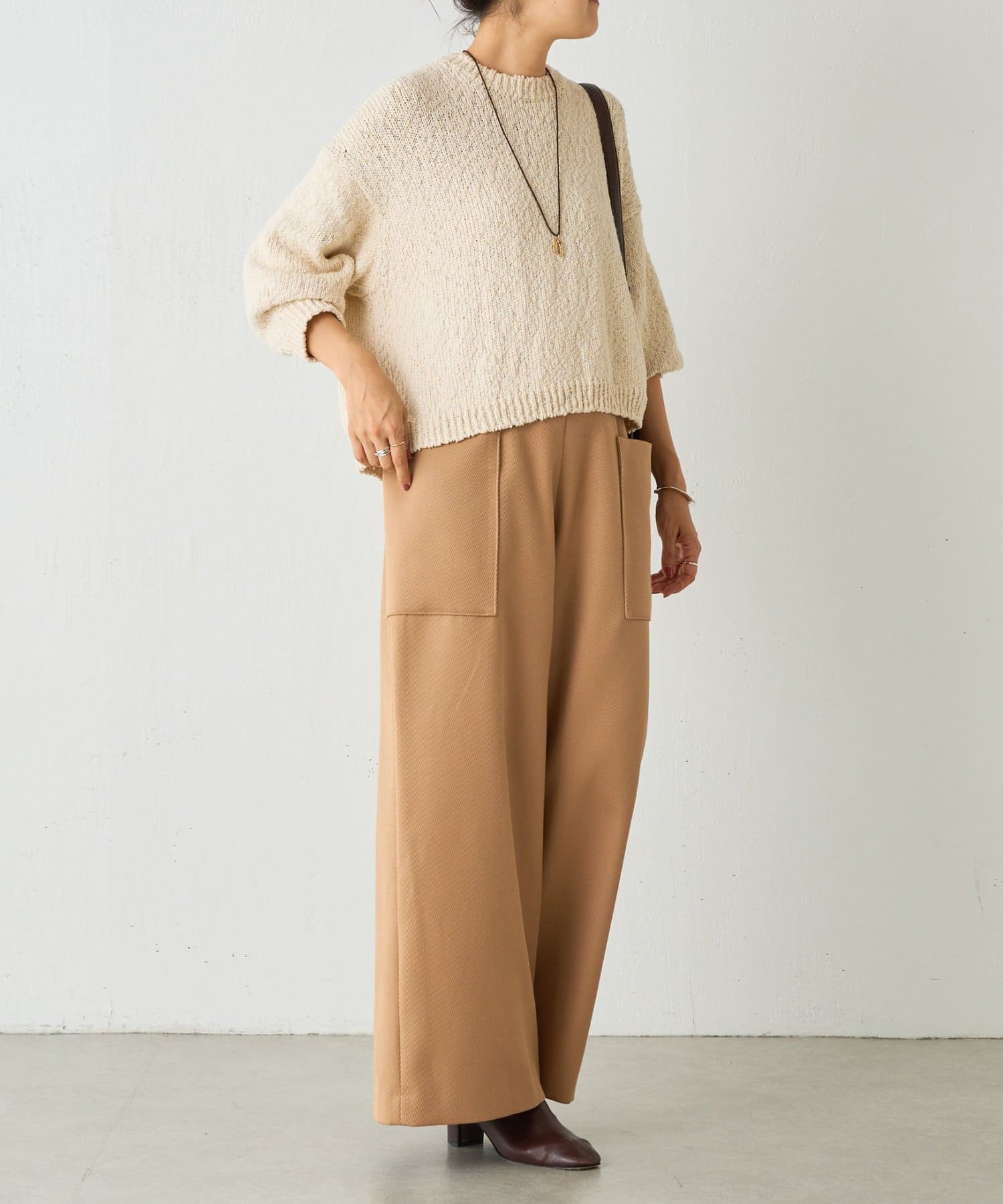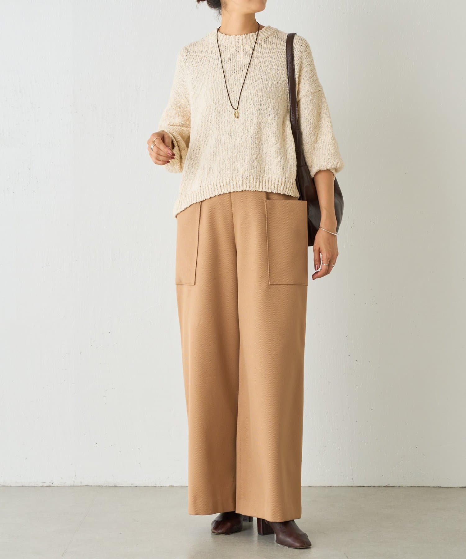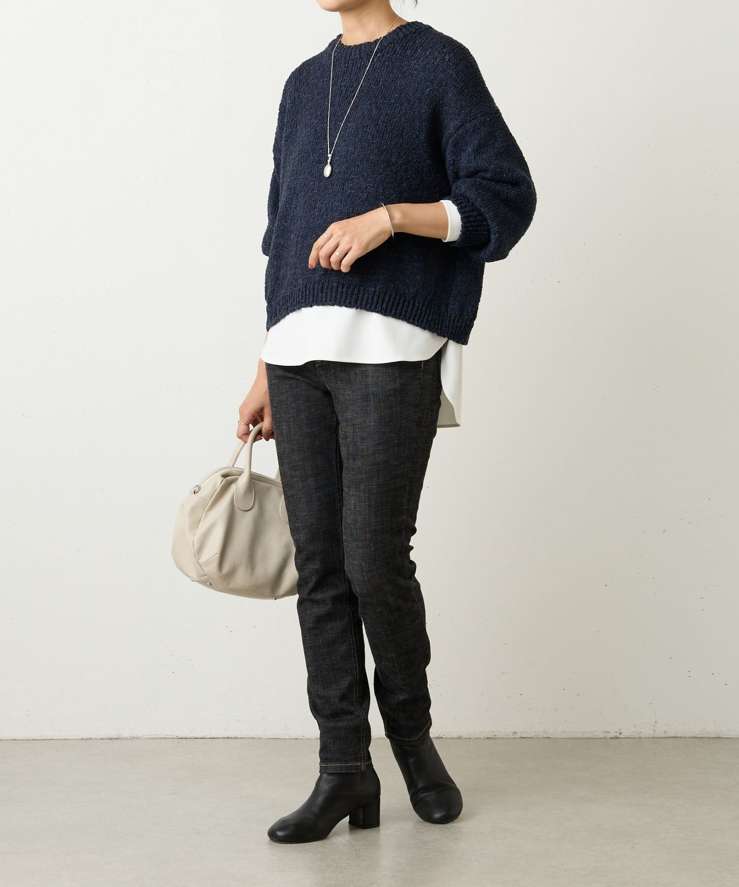 アイボリーもコットン糸のざっくりした感じが甘くなりすぎず、ラフな風合いがこなれ感を演出します。