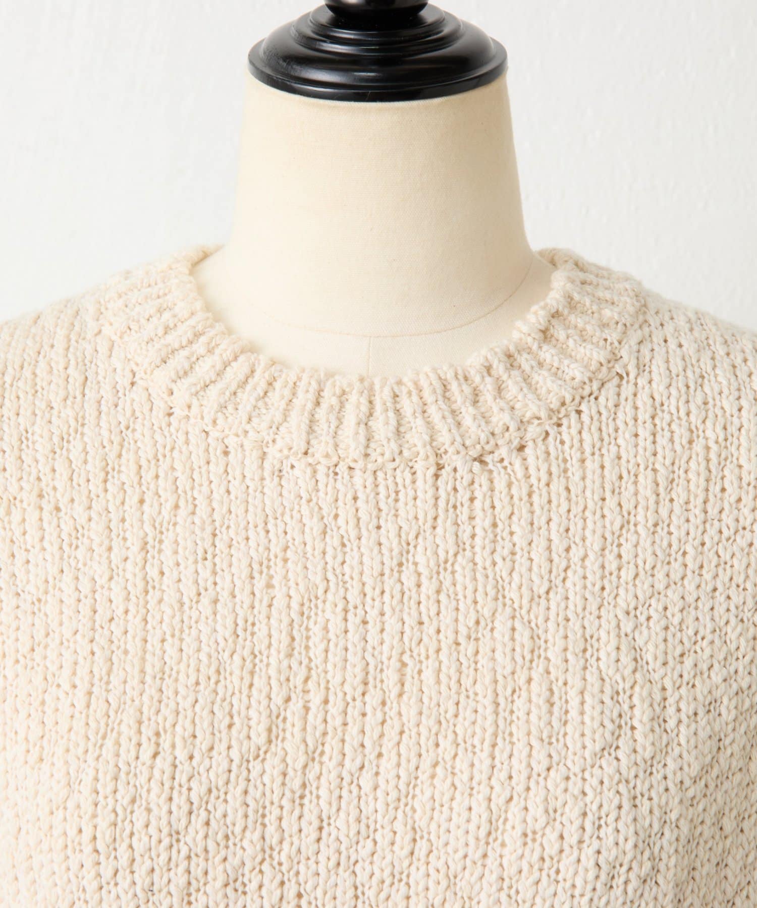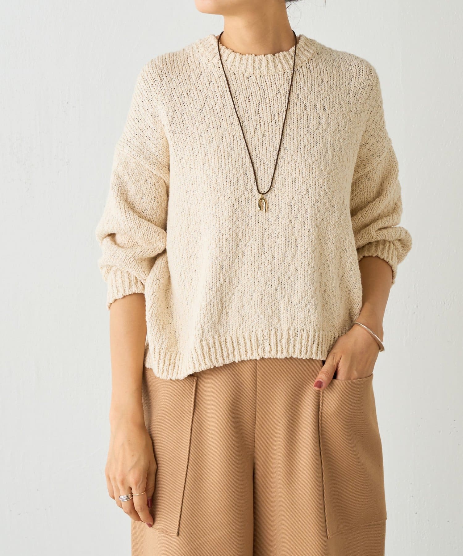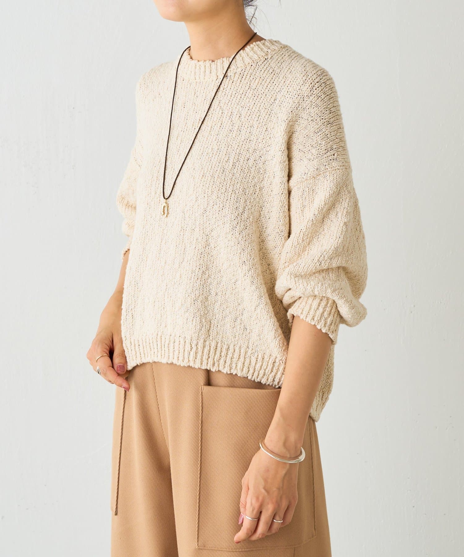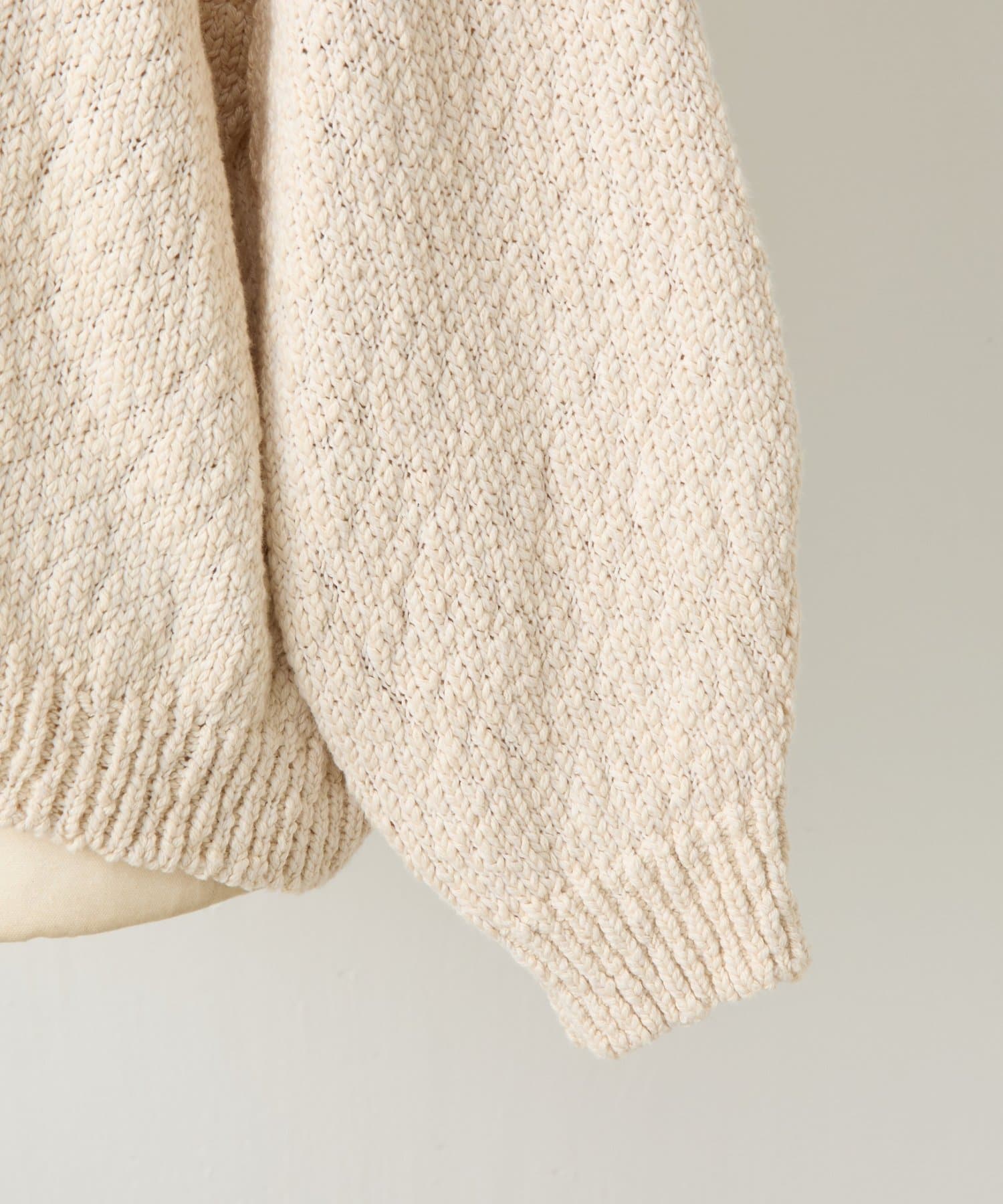 凸凹と節のあるスラブ糸を使用しラフな表面に編み上げたニット。