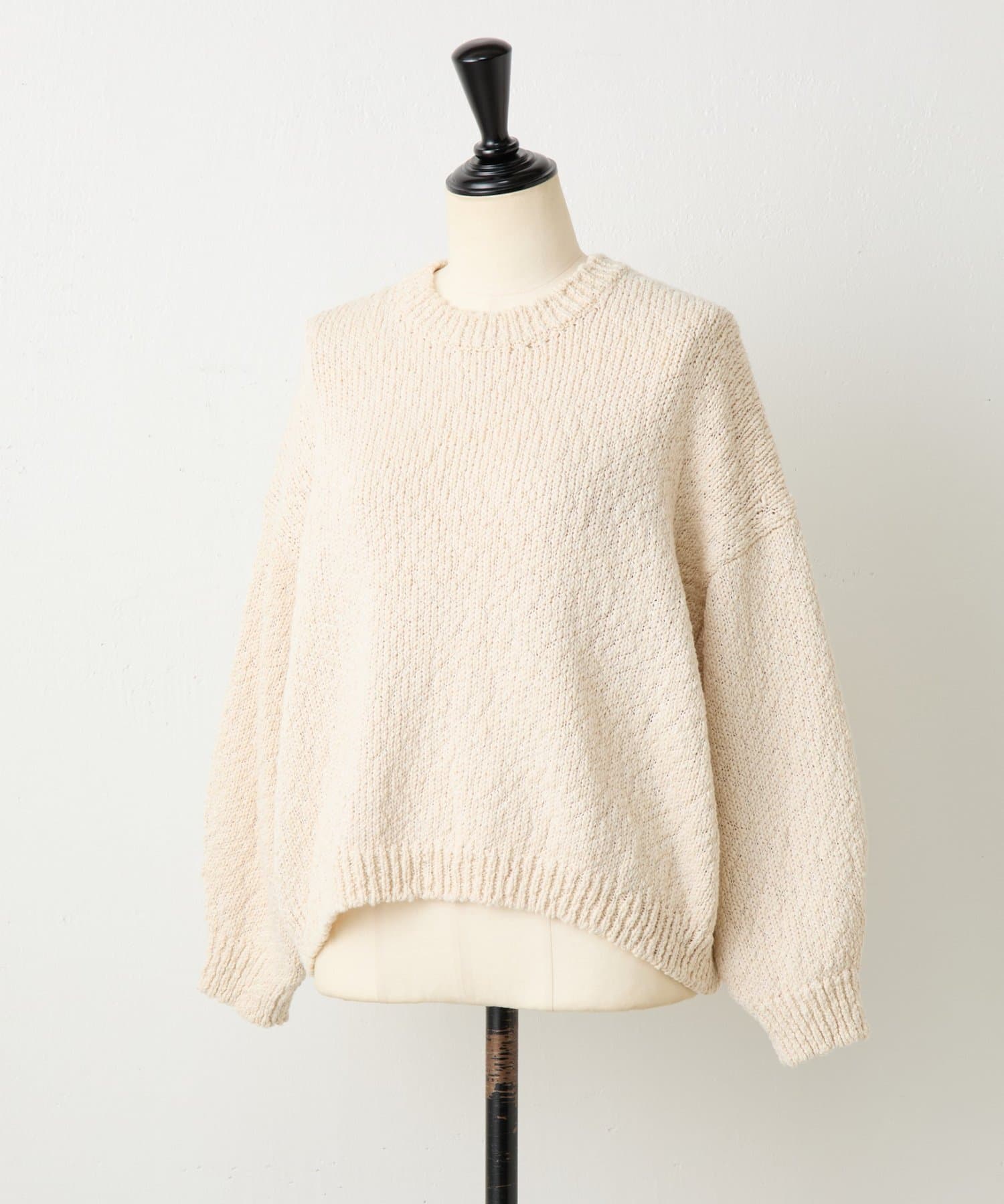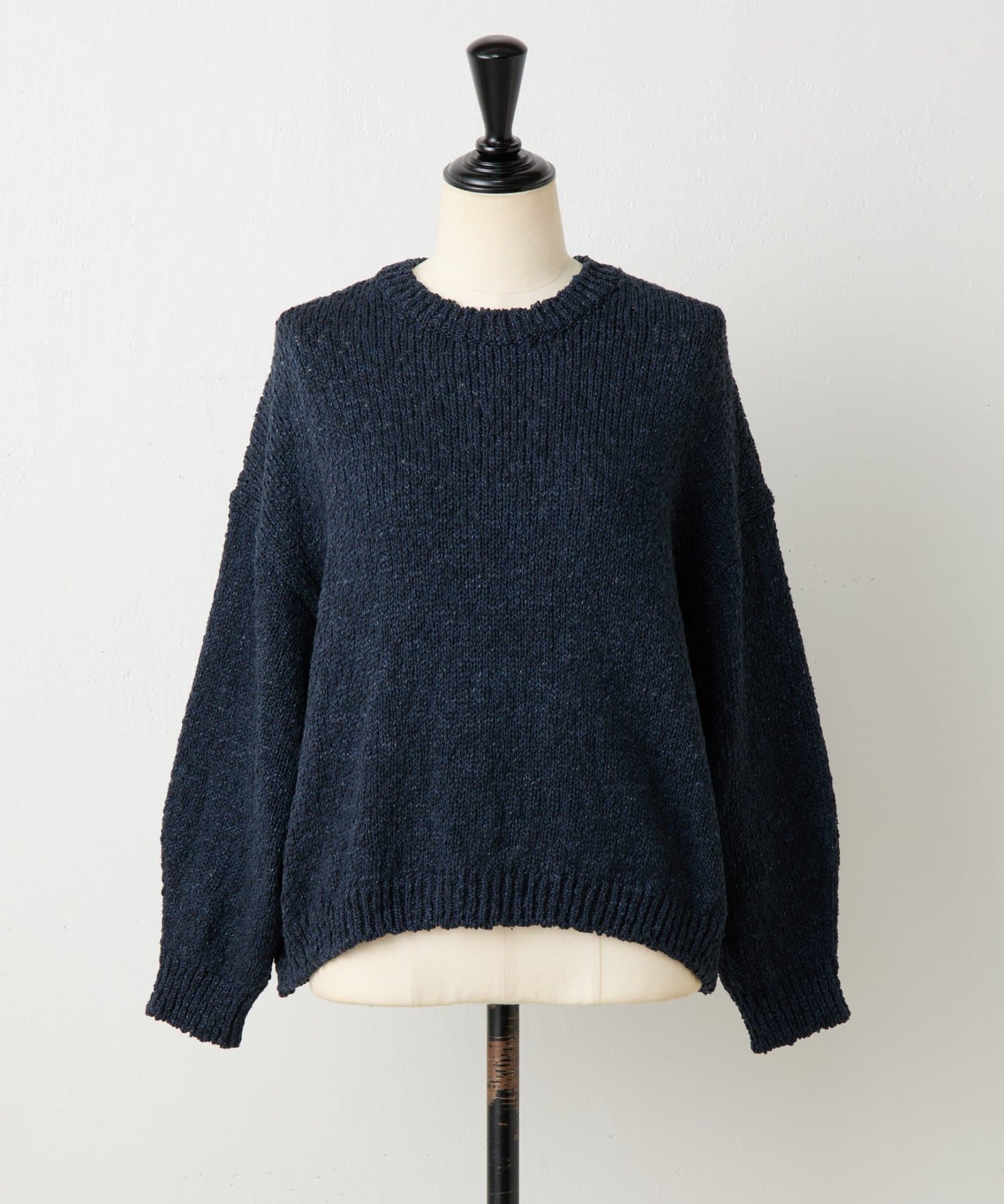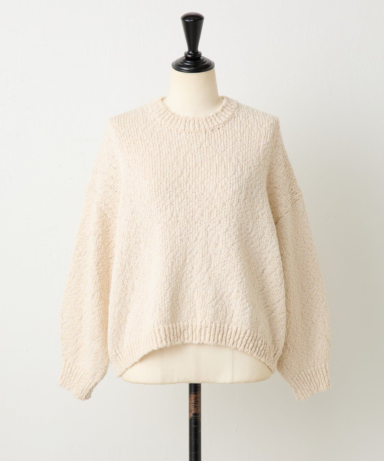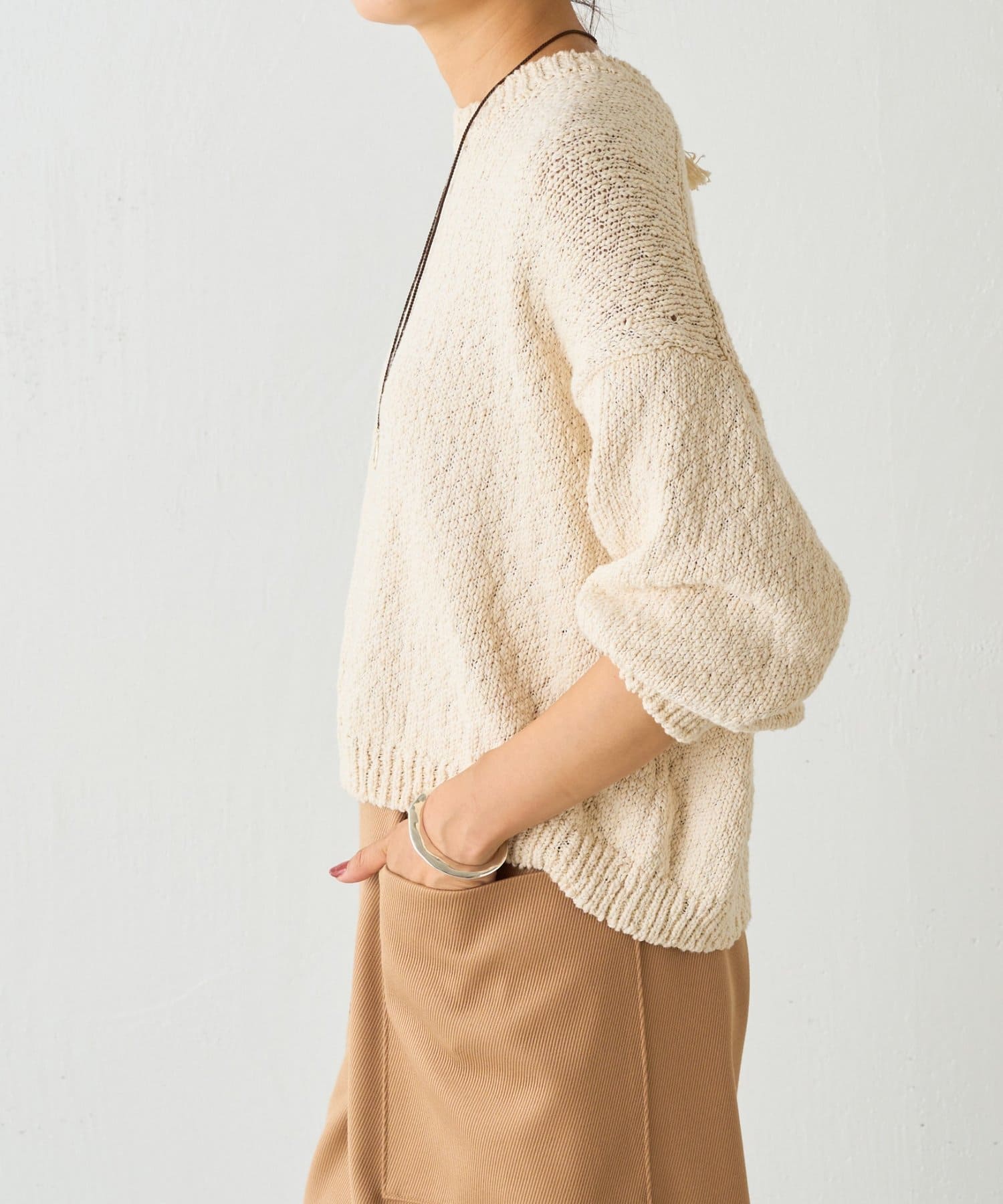 凸凹と節のあるスラブ糸を使用しラフな表面に編み上げたニット。