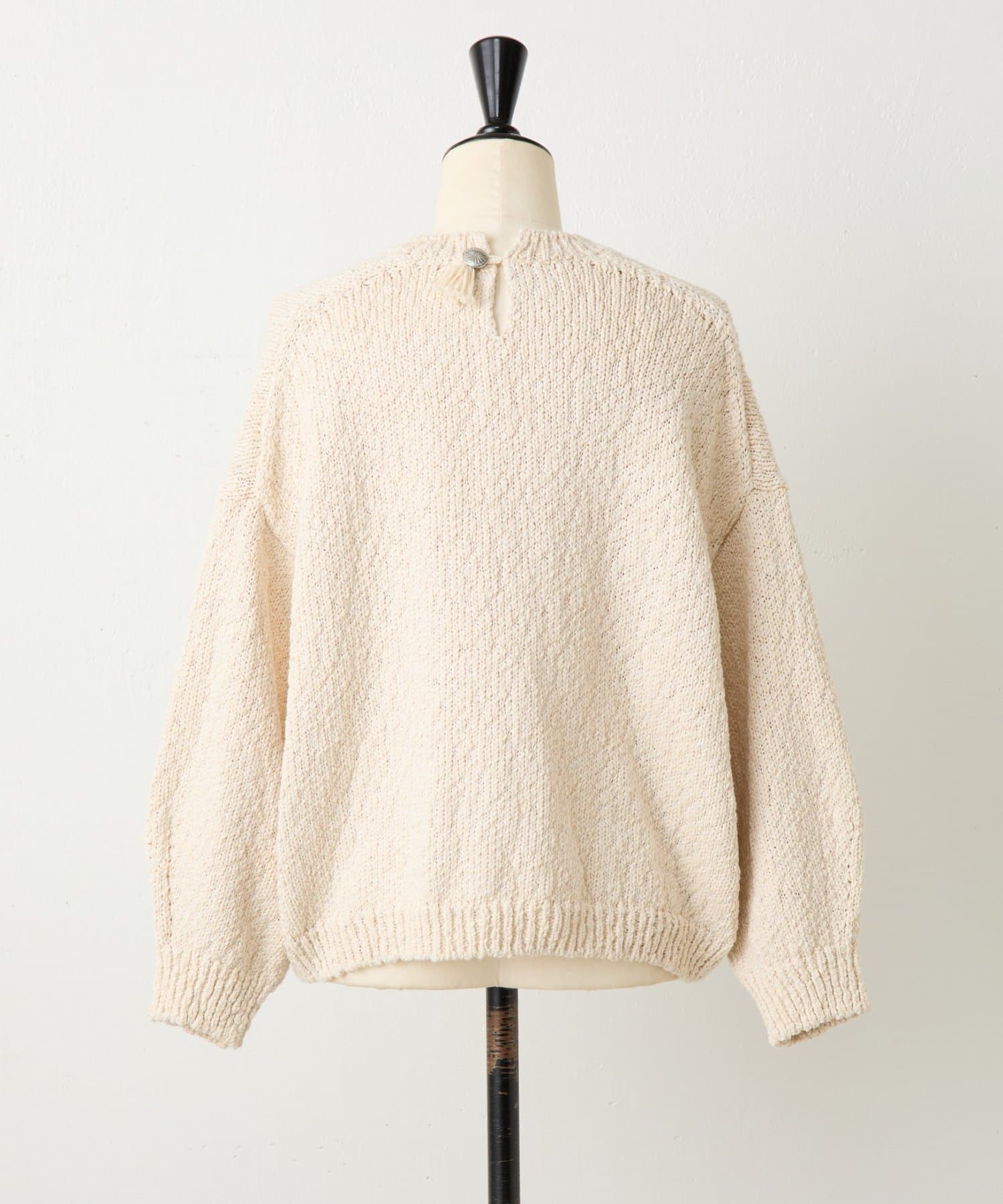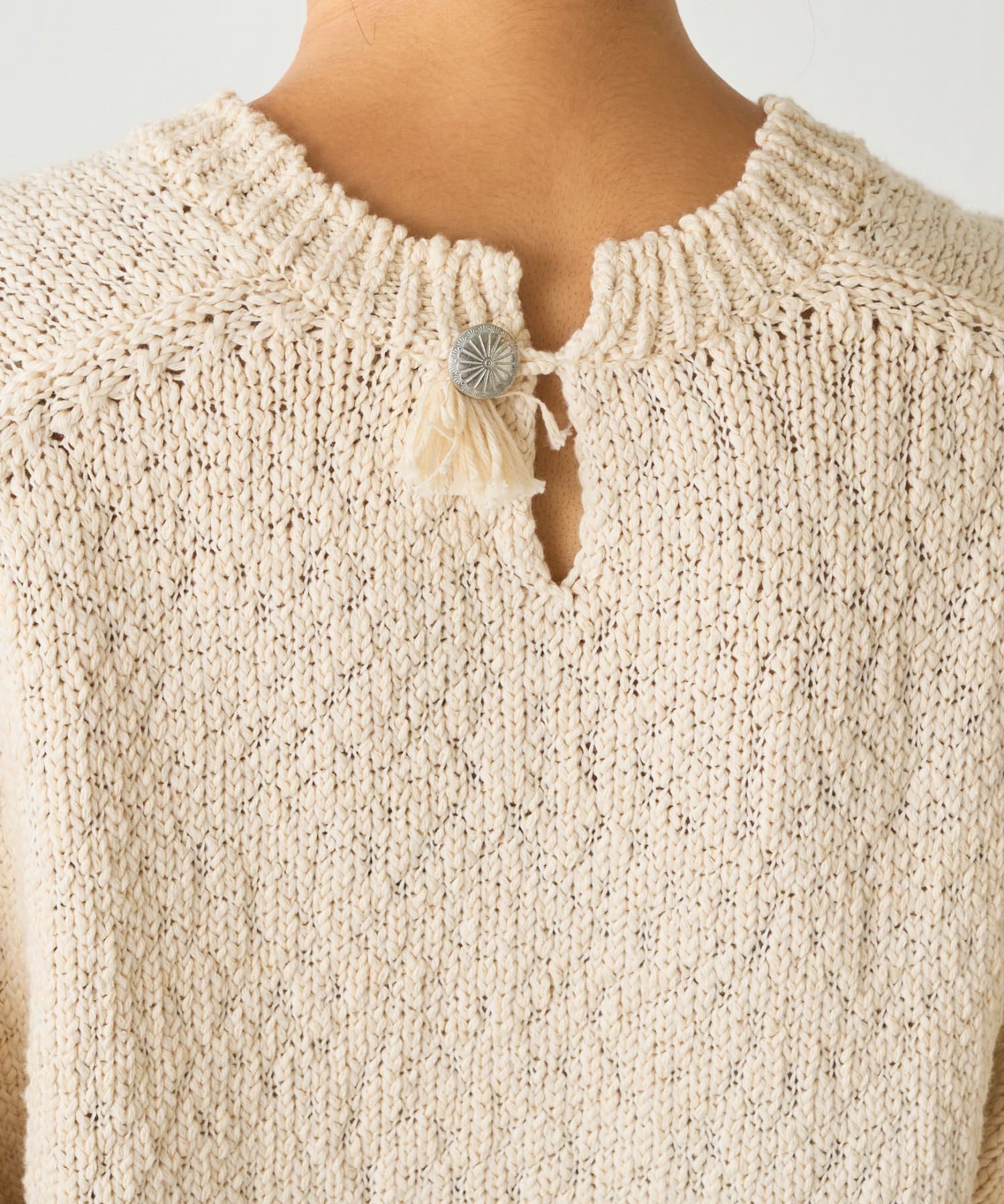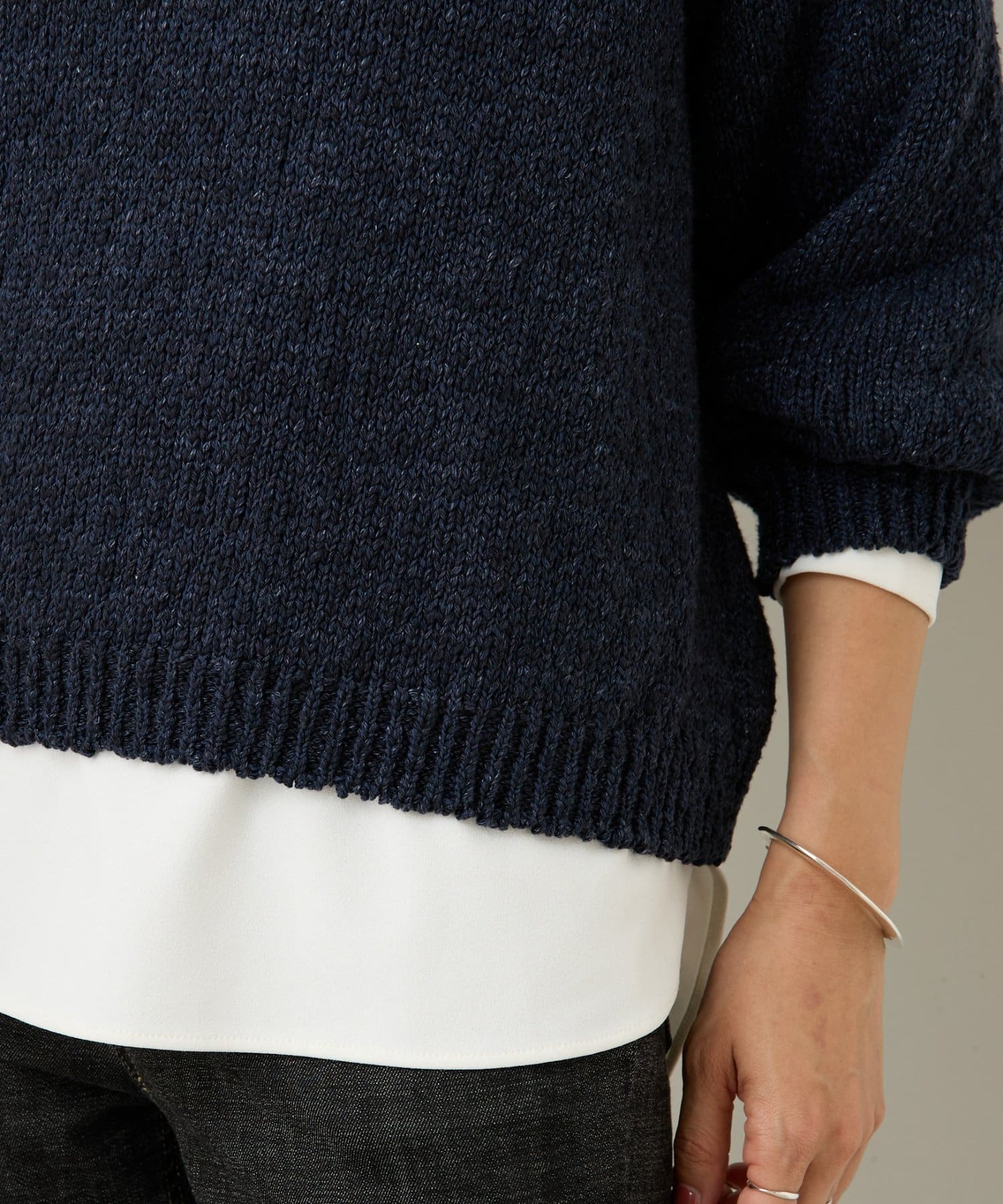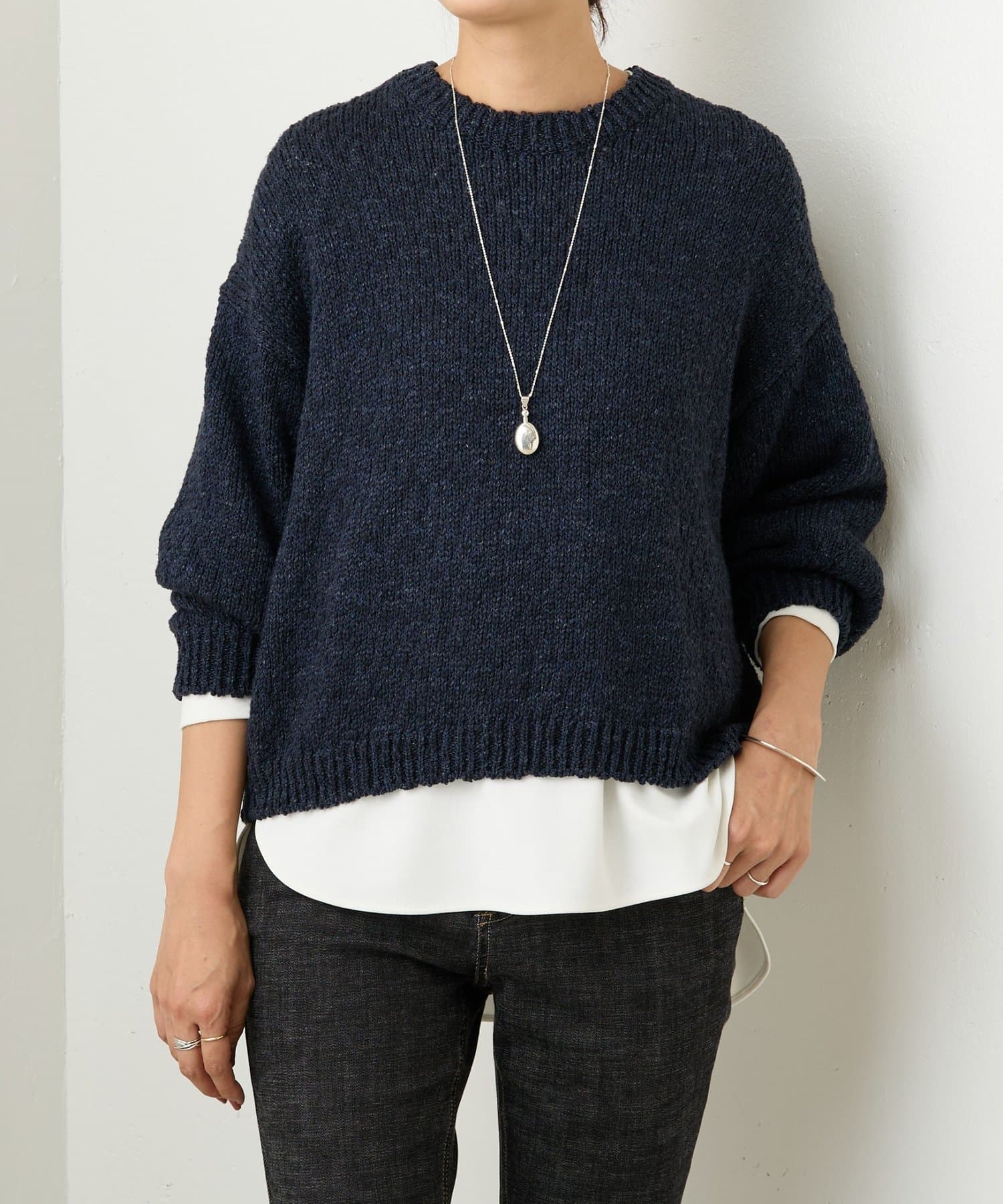 凸凹と節のあるスラブ糸を使用しラフな表面に編み上げたニット。