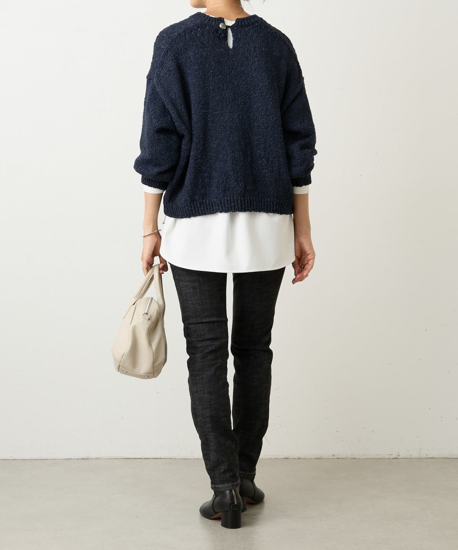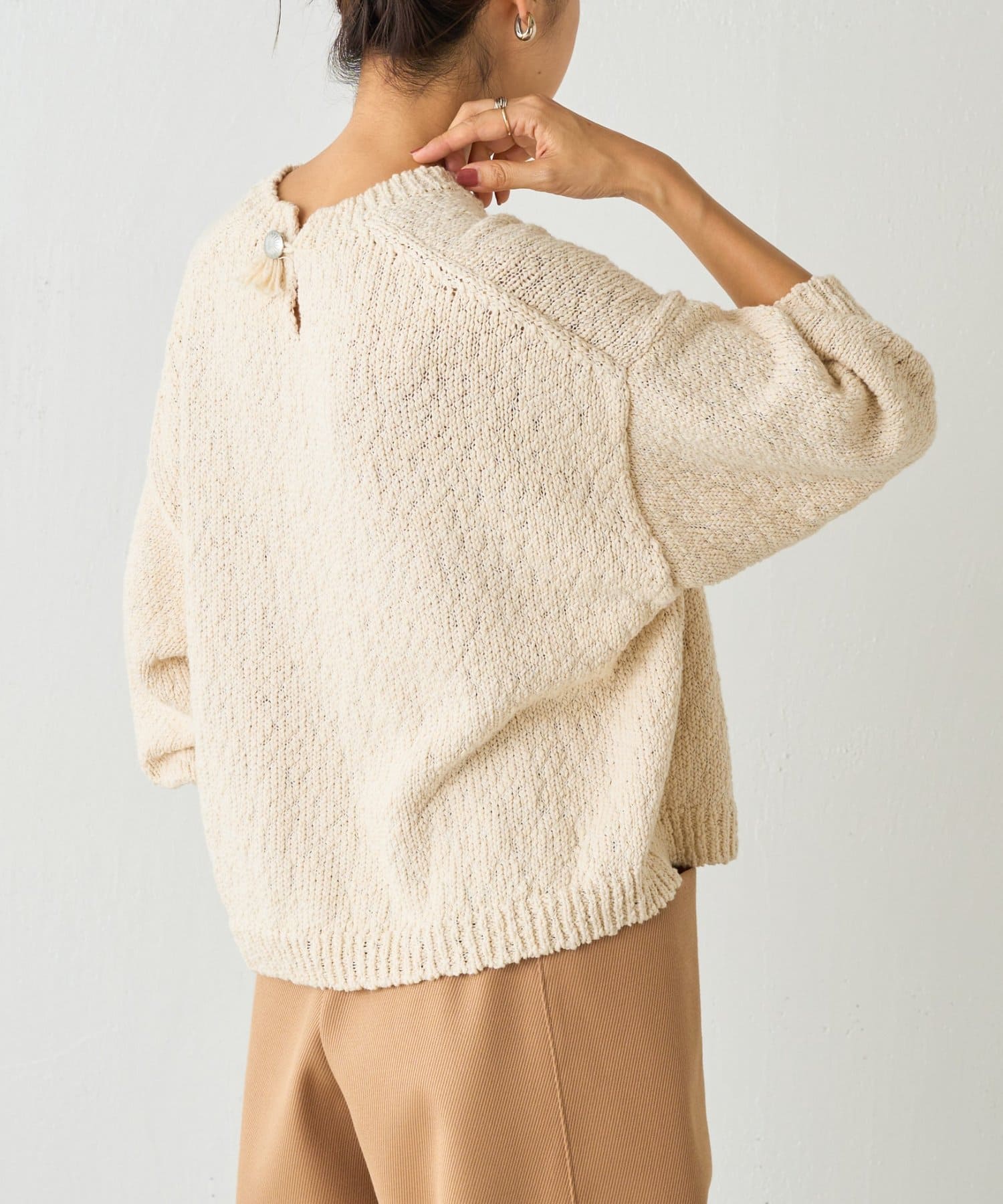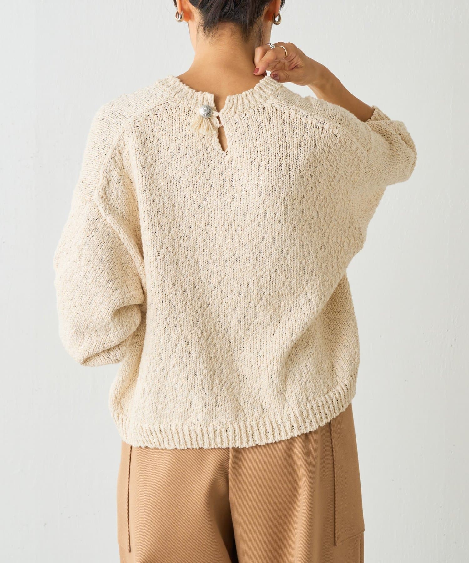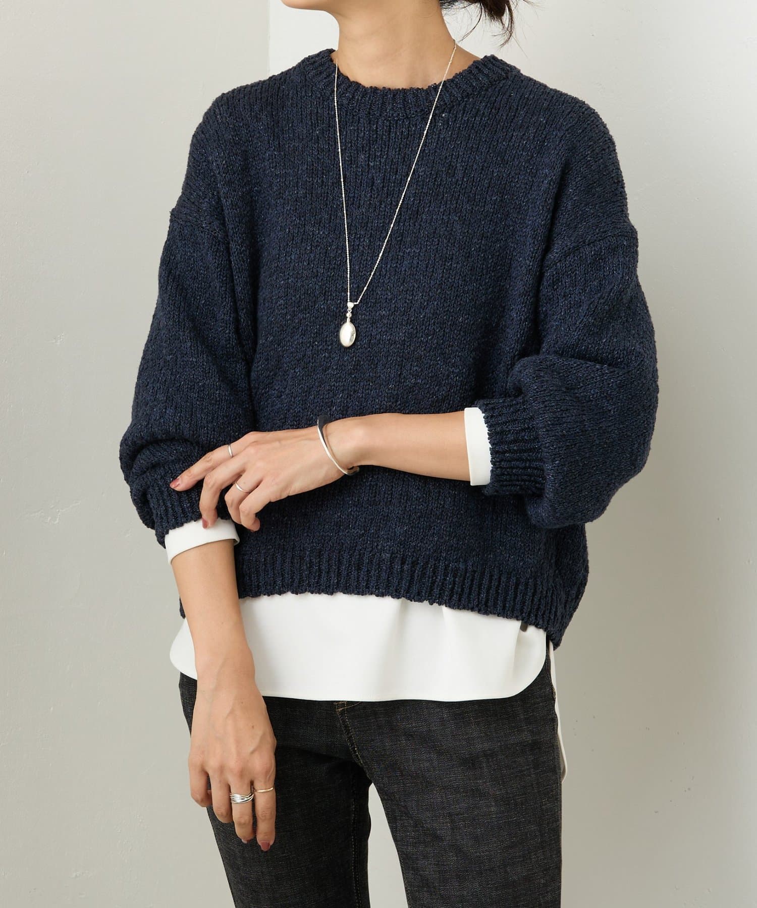 凸凹と節のあるスラブ糸を使用しラフな表面に編み上げたニット。