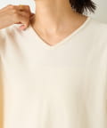 襟元がスッキリと開いており、裾にはスリット入りなので、シャツやタートルネックとのコーディネートも楽しめます。