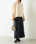 コットン&ポリエステル素材のニットはさらりと着られ、秋にぴったりのアイテム。