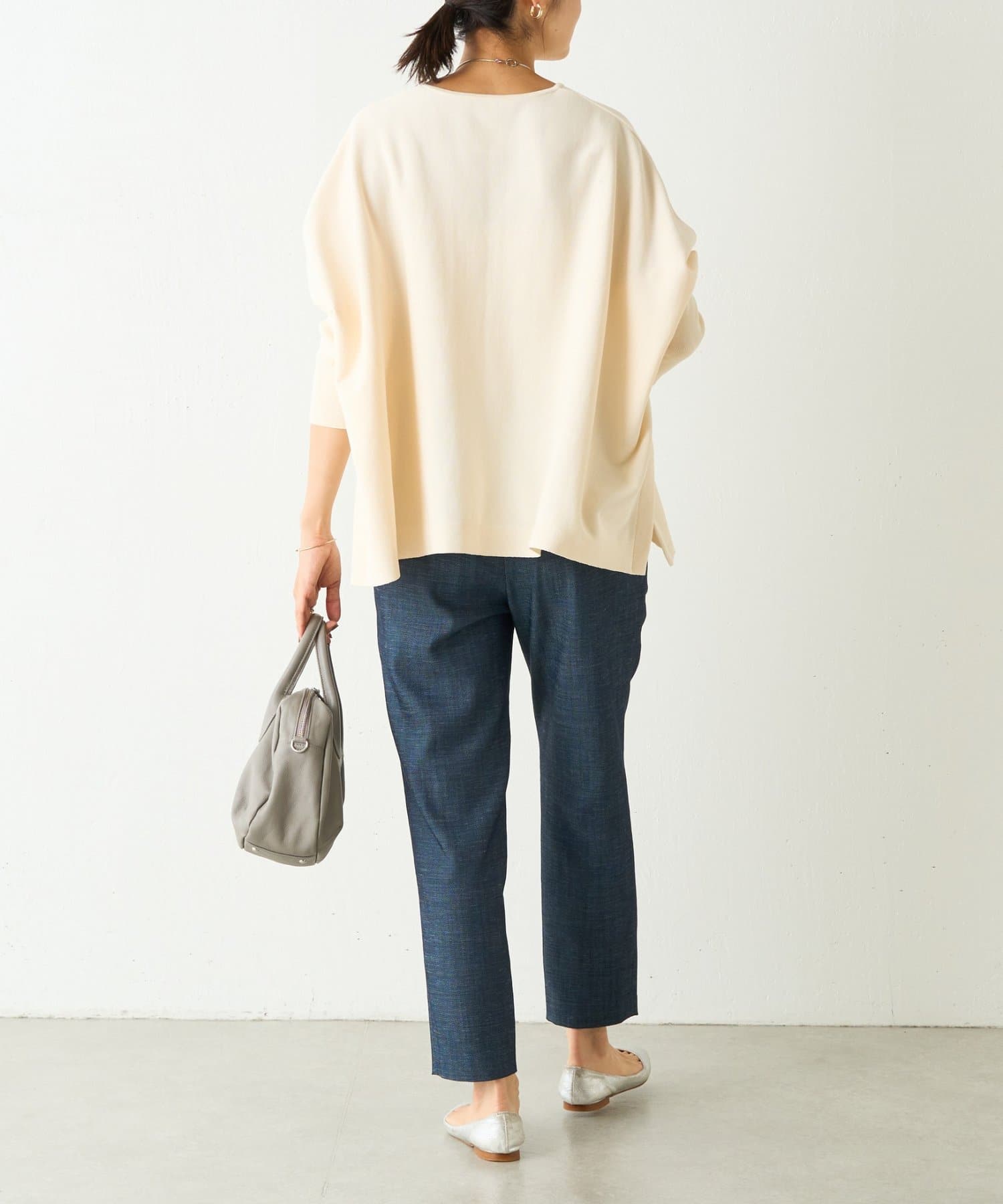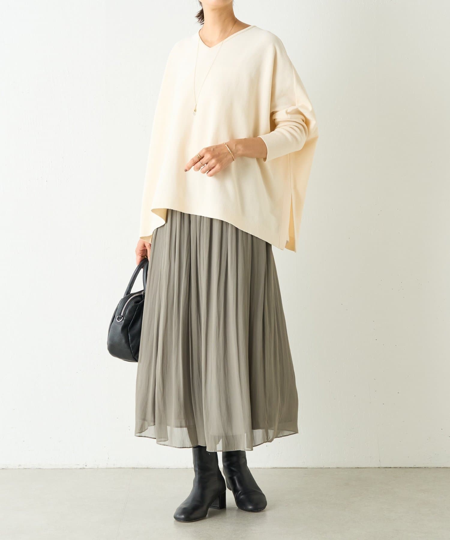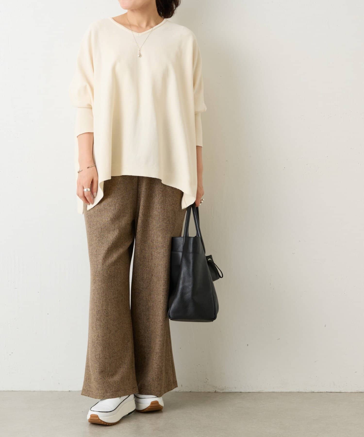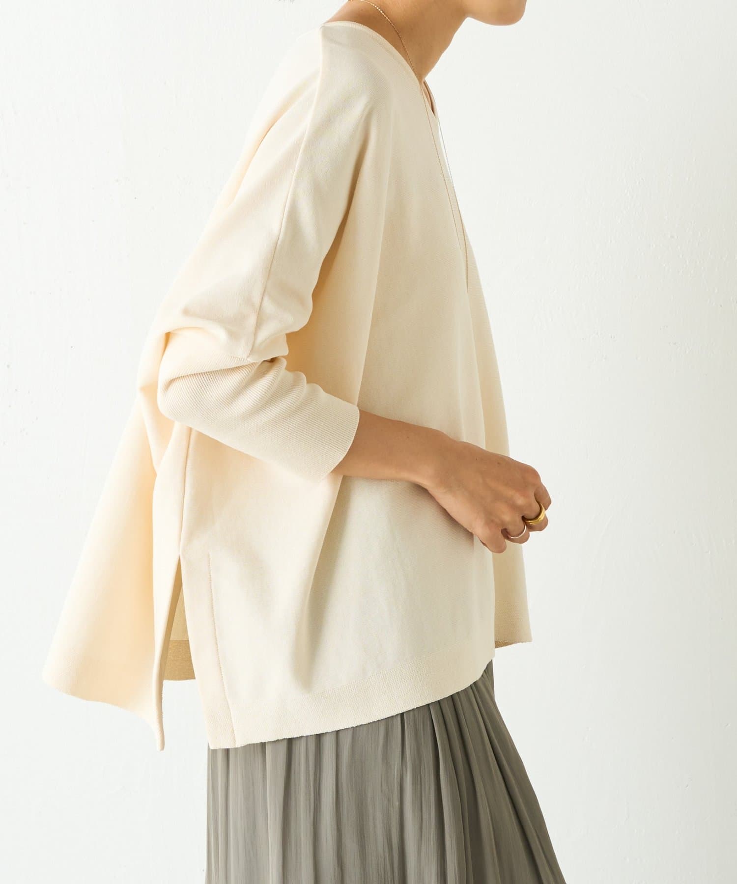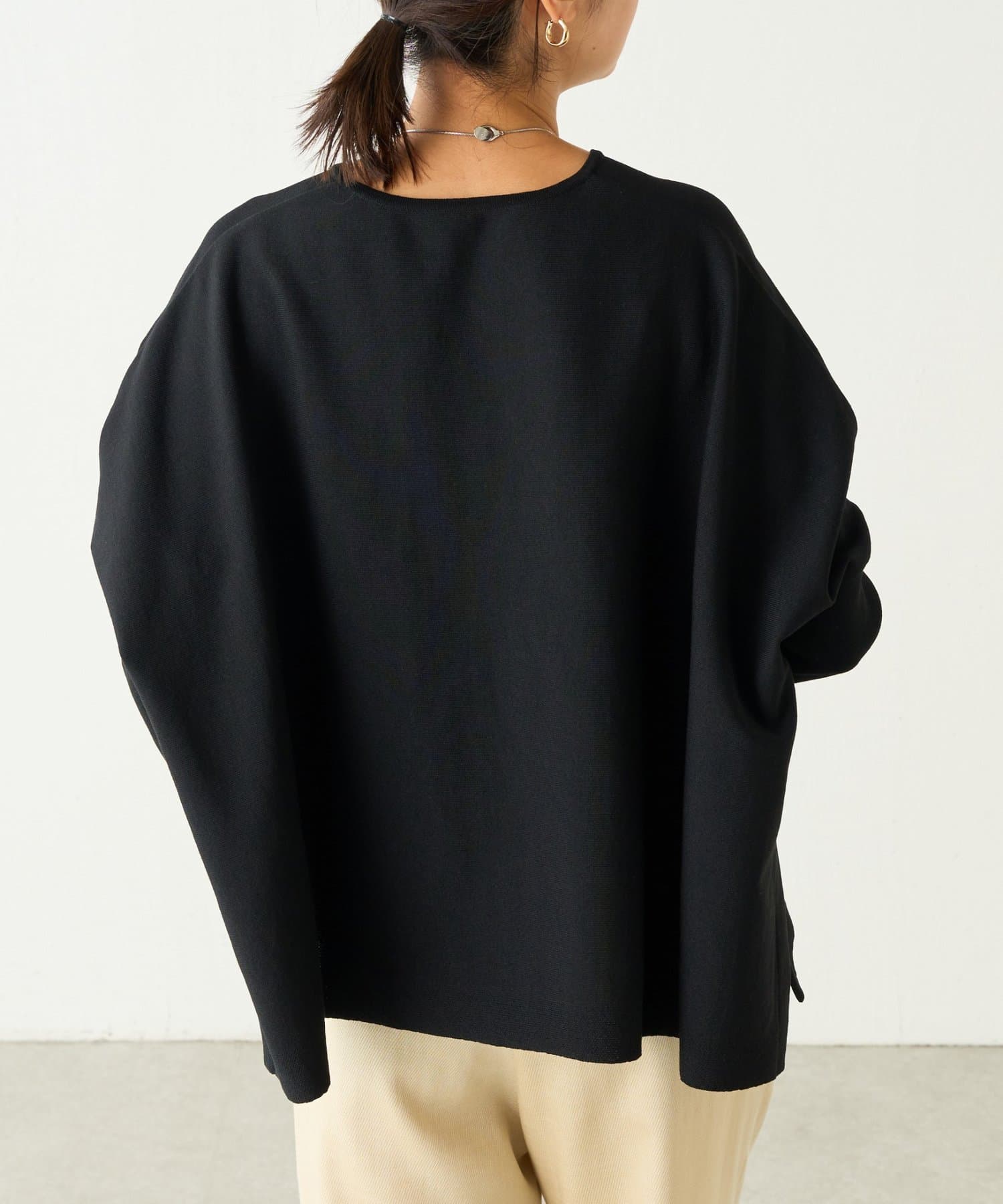 BIGニットは、身幅を広めにとっているので、体のラインを拾いにくいのが特徴です。