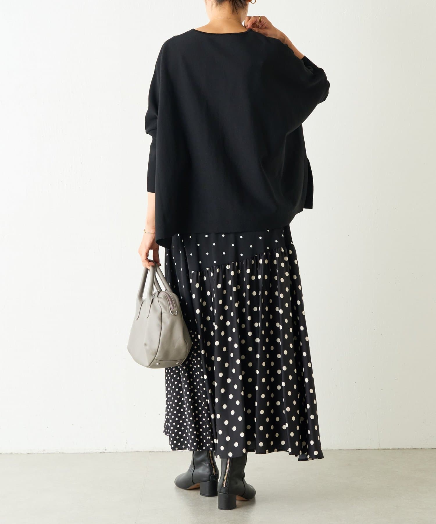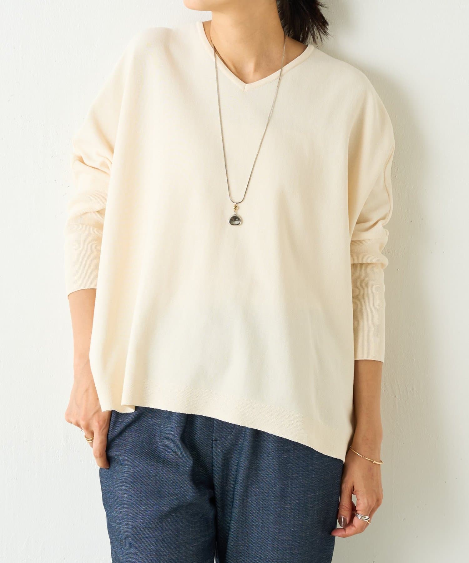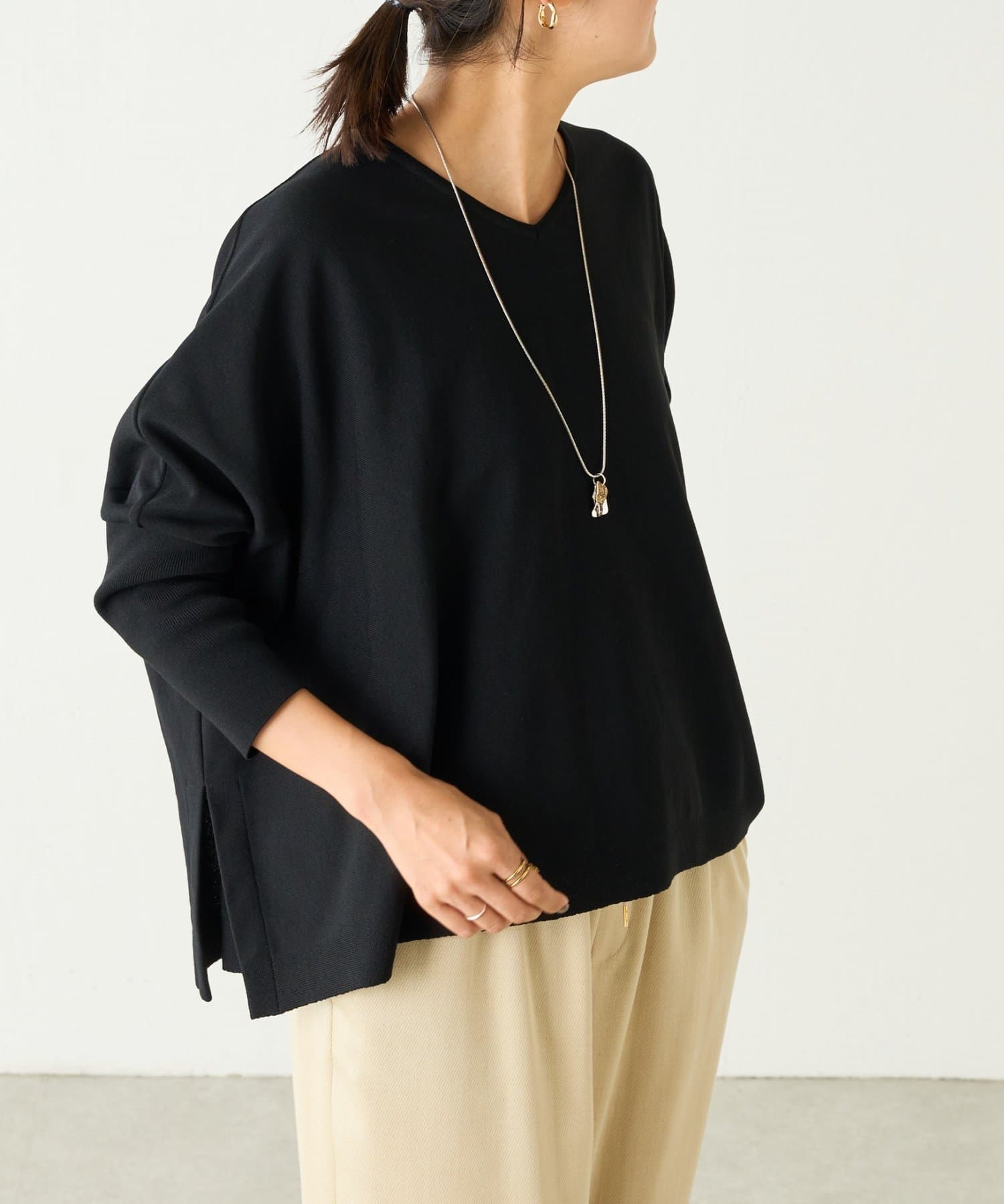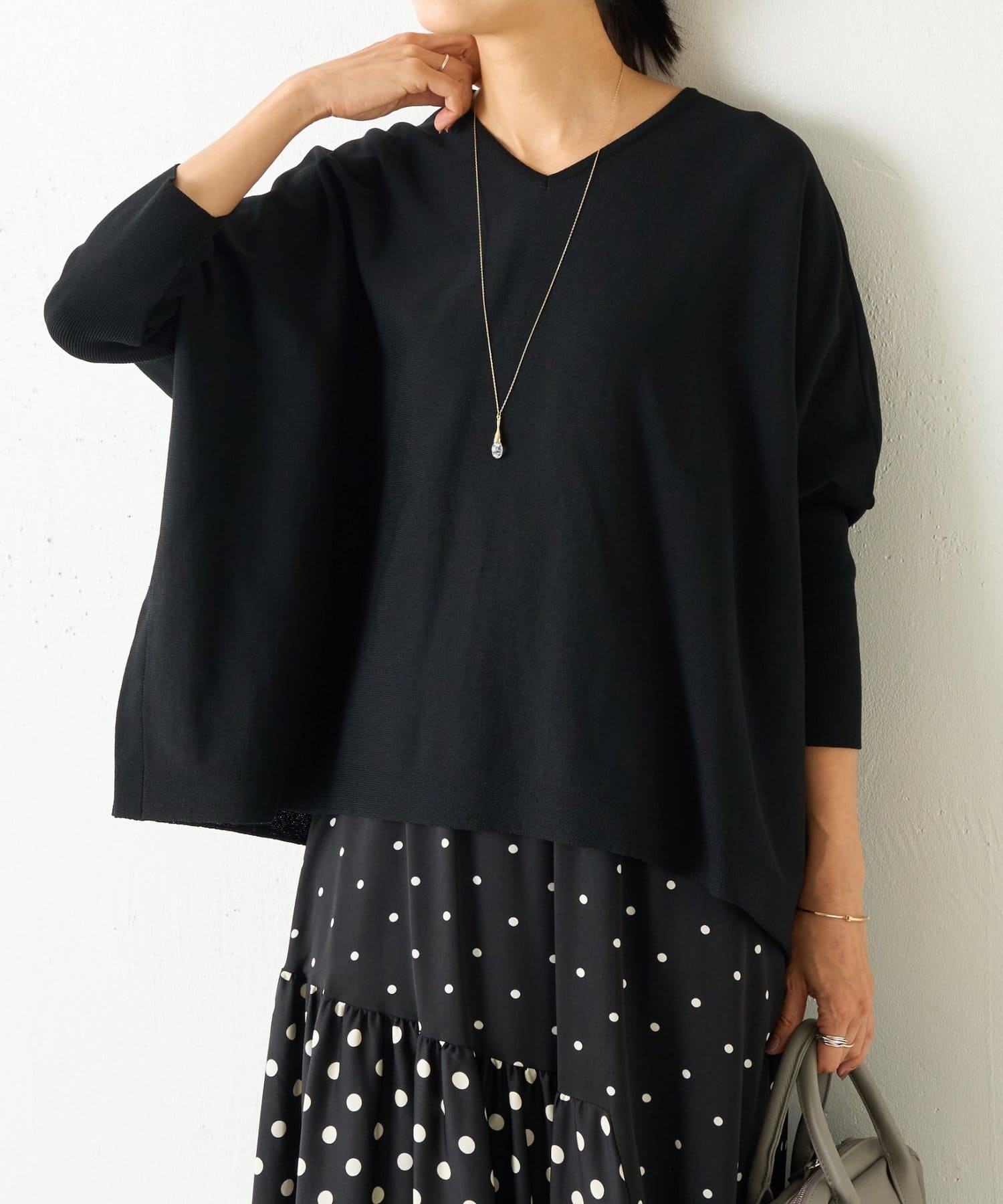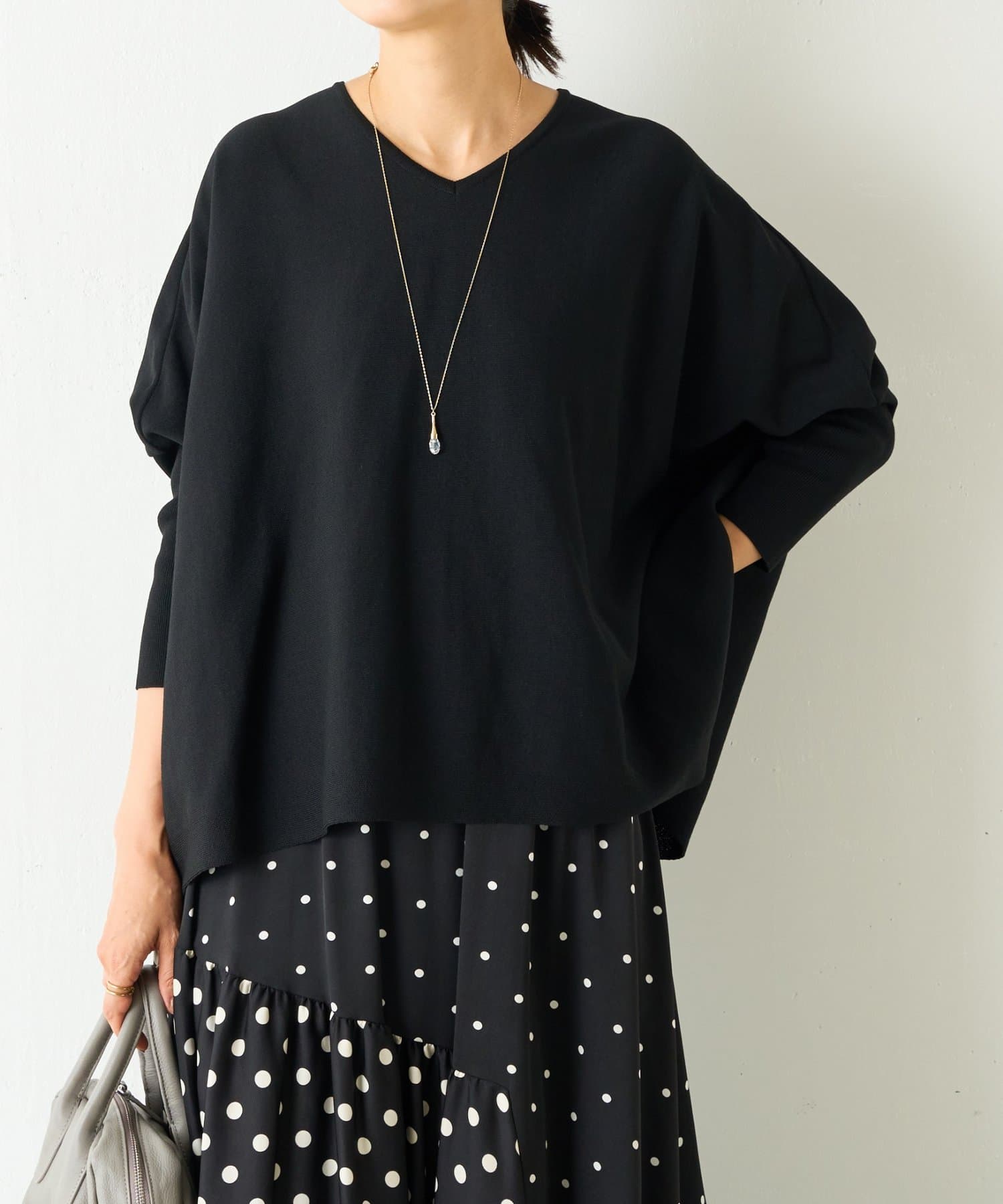 BIGニットは、身幅を広めにとっているので、体のラインを拾いにくいのが特徴です。