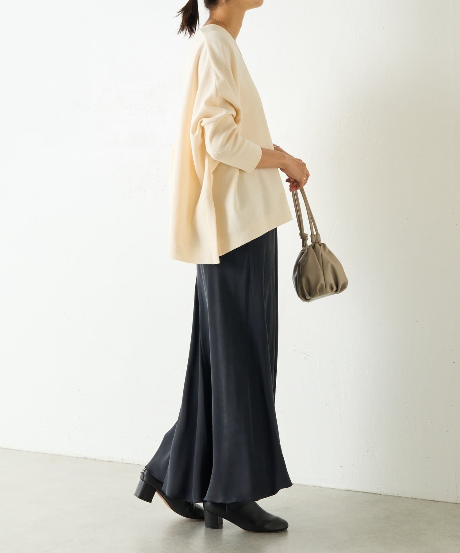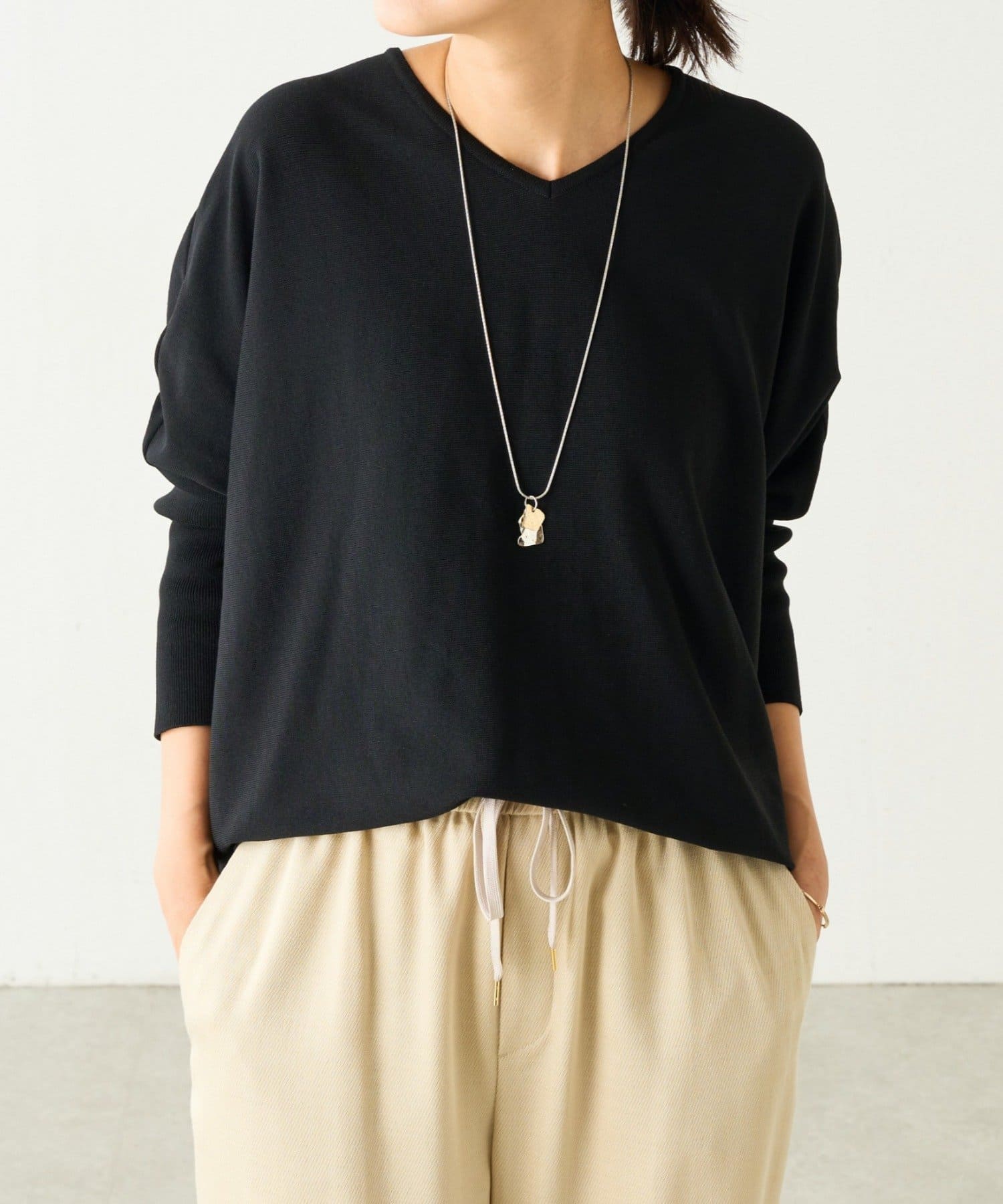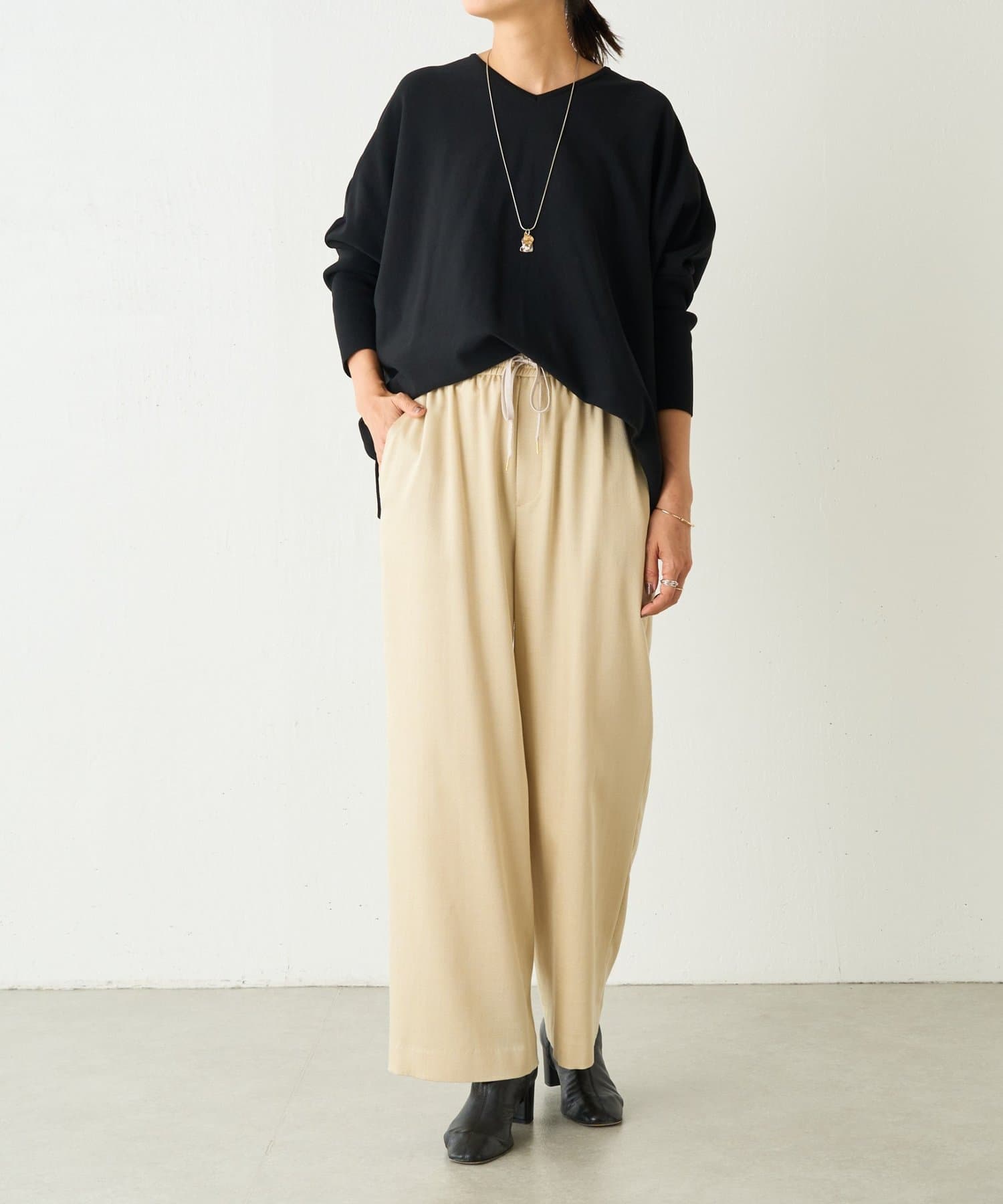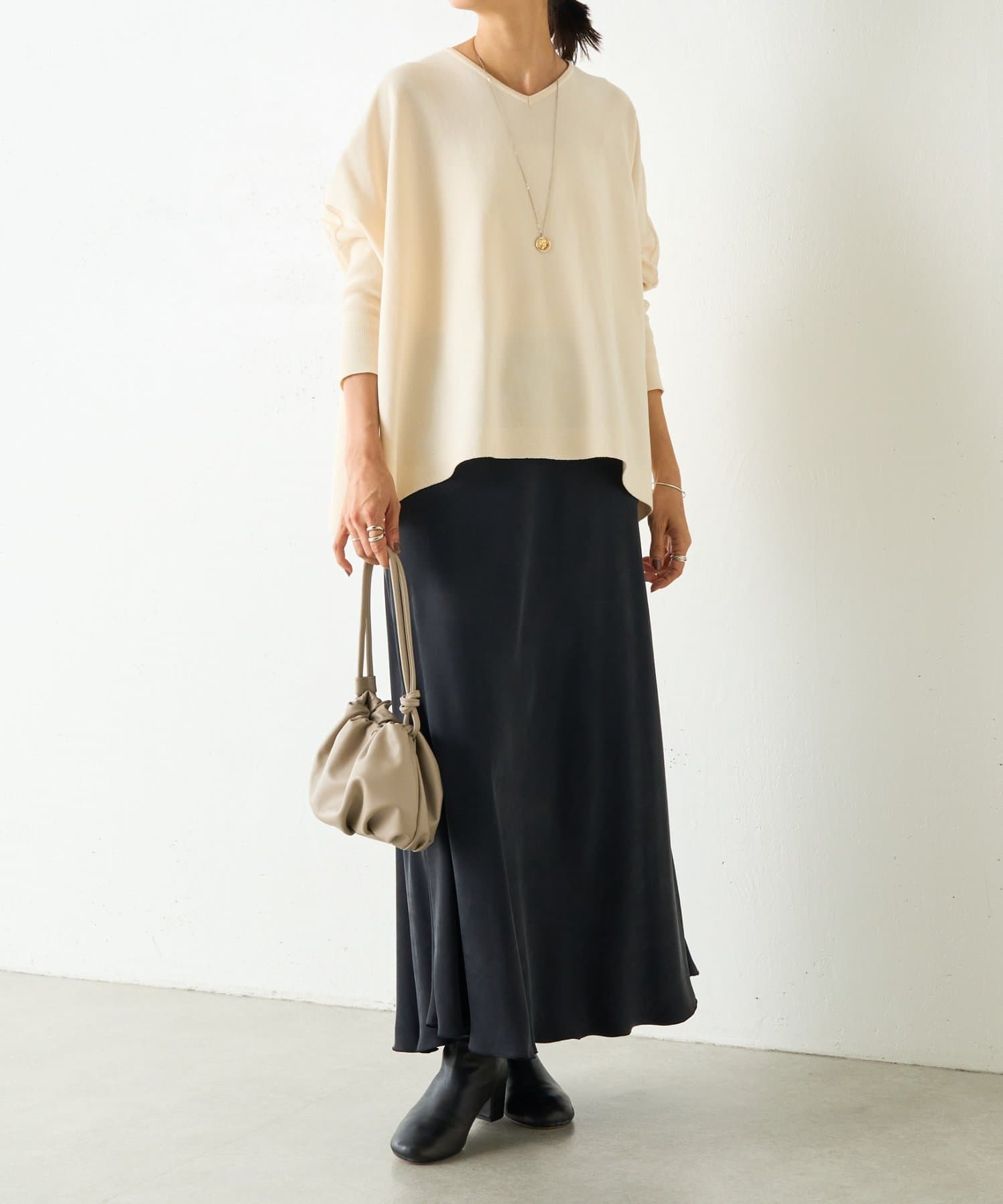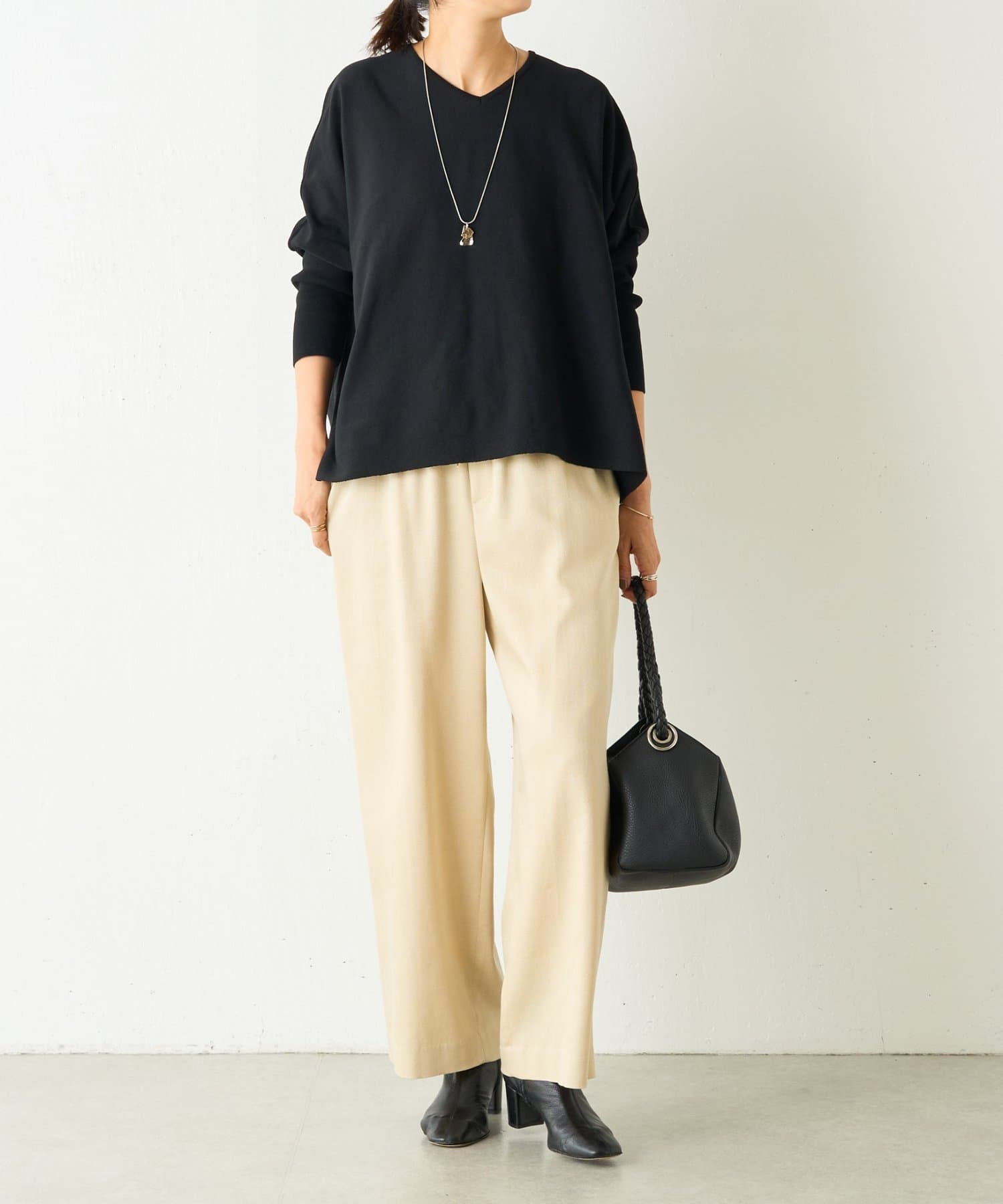 BIGニットは、身幅を広めにとっているので、体のラインを拾いにくいのが特徴です。
