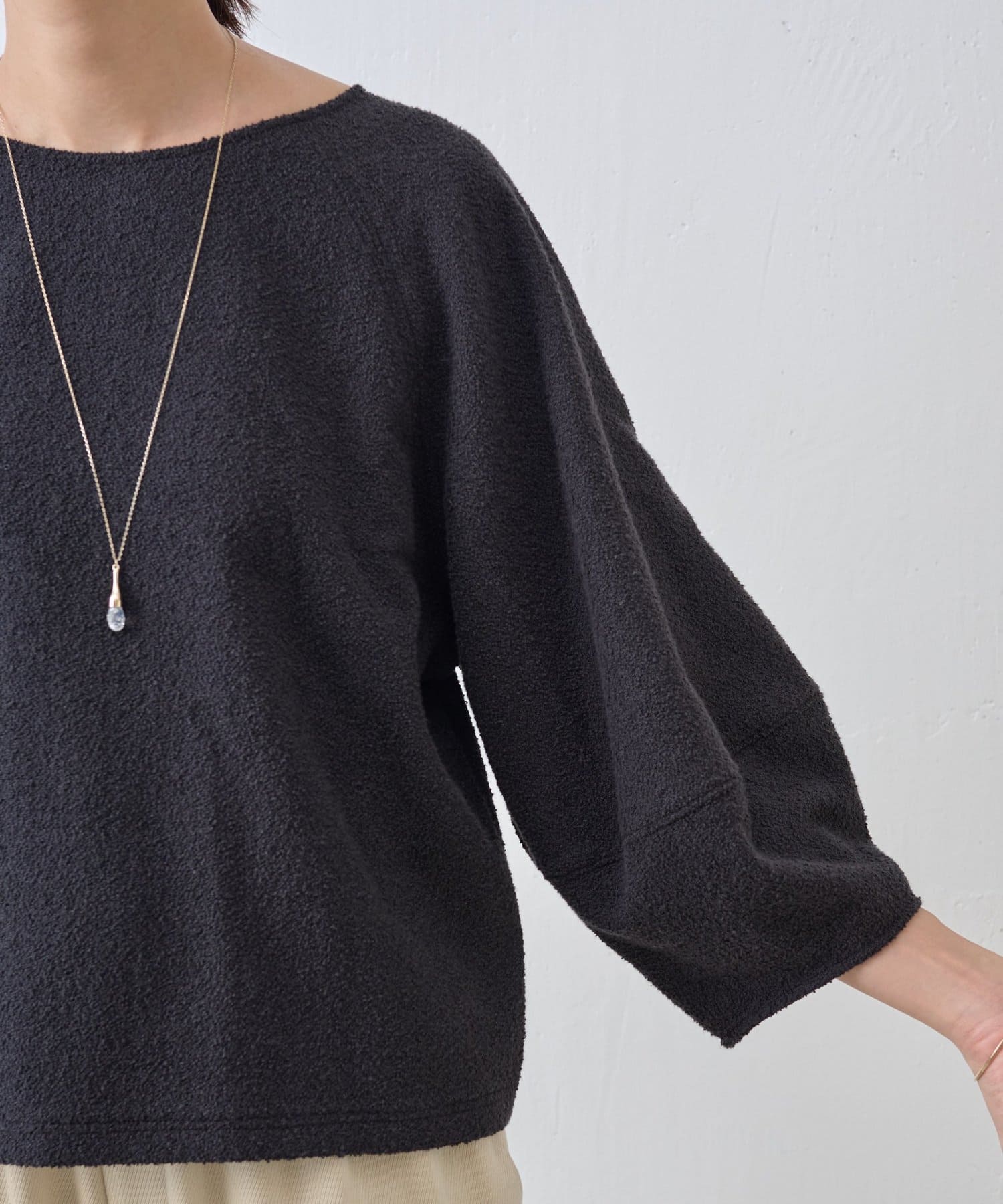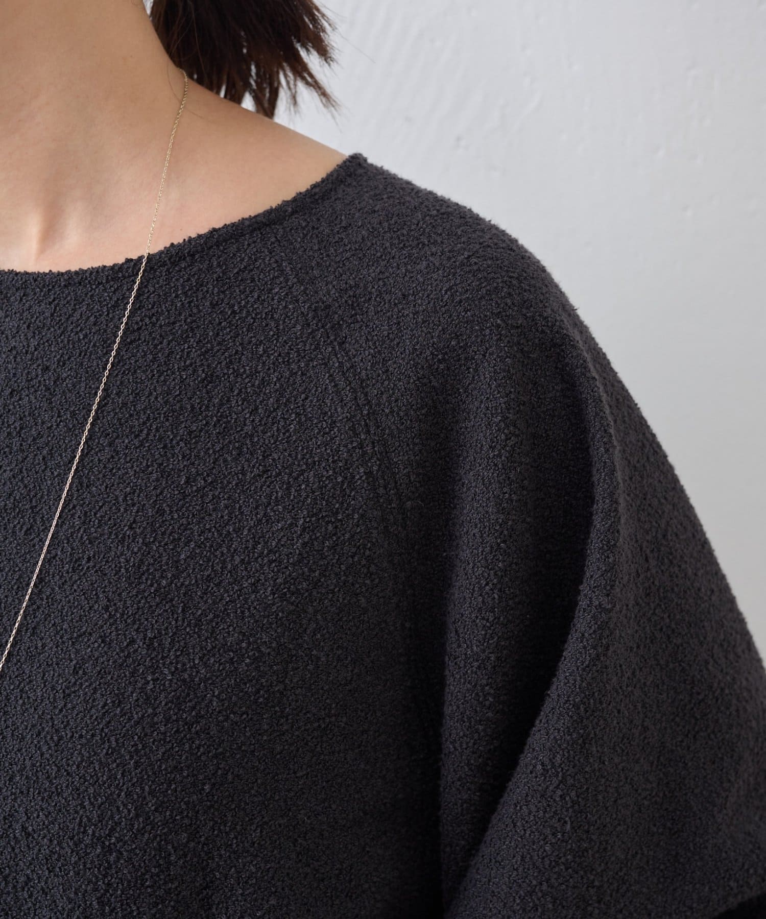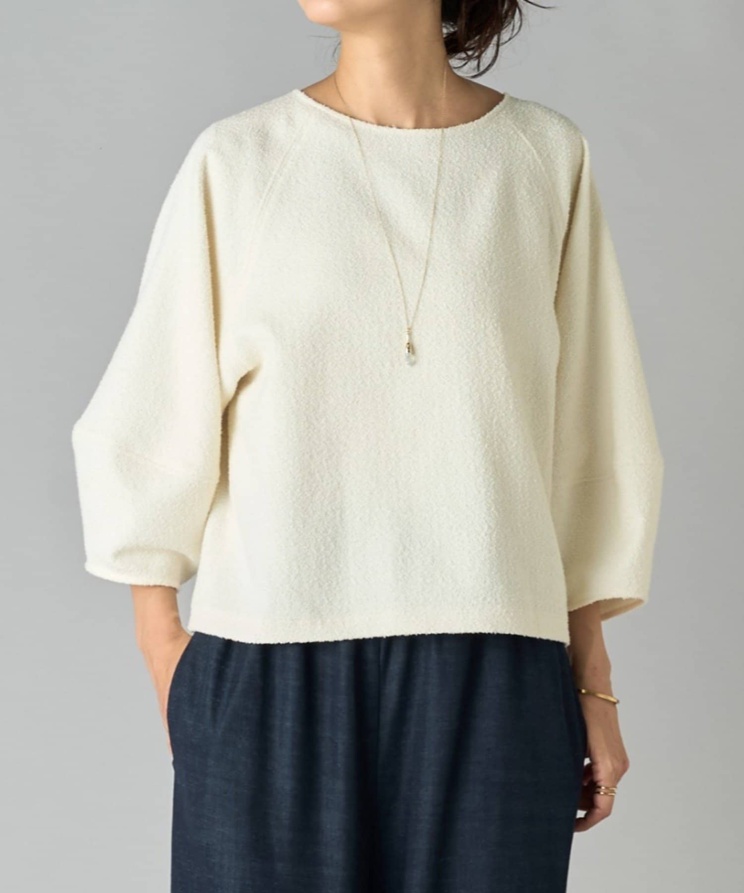 表情のあるミニループ素材を使用したショート丈のプルオーバー。
