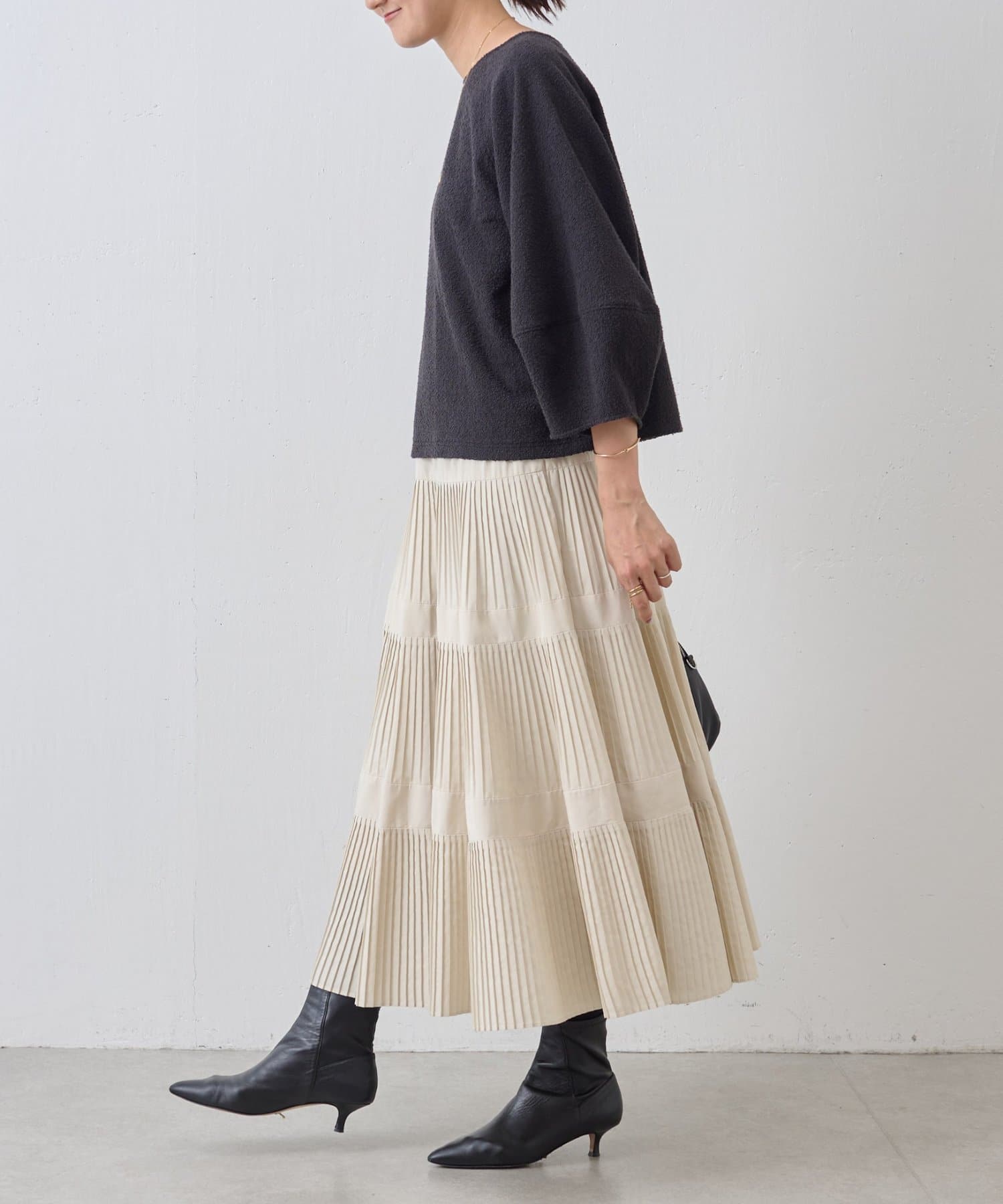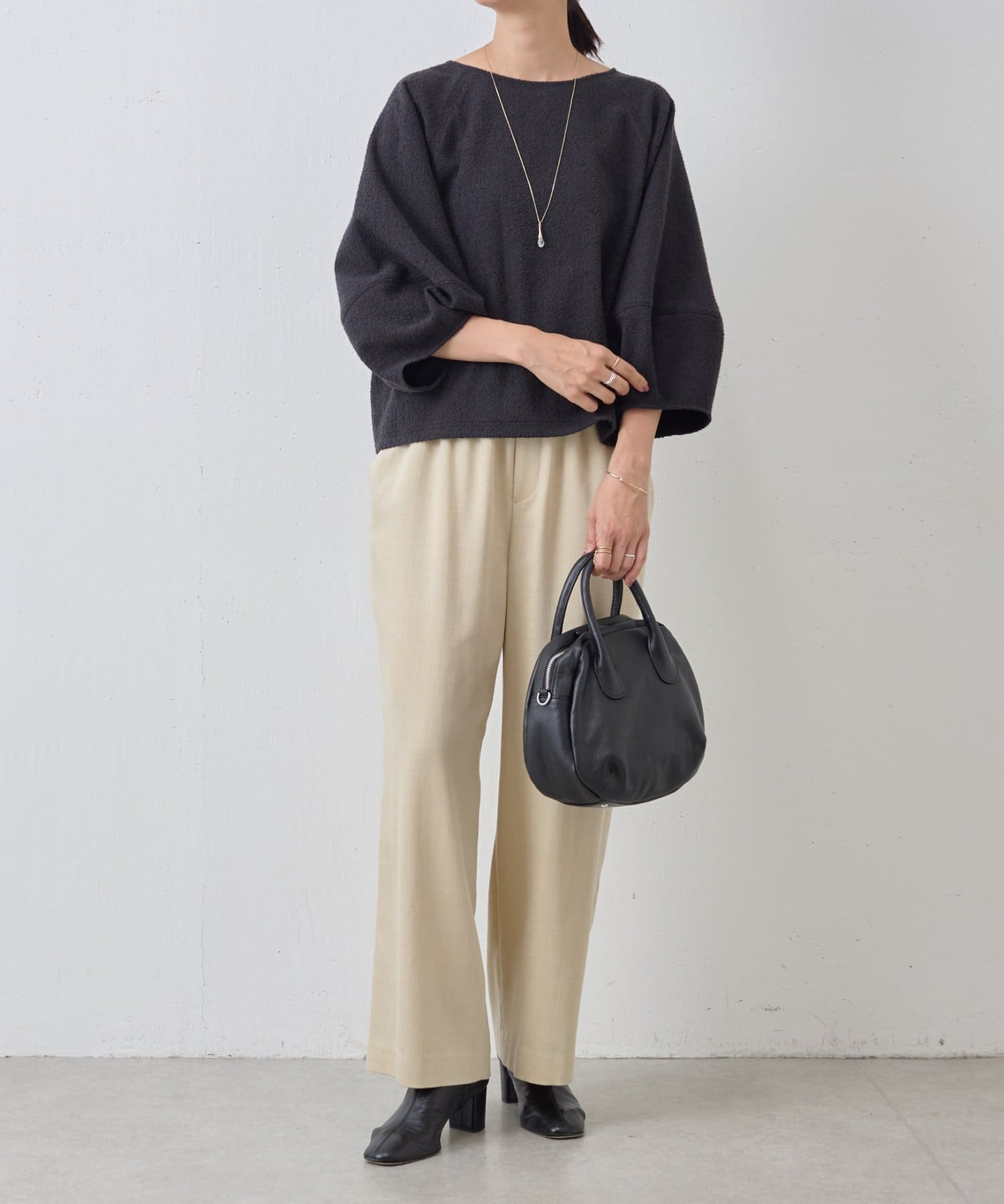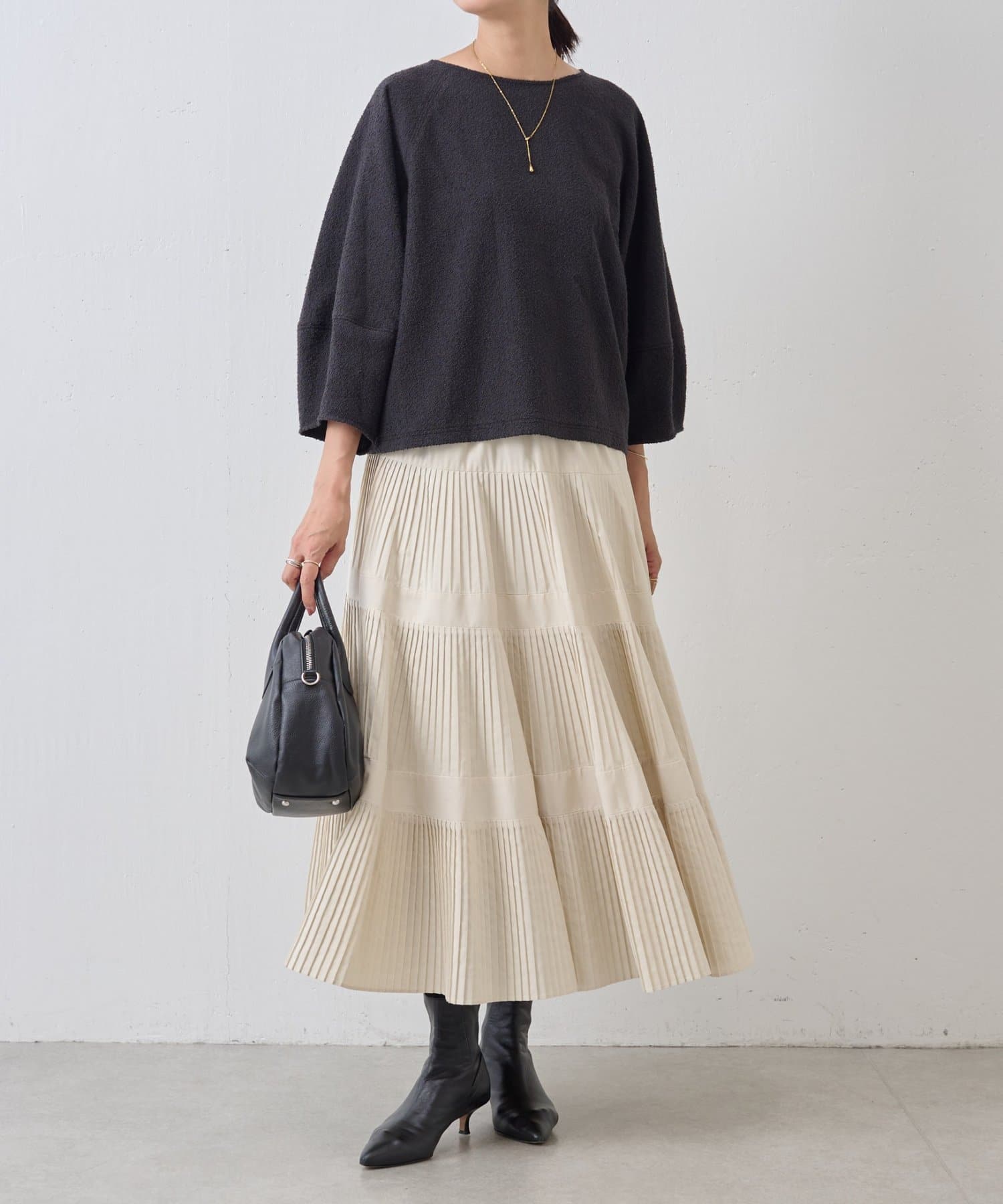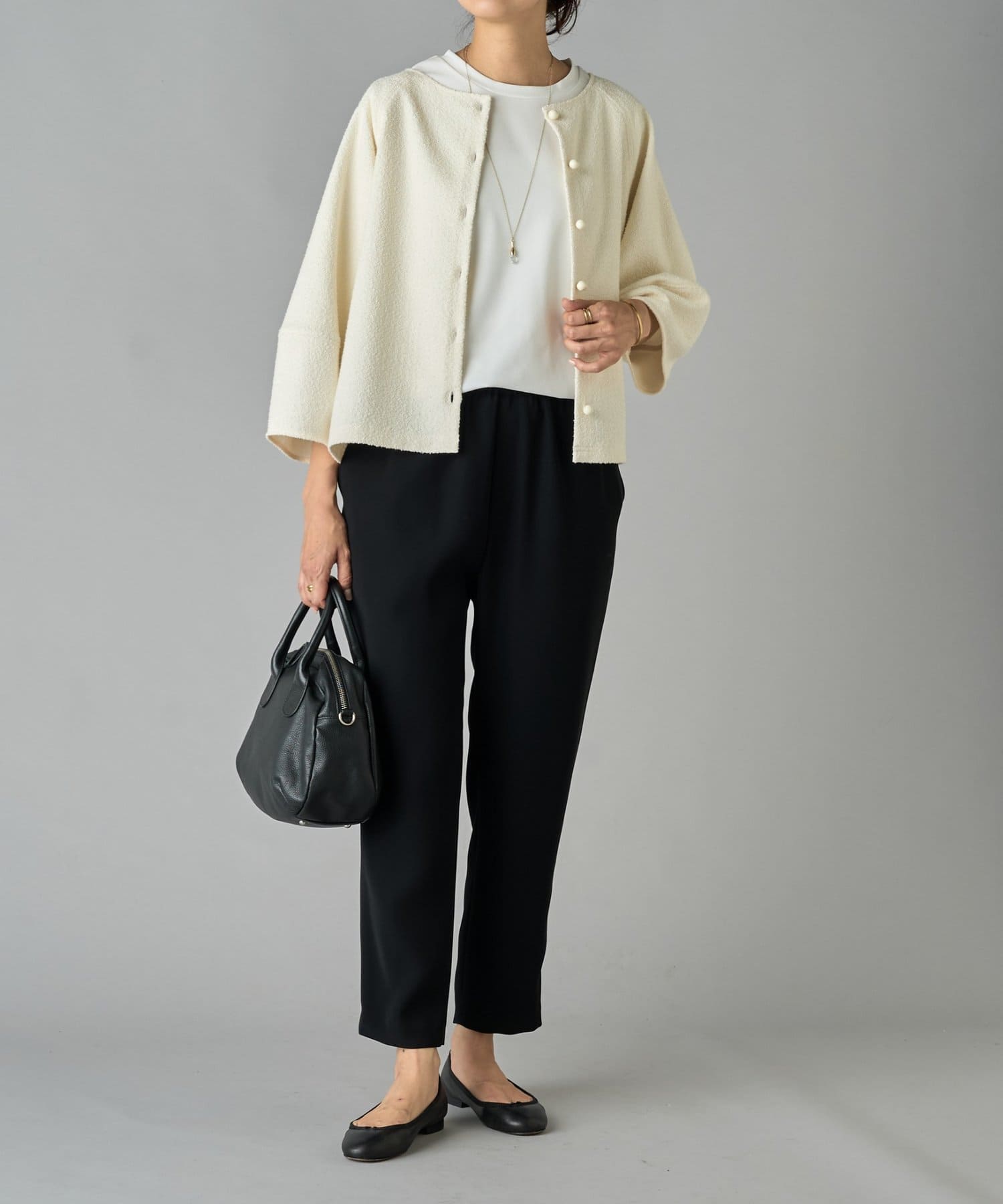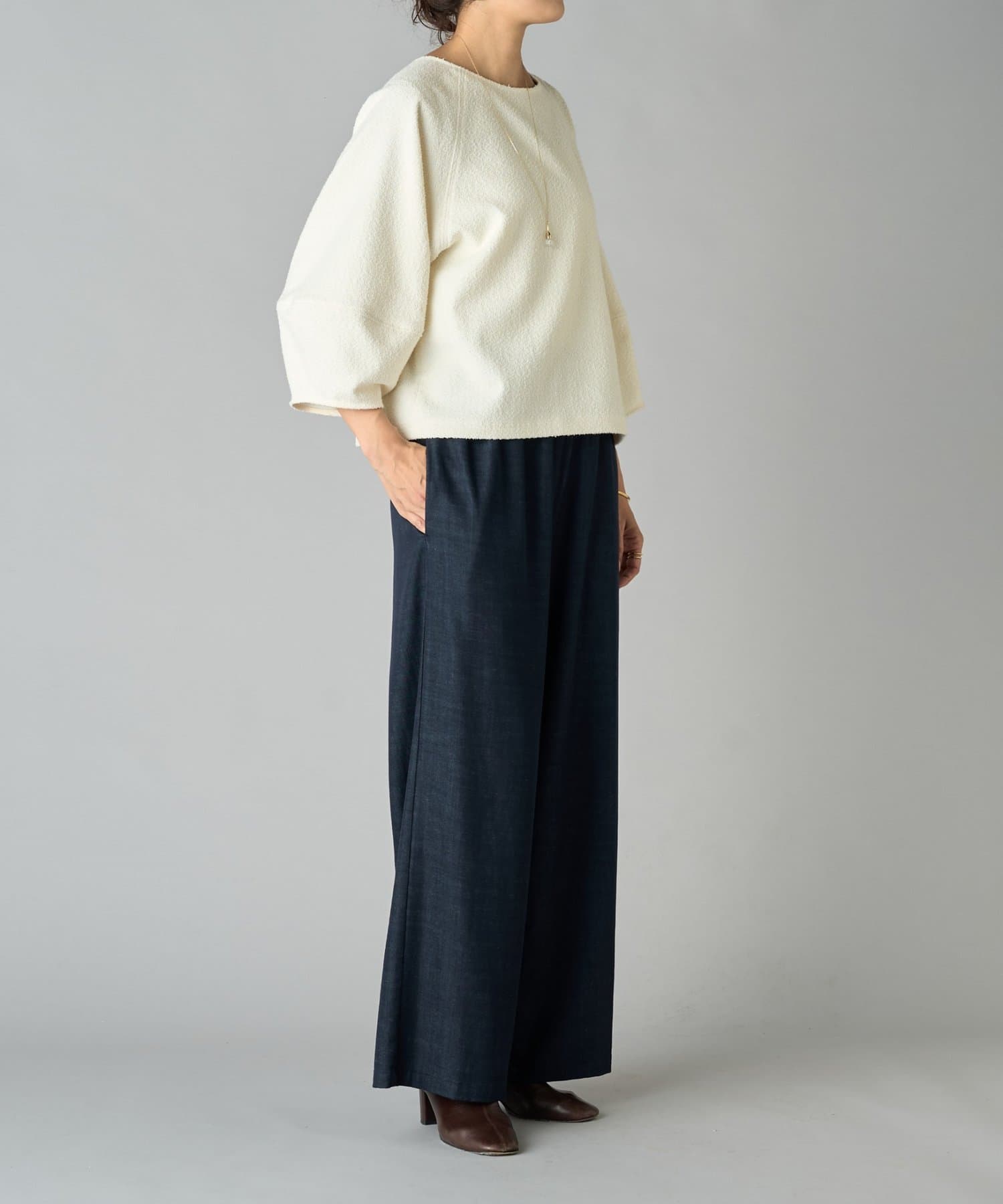 パンツにもスカートにも合わせやすく、オン・オフ問わず着まわせます。