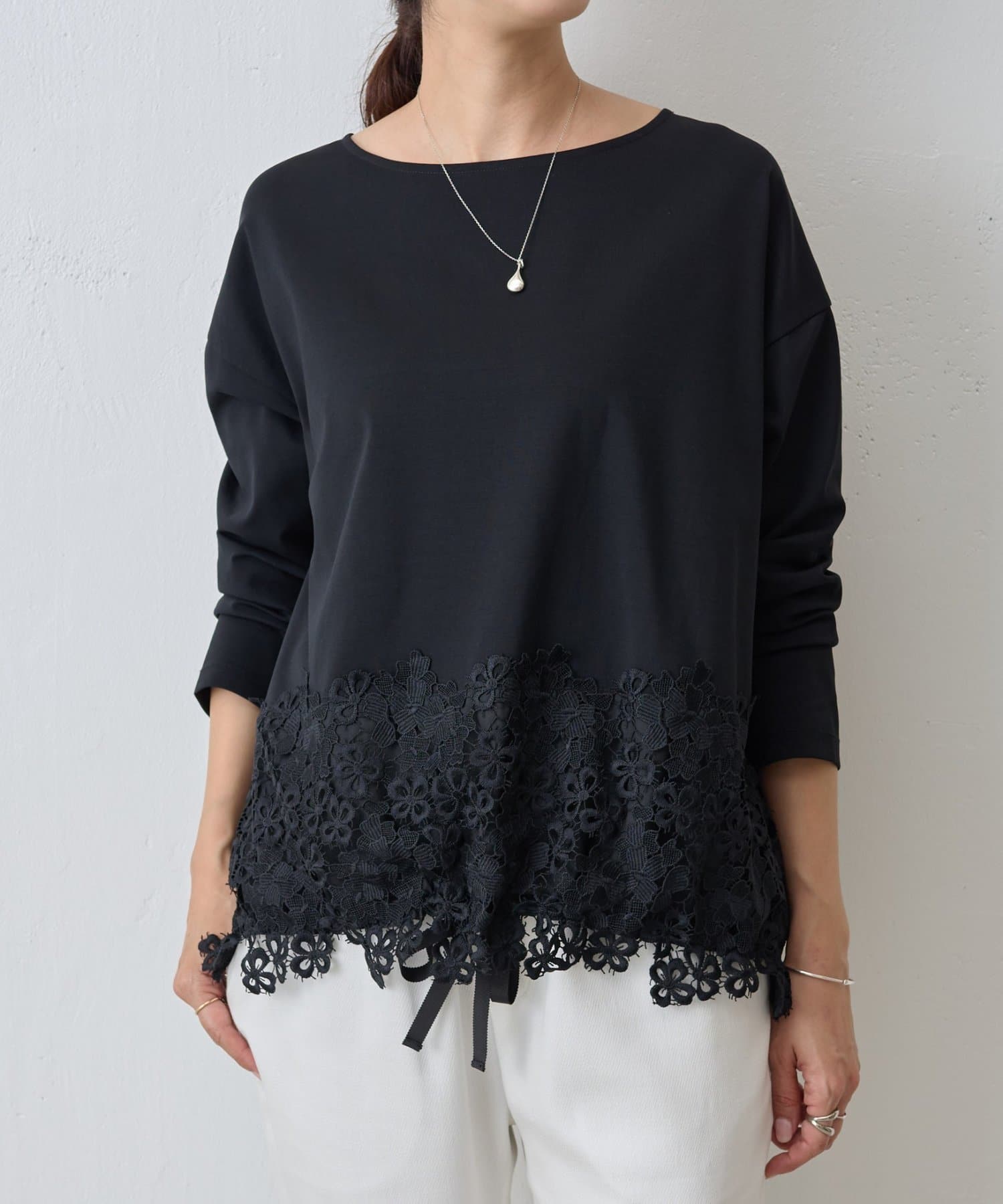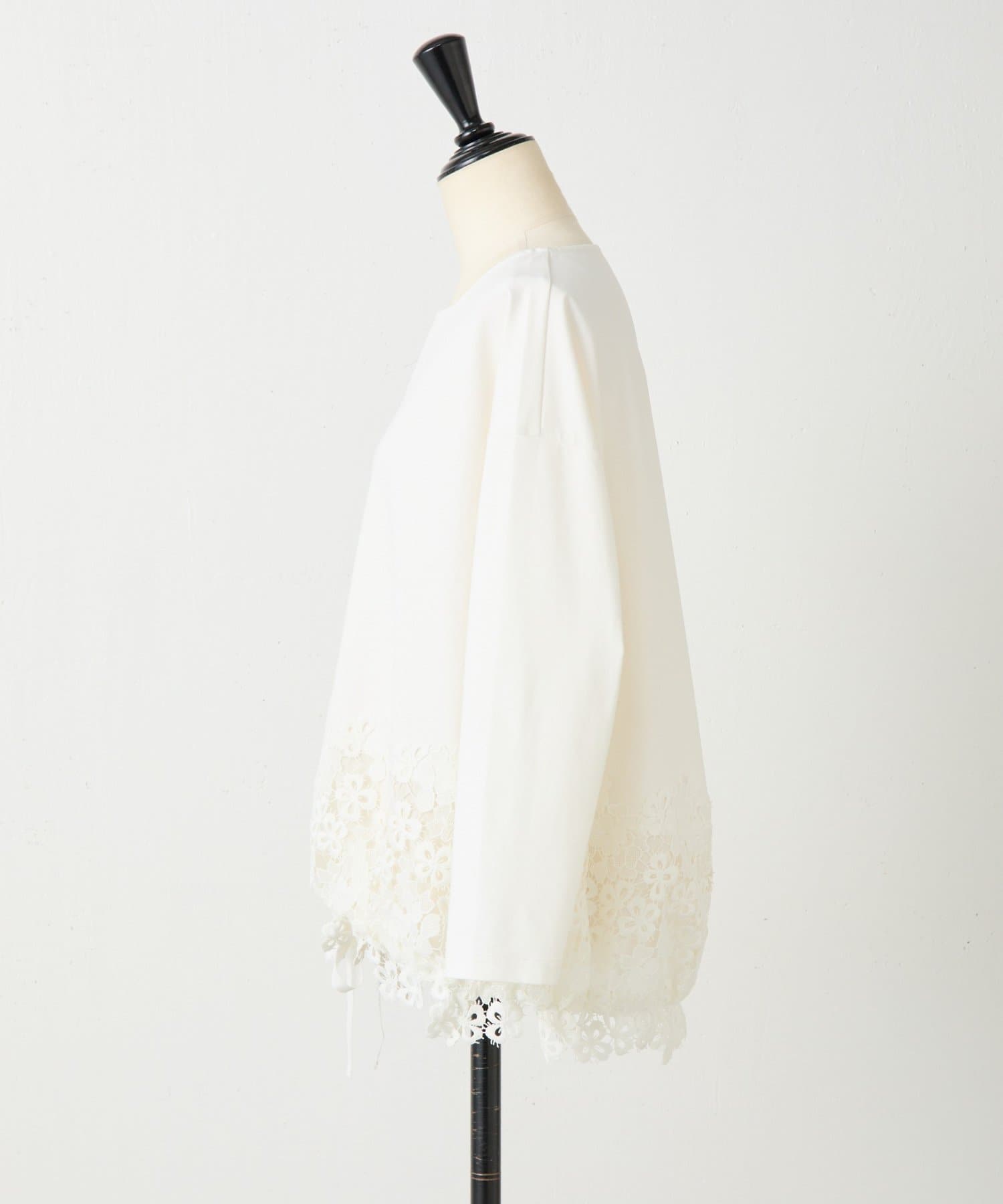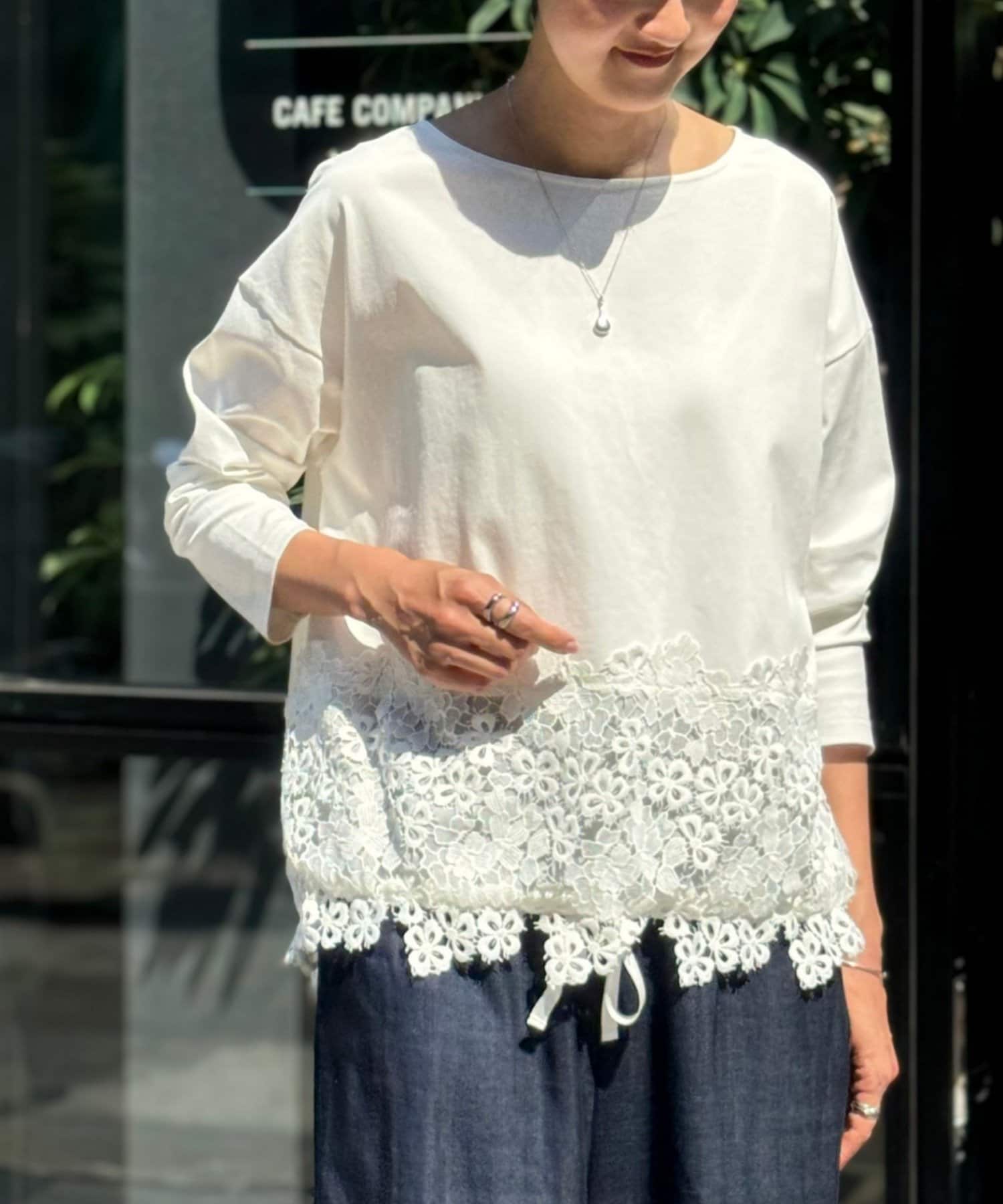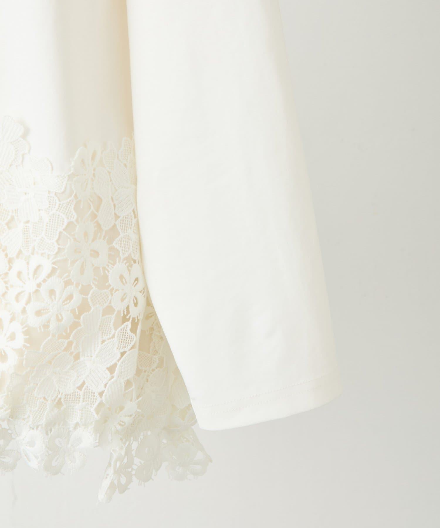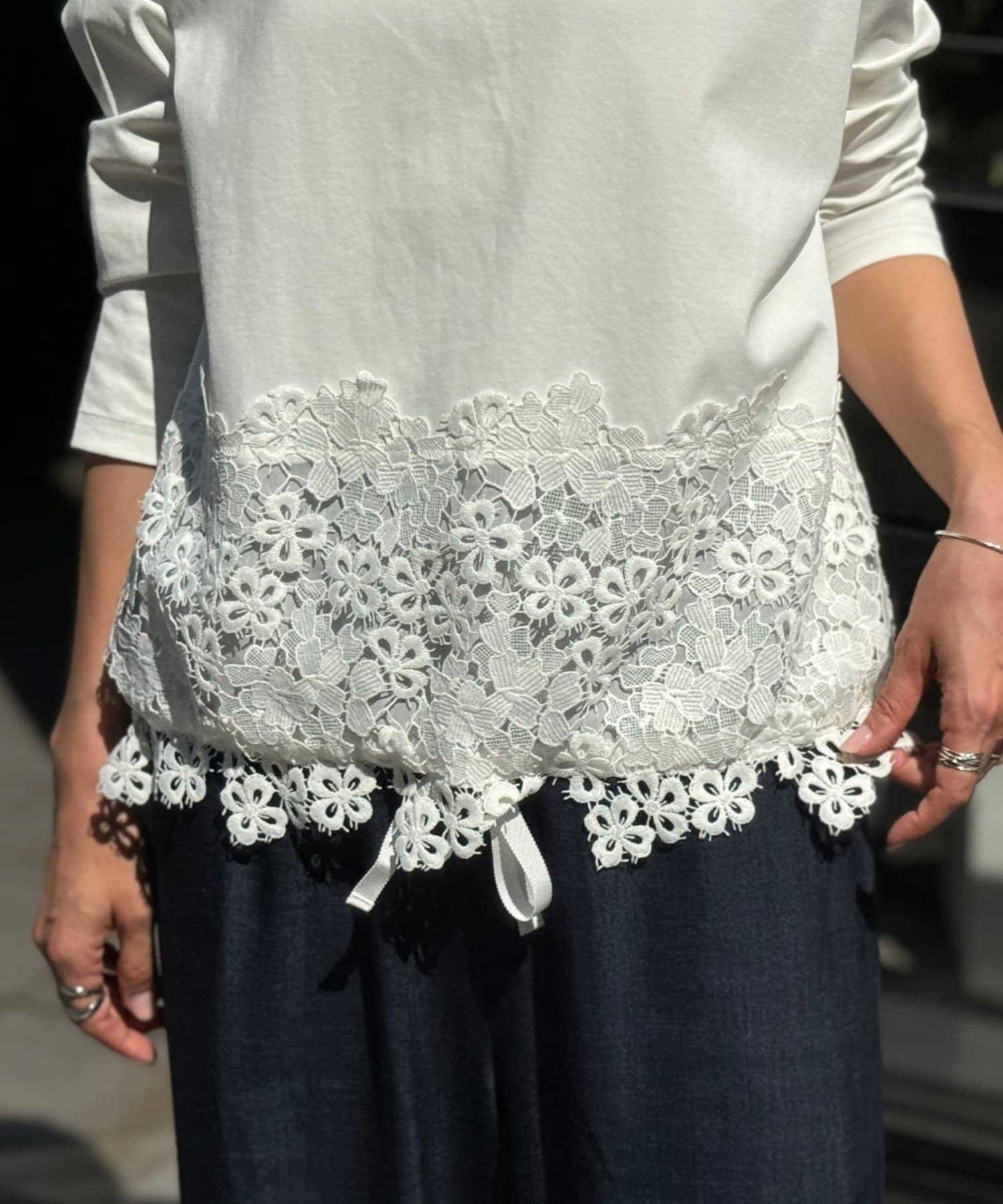 ボディ部分にはカットソー素材を使用し、レースのエレガントさとカジュアルな素材感が絶妙に融合した他にはない一着。