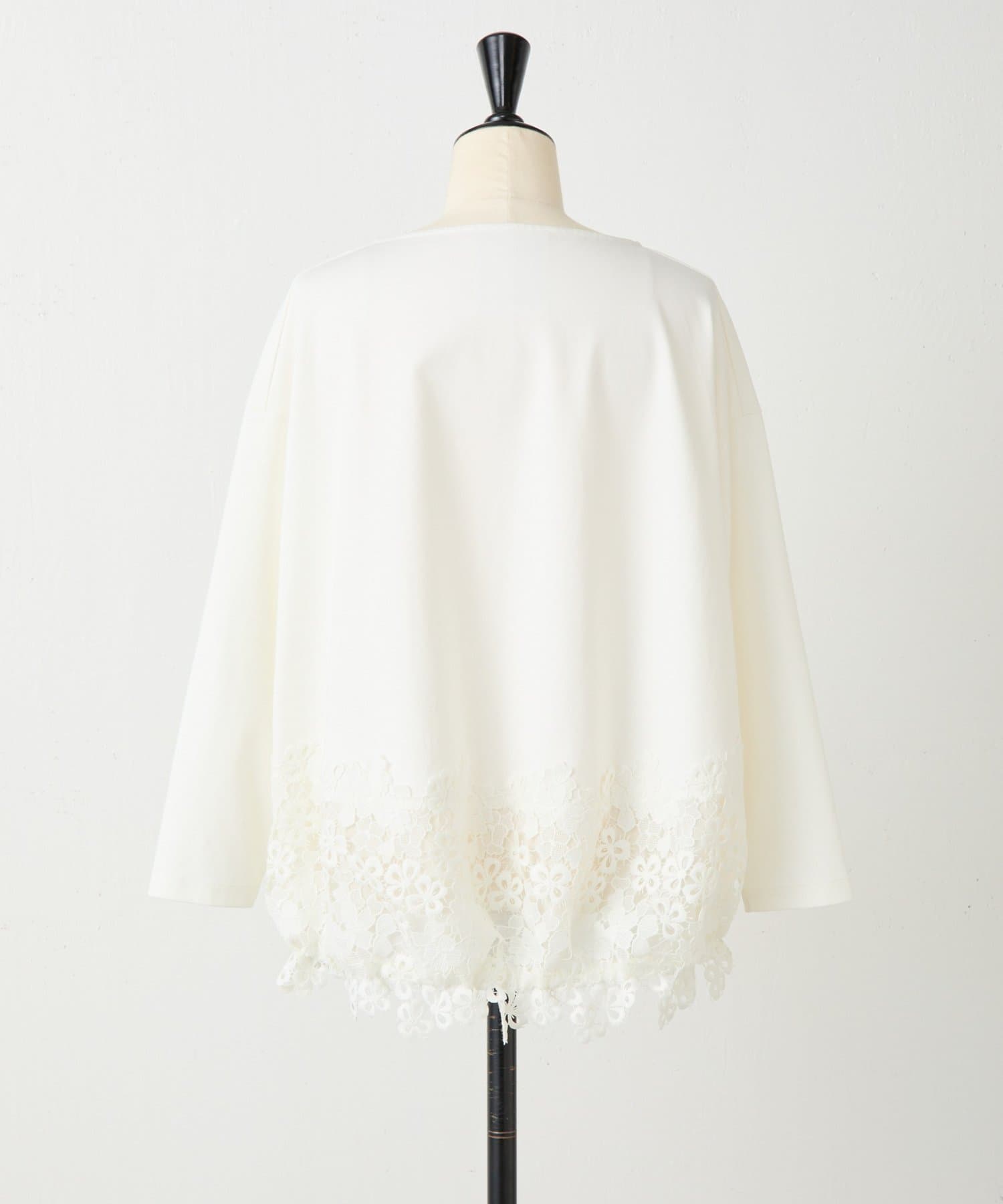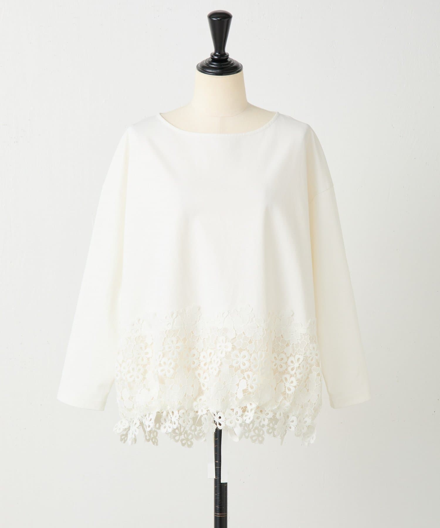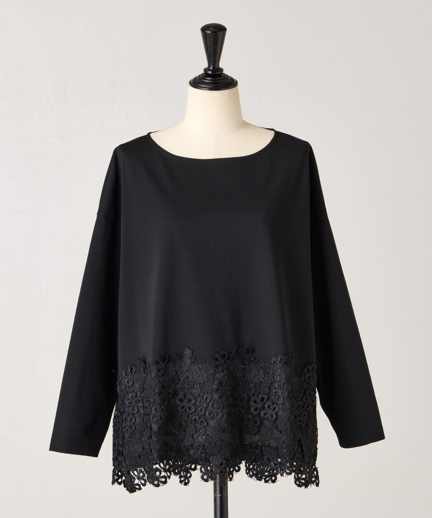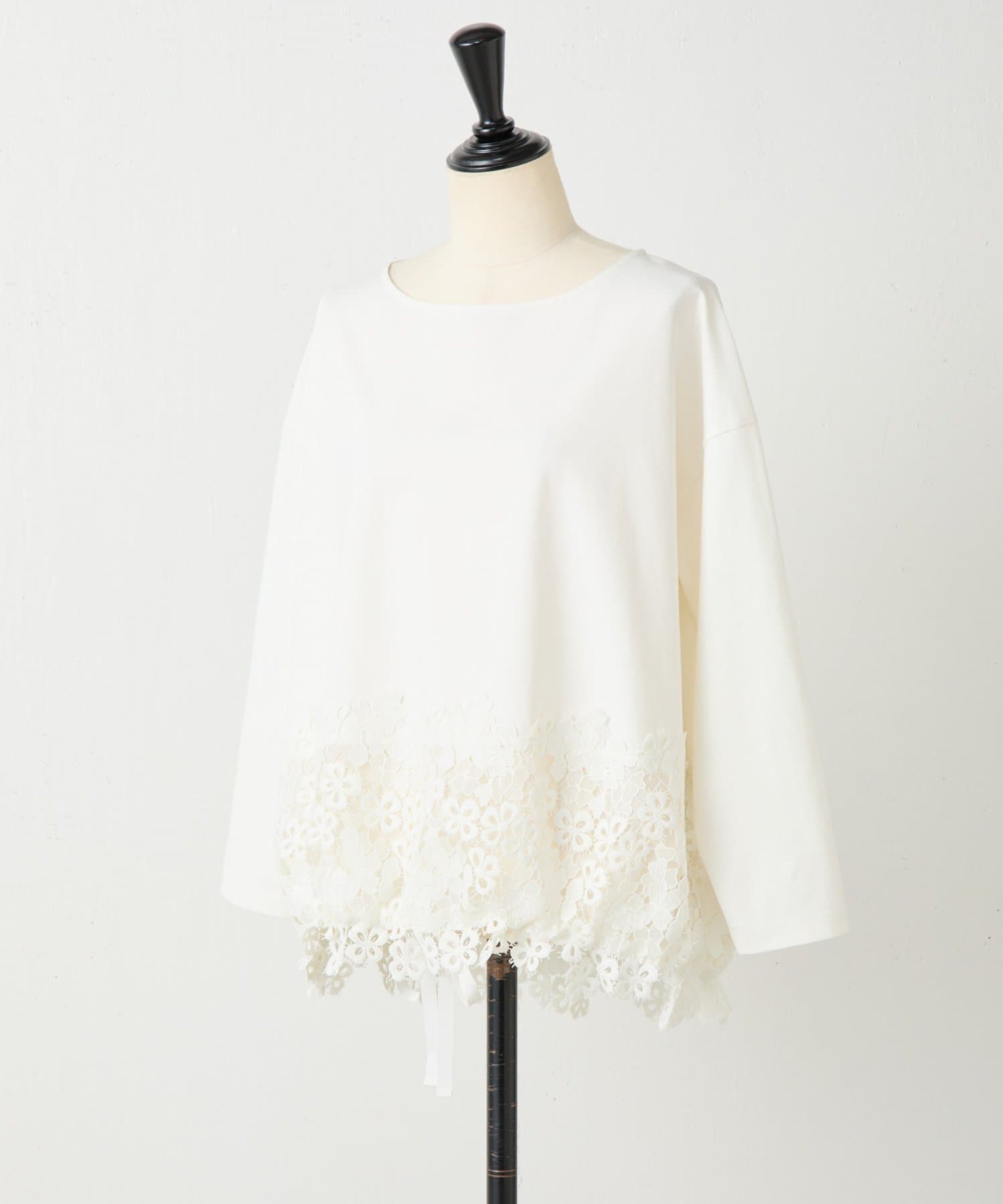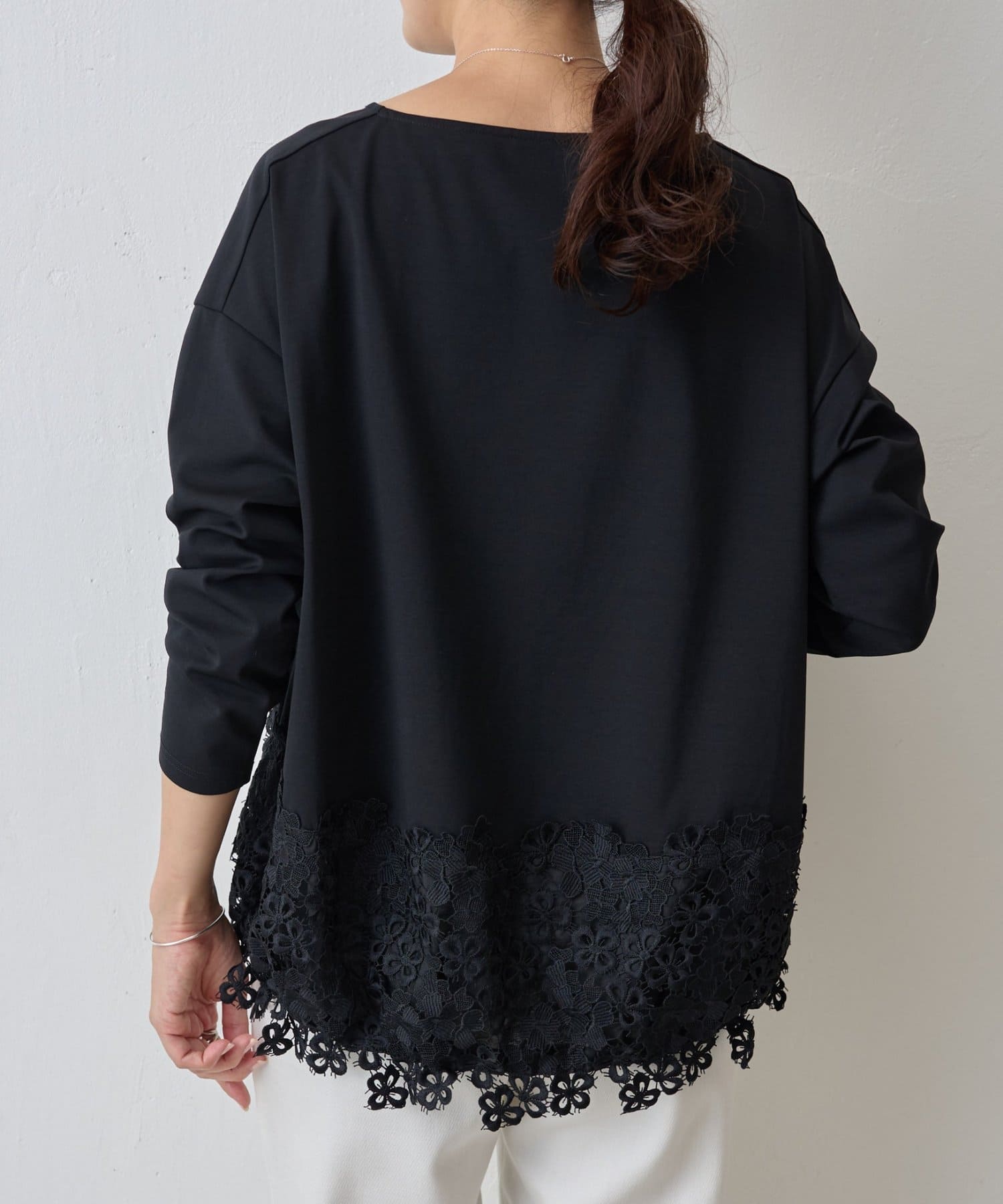 ボディ部分にはカットソー素材を使用し、レースのエレガントさとカジュアルな素材感が絶妙に融合した他にはない一着。