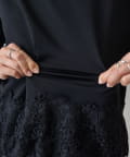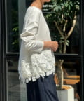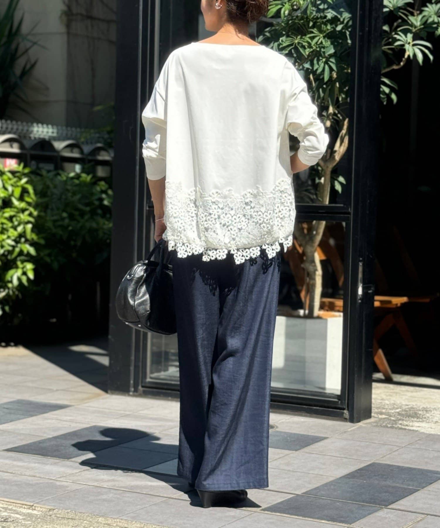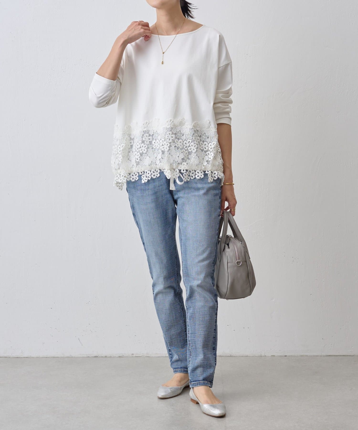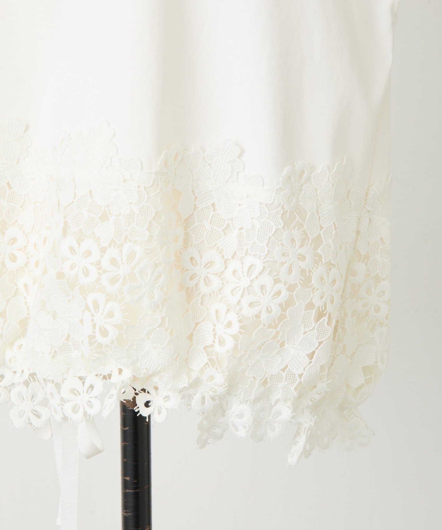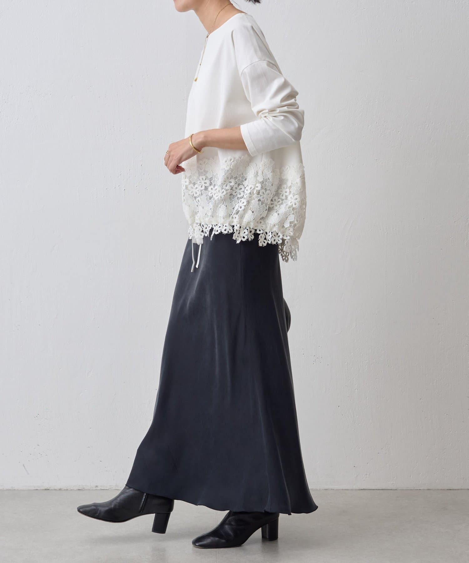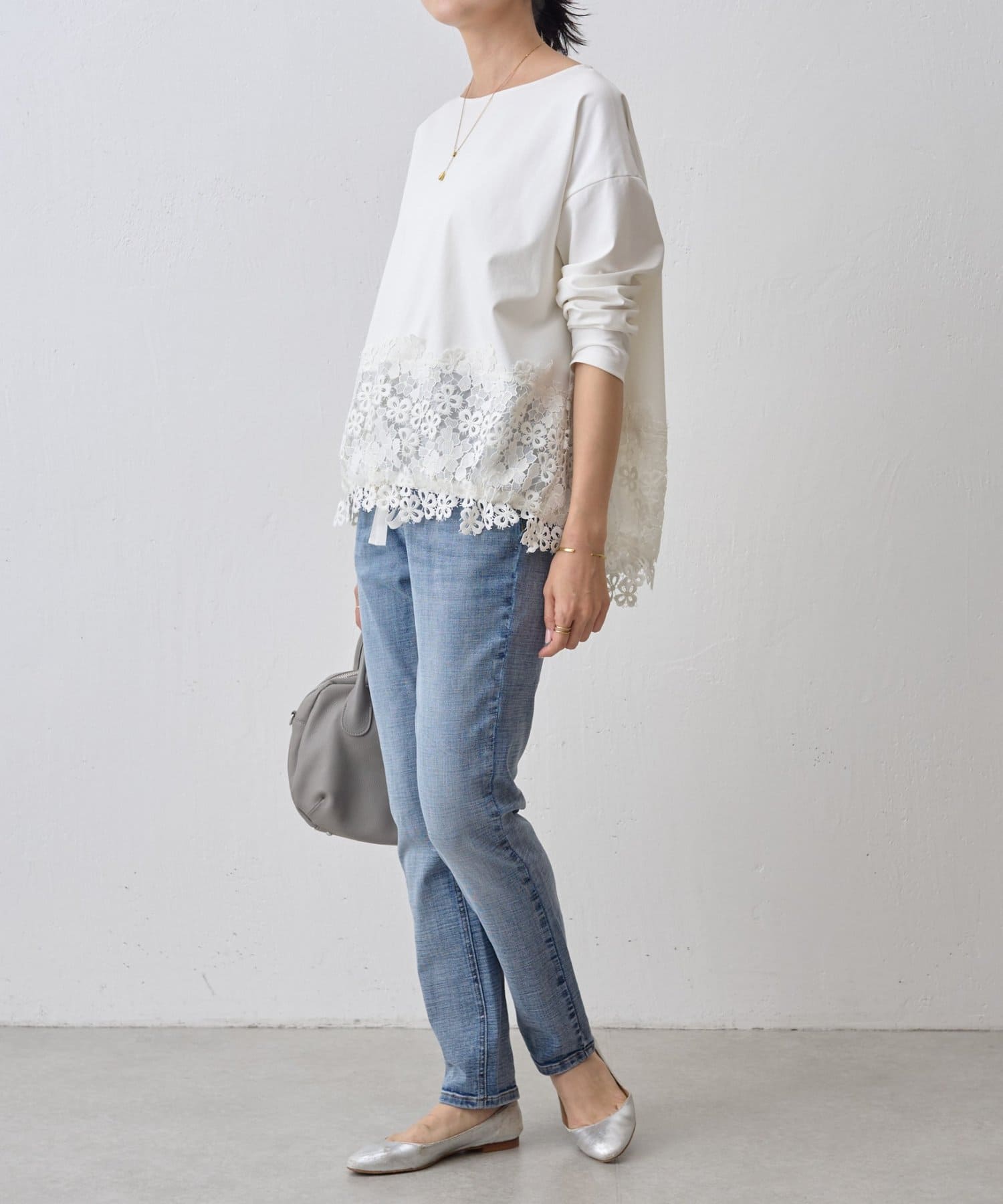 ボディ部分にはカットソー素材を使用し、レースのエレガントさとカジュアルな素材感が絶妙に融合した他にはない一着。