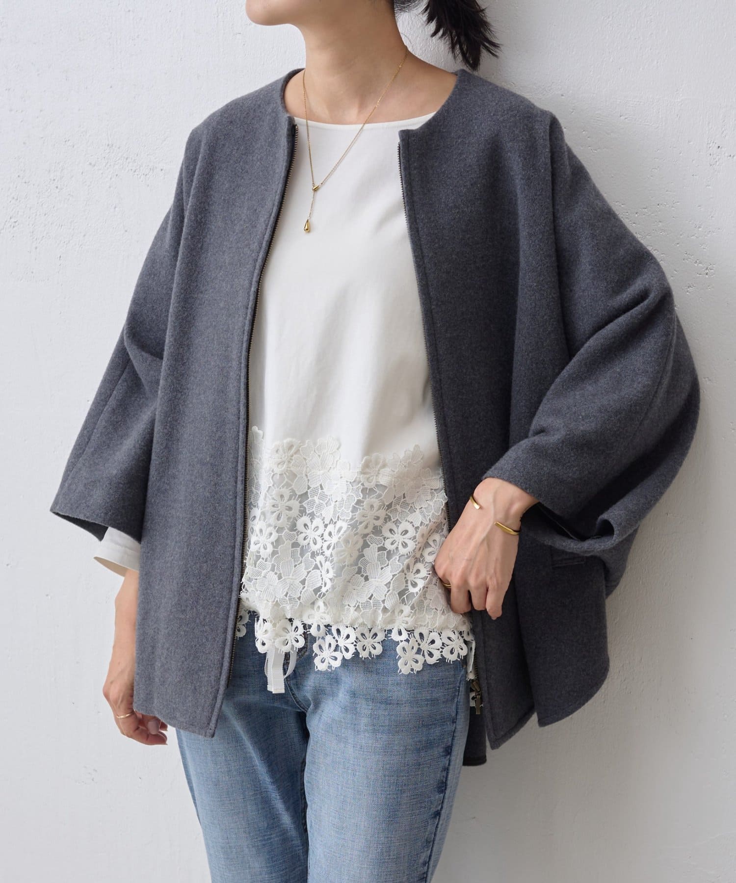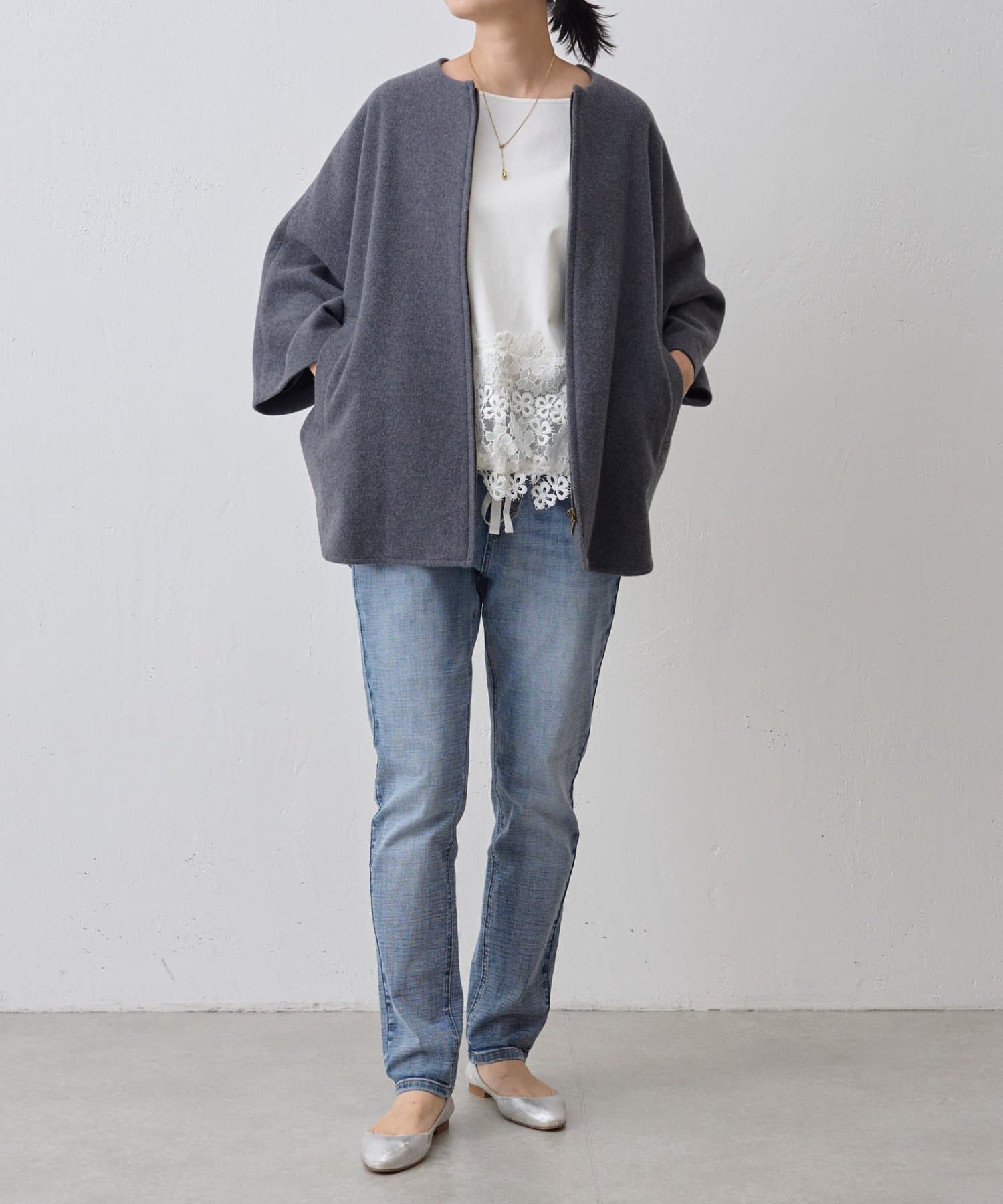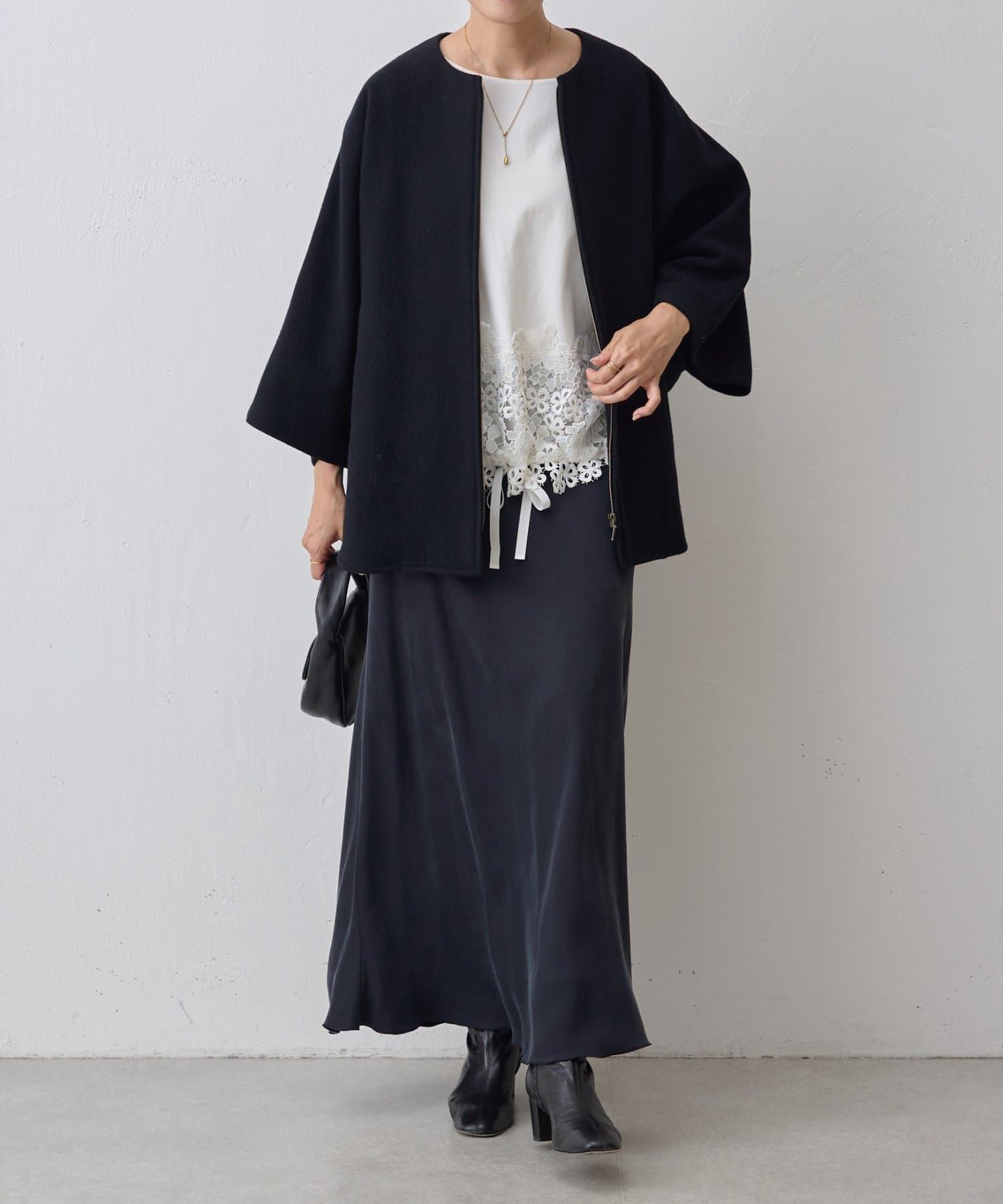 • アウターを重ねてもコーディネートを華やかに見せてくれます。