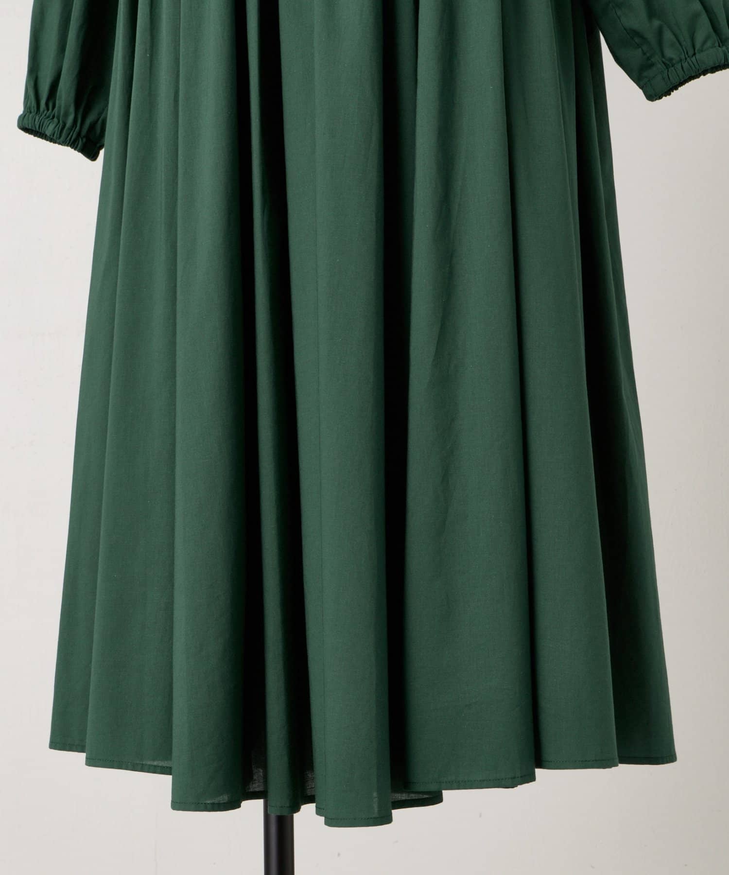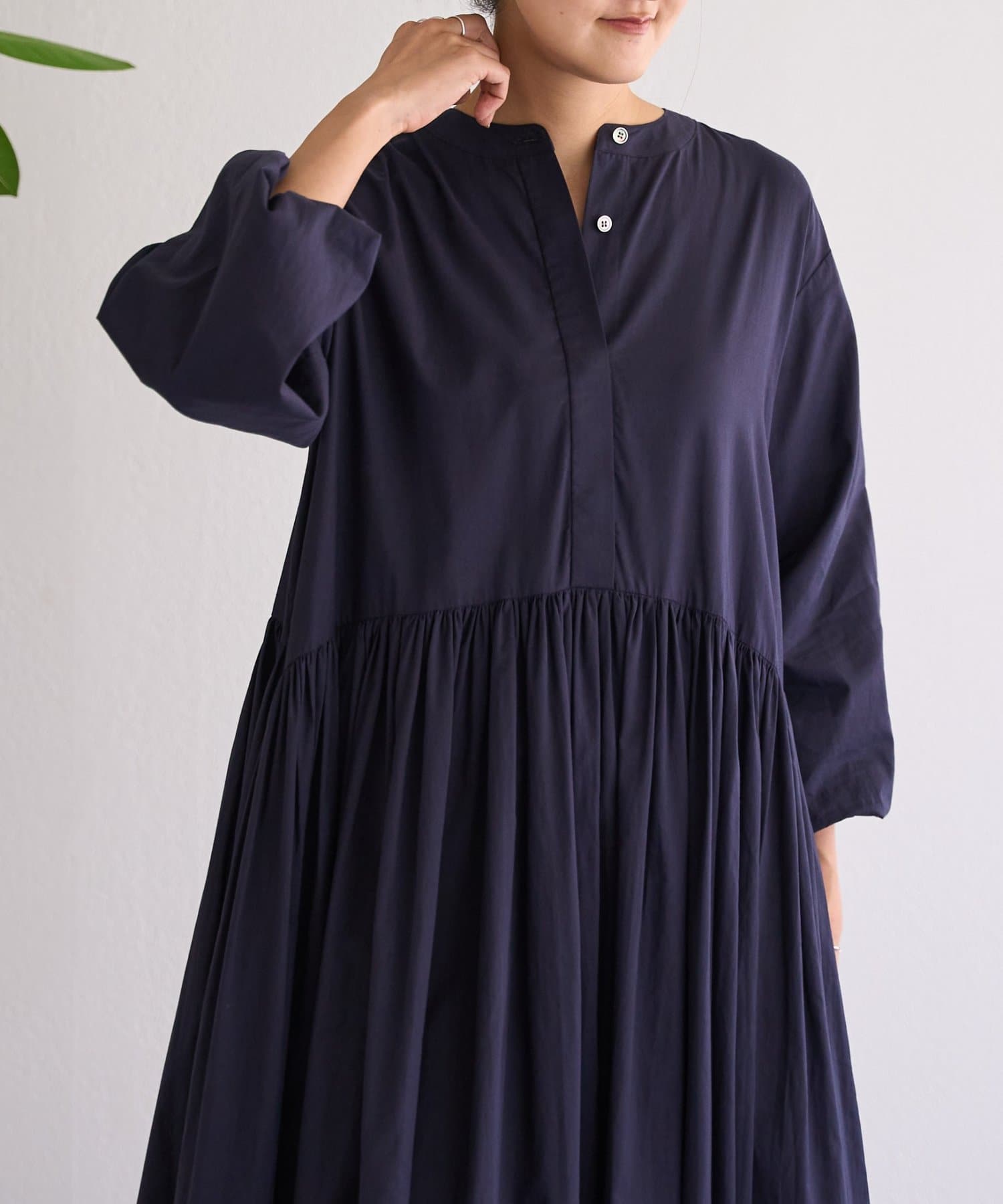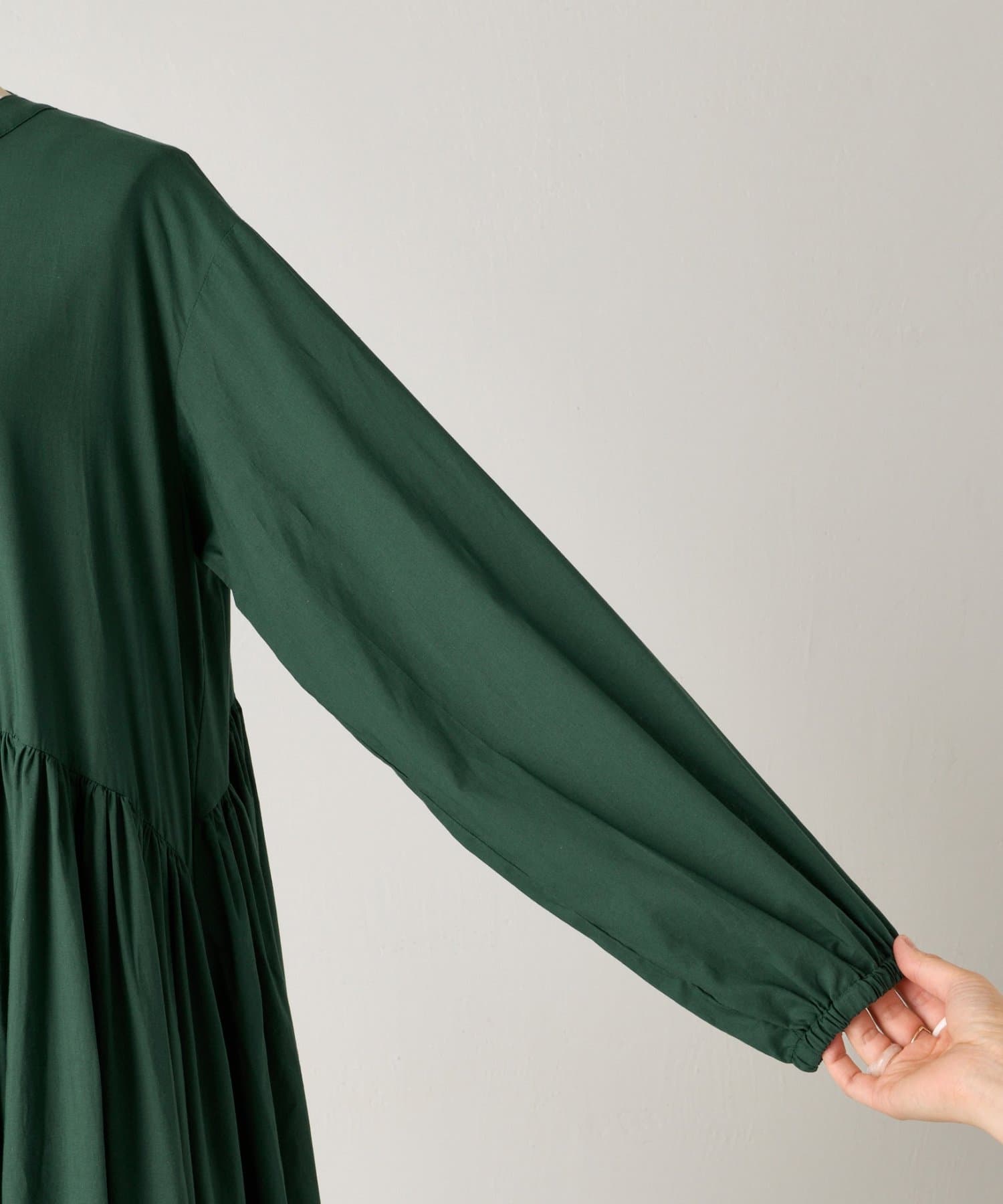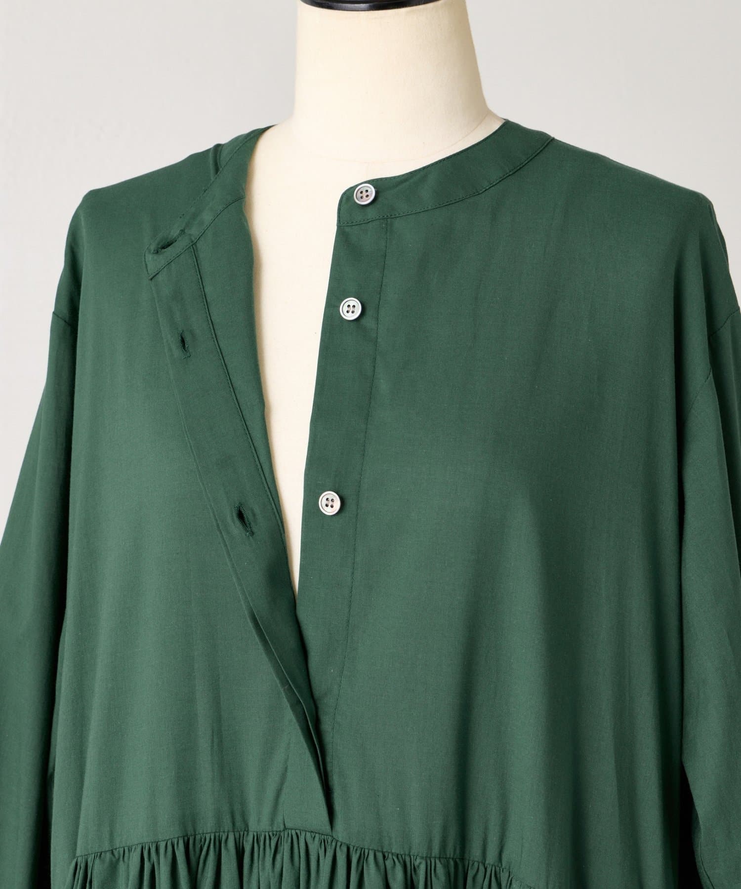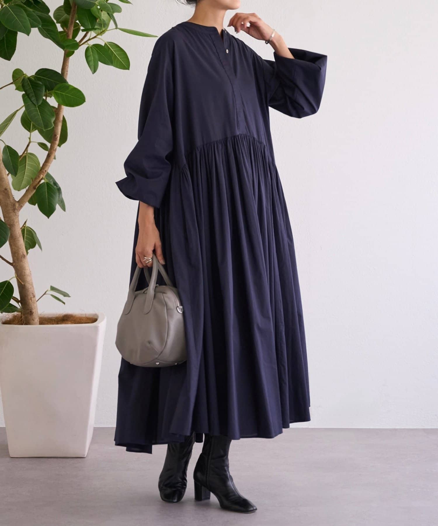 ・こちらの商品は、裾にたっぷりと生地を用いた分量感がデザインポイントになります。多量の生地を使用しており、重力と相まって他の製品・デザインより伸びやすい傾向にある為、着丈等サイズは2%前後を許容範囲とさせて頂きます。