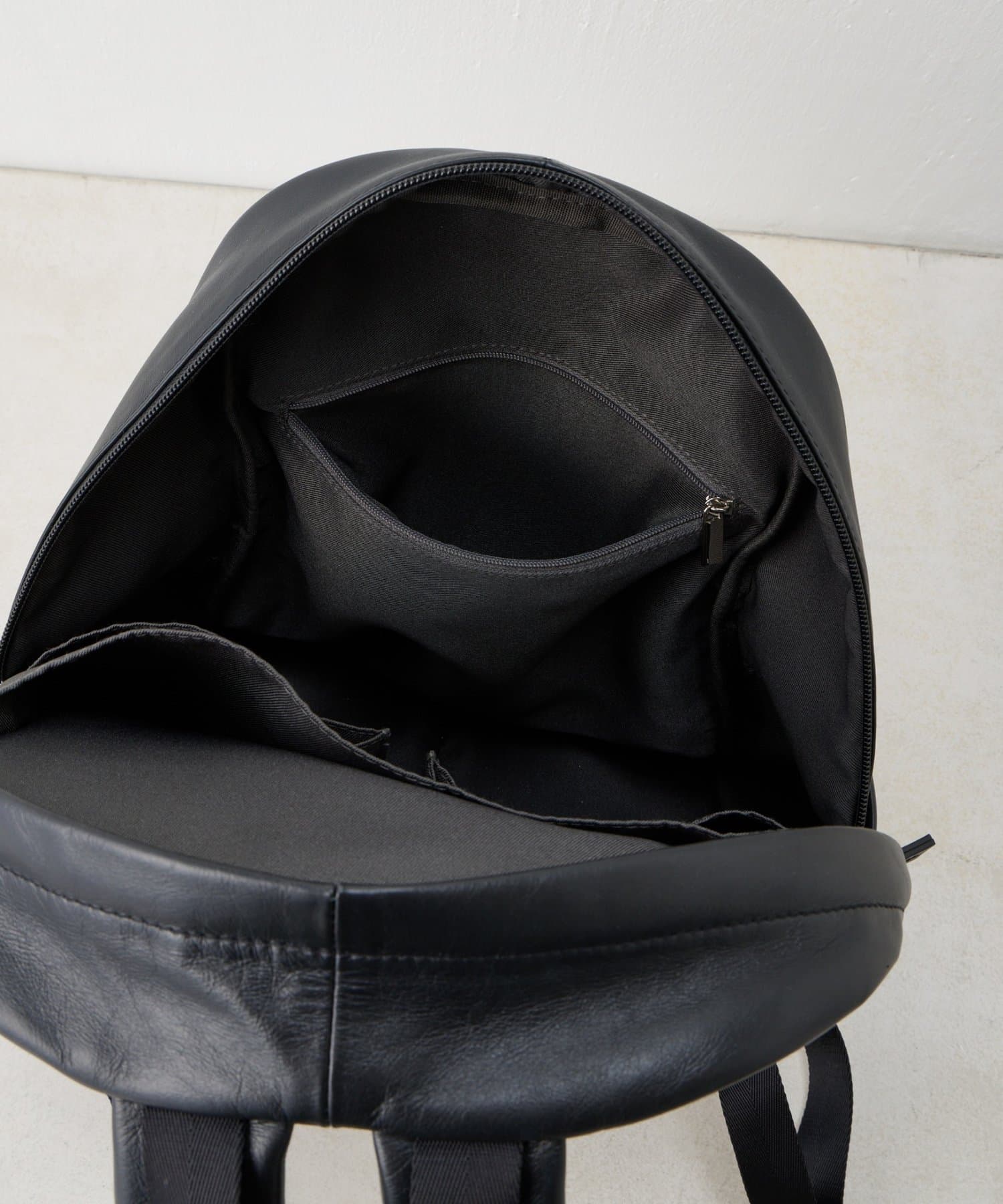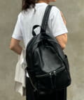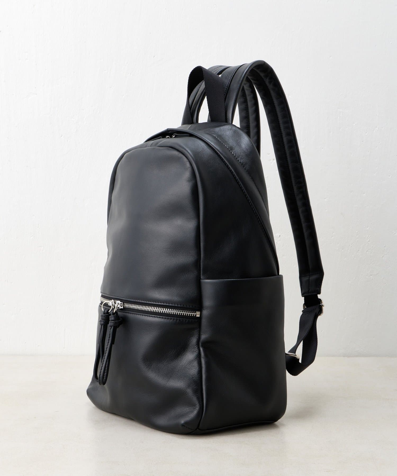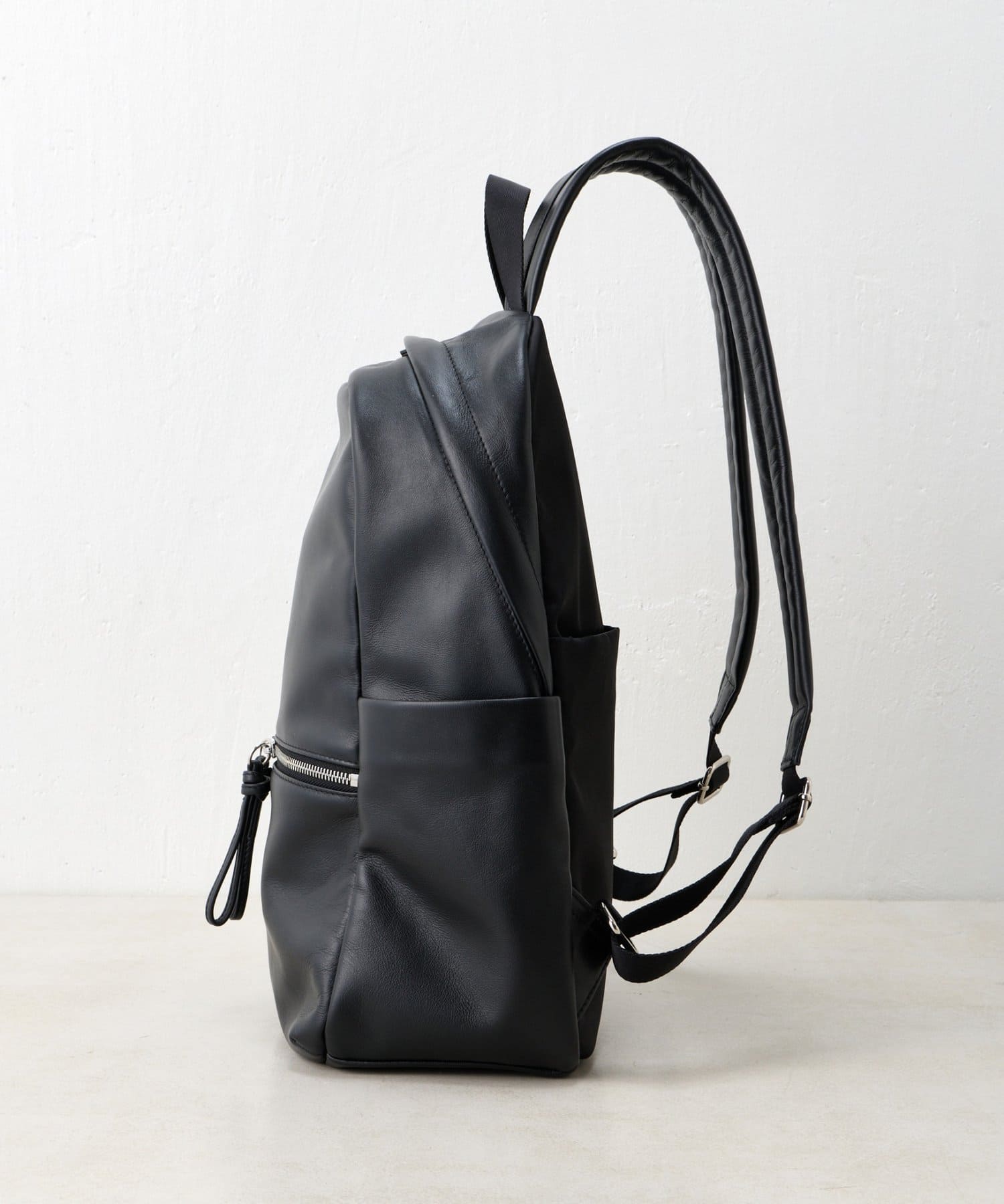 洗練されたミニマルデザインで、きれいめカジュアルからナチュラルスタイルまで、さまざまなコーデにマッチするレザーリュック。