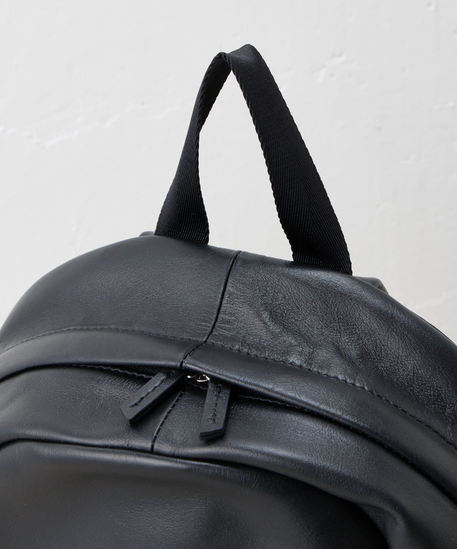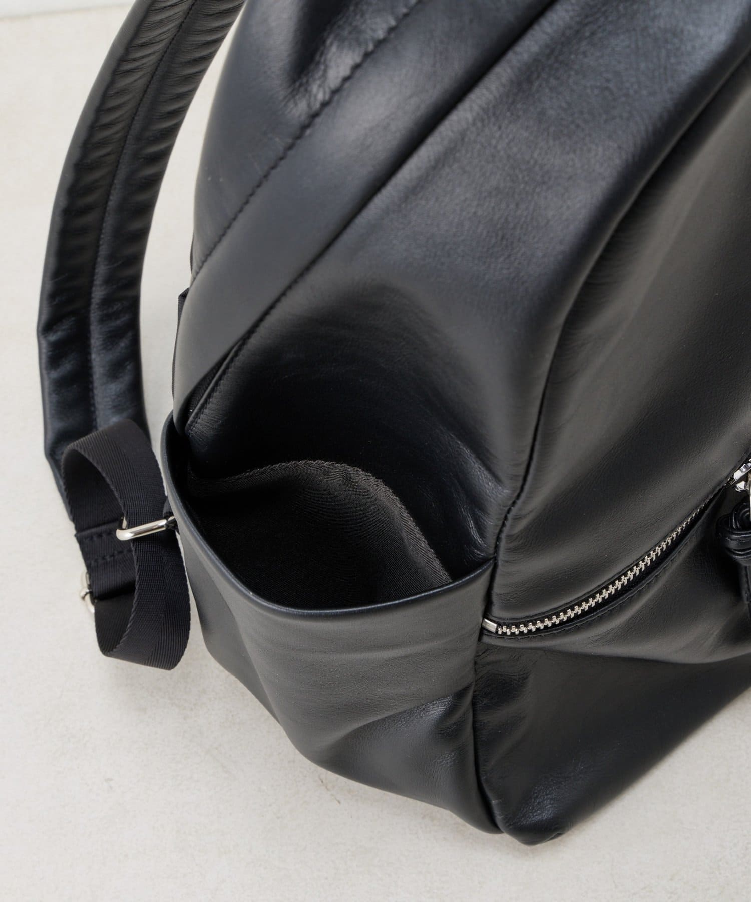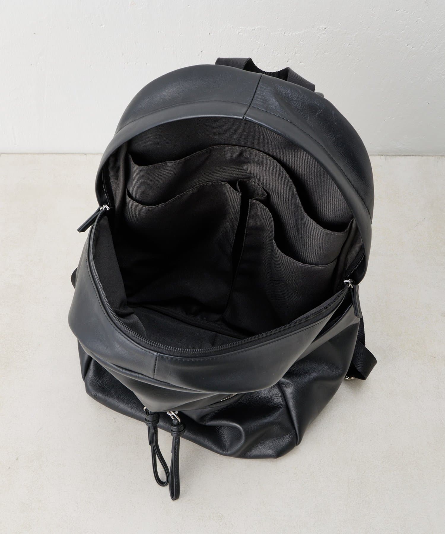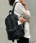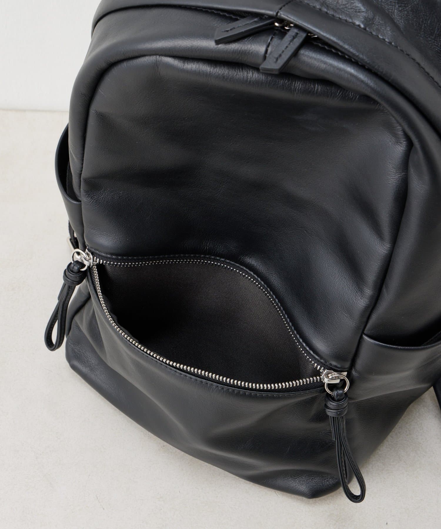 洗練されたミニマルデザインで、きれいめカジュアルからナチュラルスタイルまで、さまざまなコーデにマッチするレザーリュック。