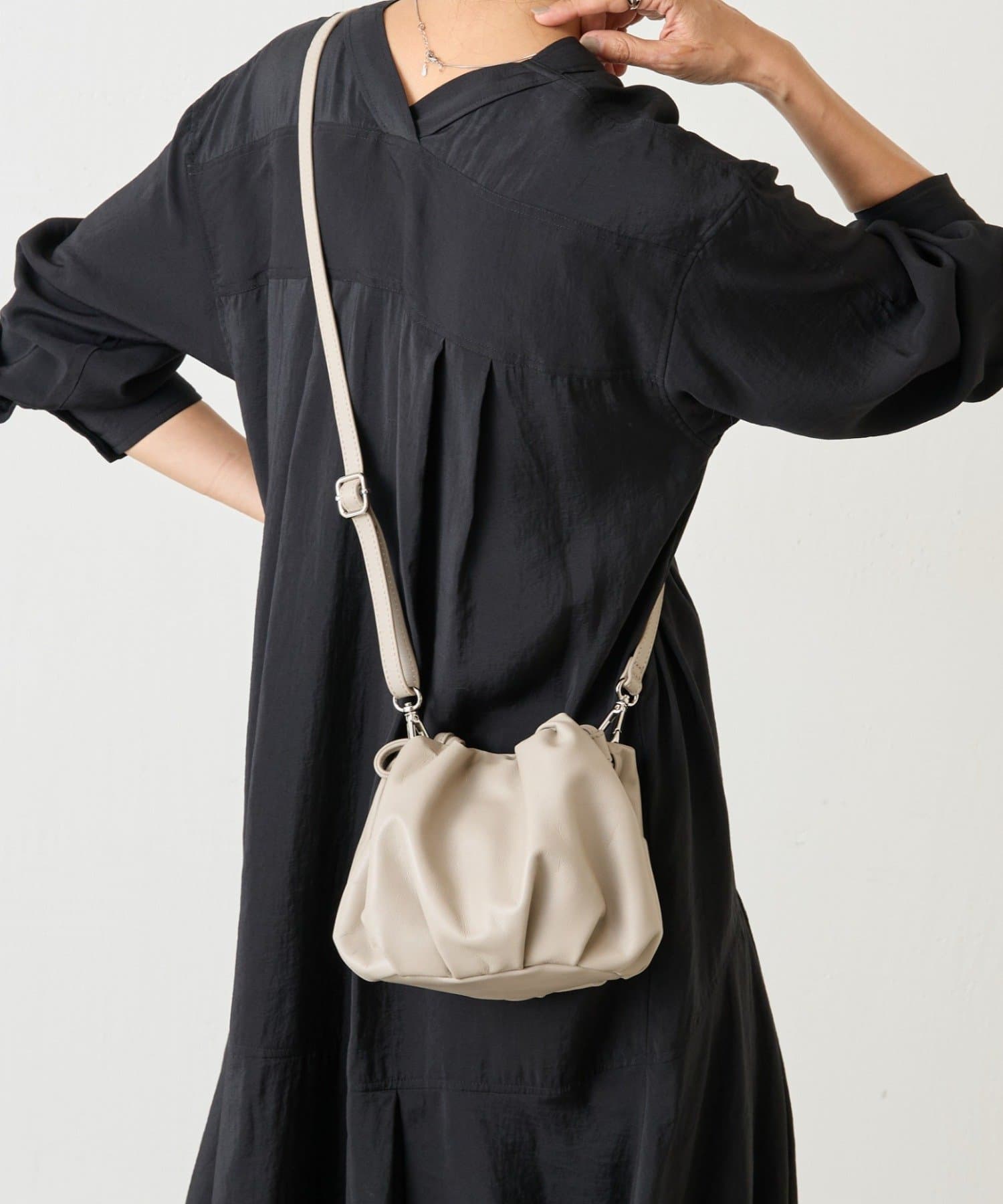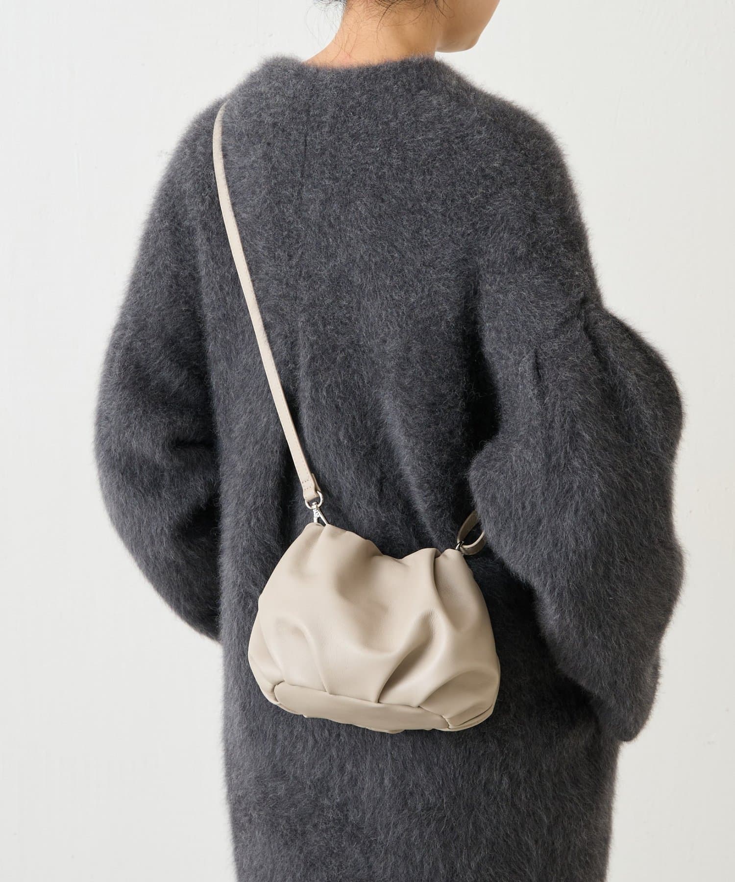 上質な本革を贅沢に使用した、ギャザーショルダーバッグ。