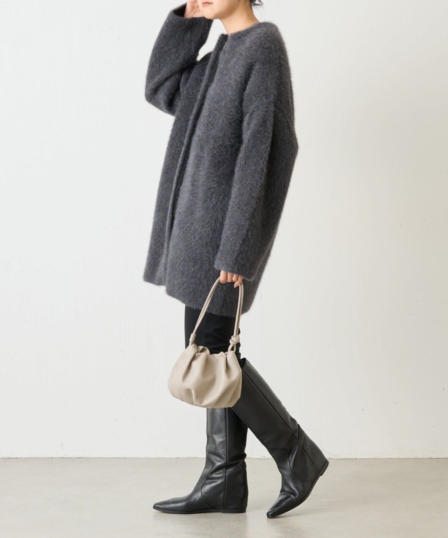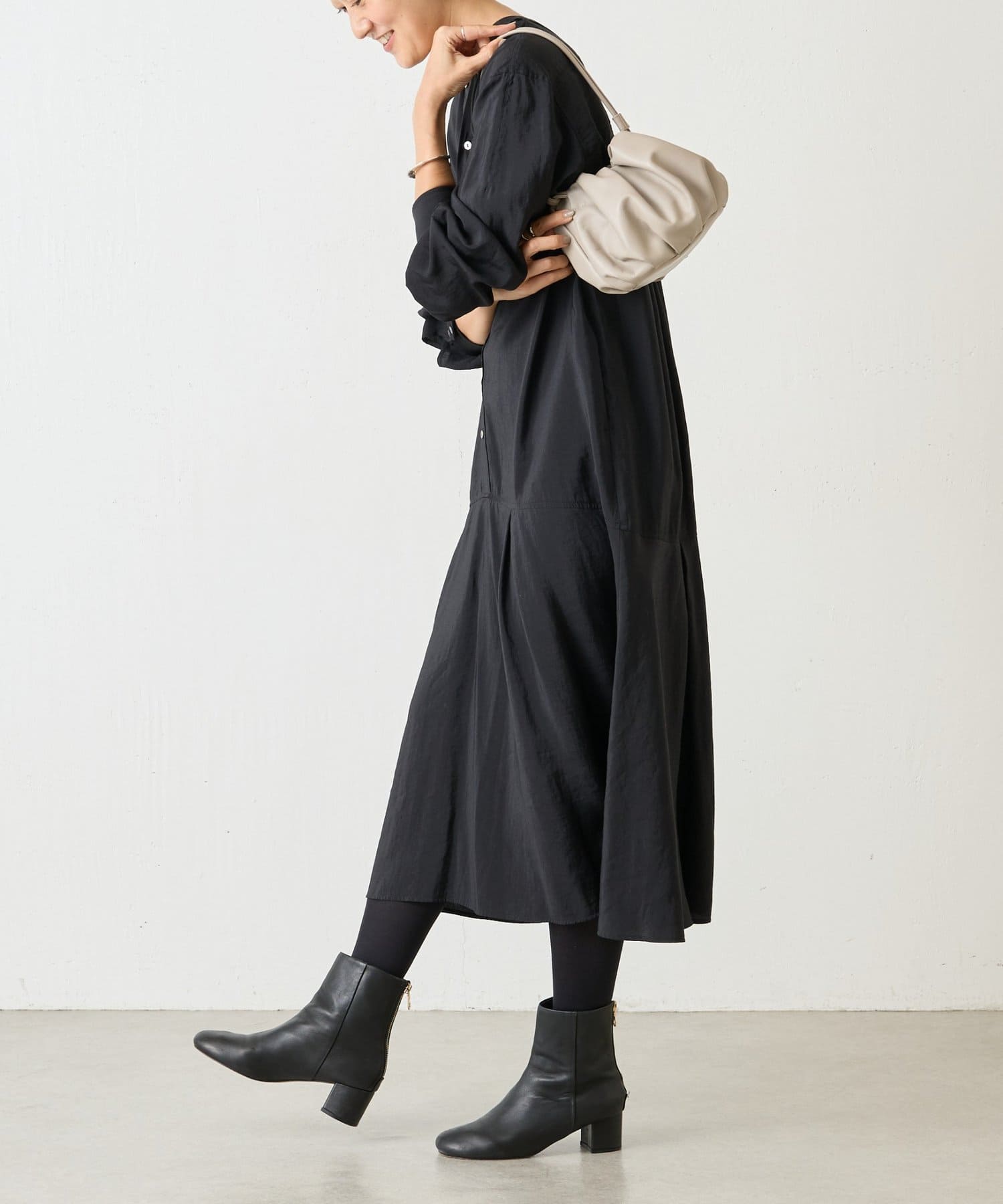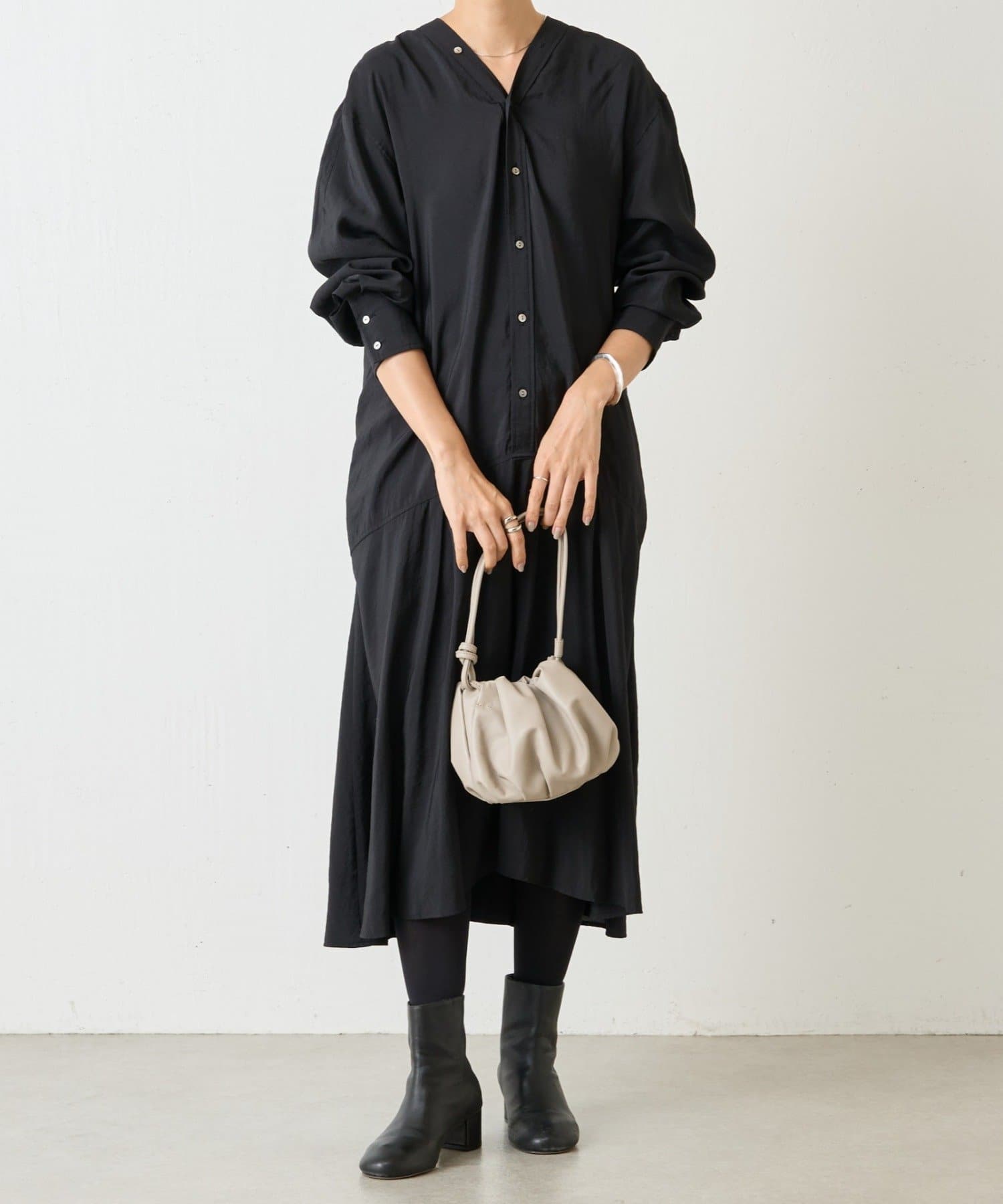 やわらかな革の質感と自然なドレープが、洗練された女性らしさを演出します。