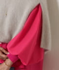 袖口は伸縮性のあるリブニット仕様になっており、袖口をあげると袖全体のふわっと感をよりお楽しみ頂けます。