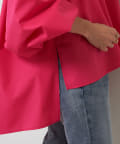 ハリのあるシャツはきちんと感があり、オフィスシーンや華やかな席にもおすすめの1枚。