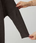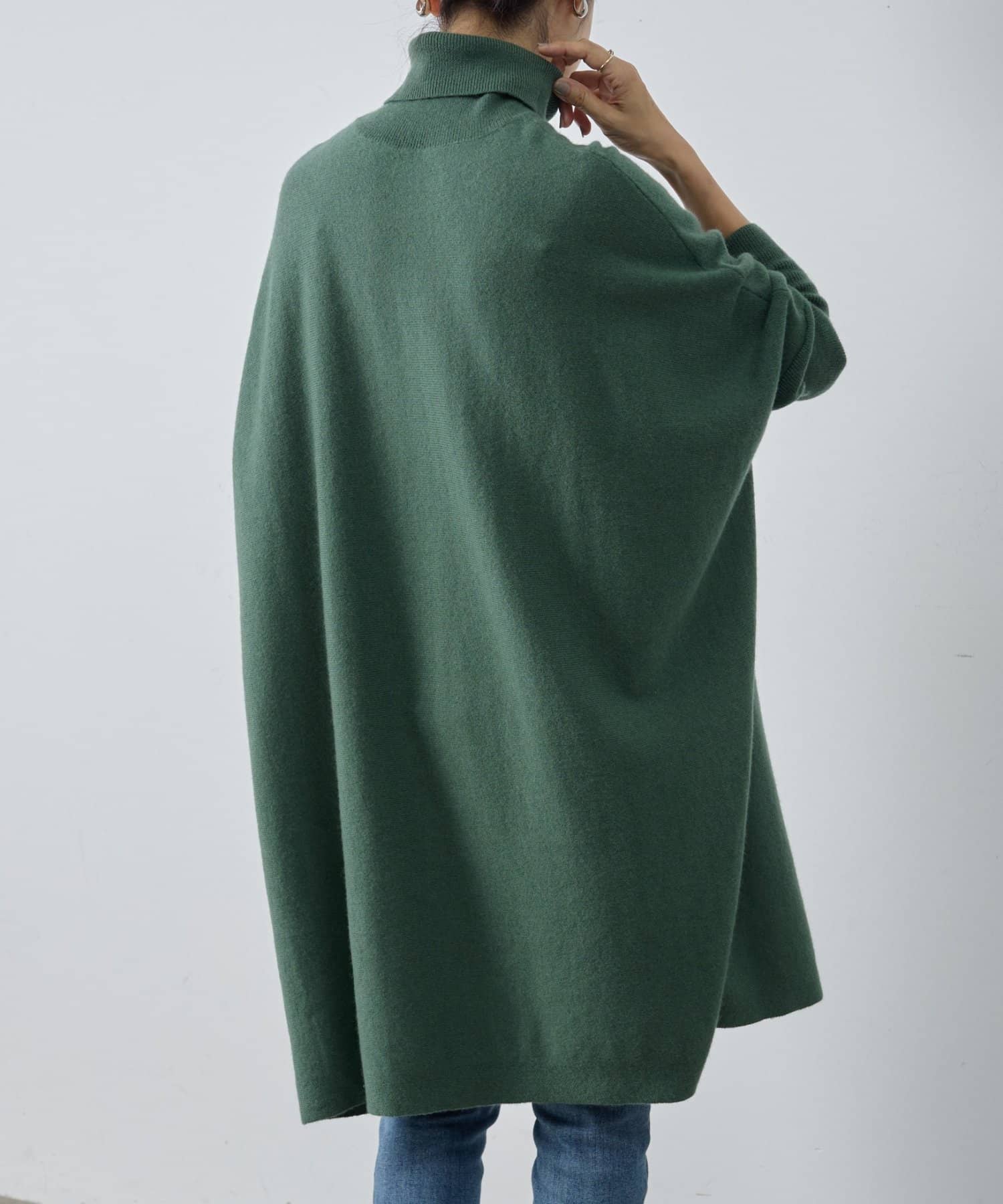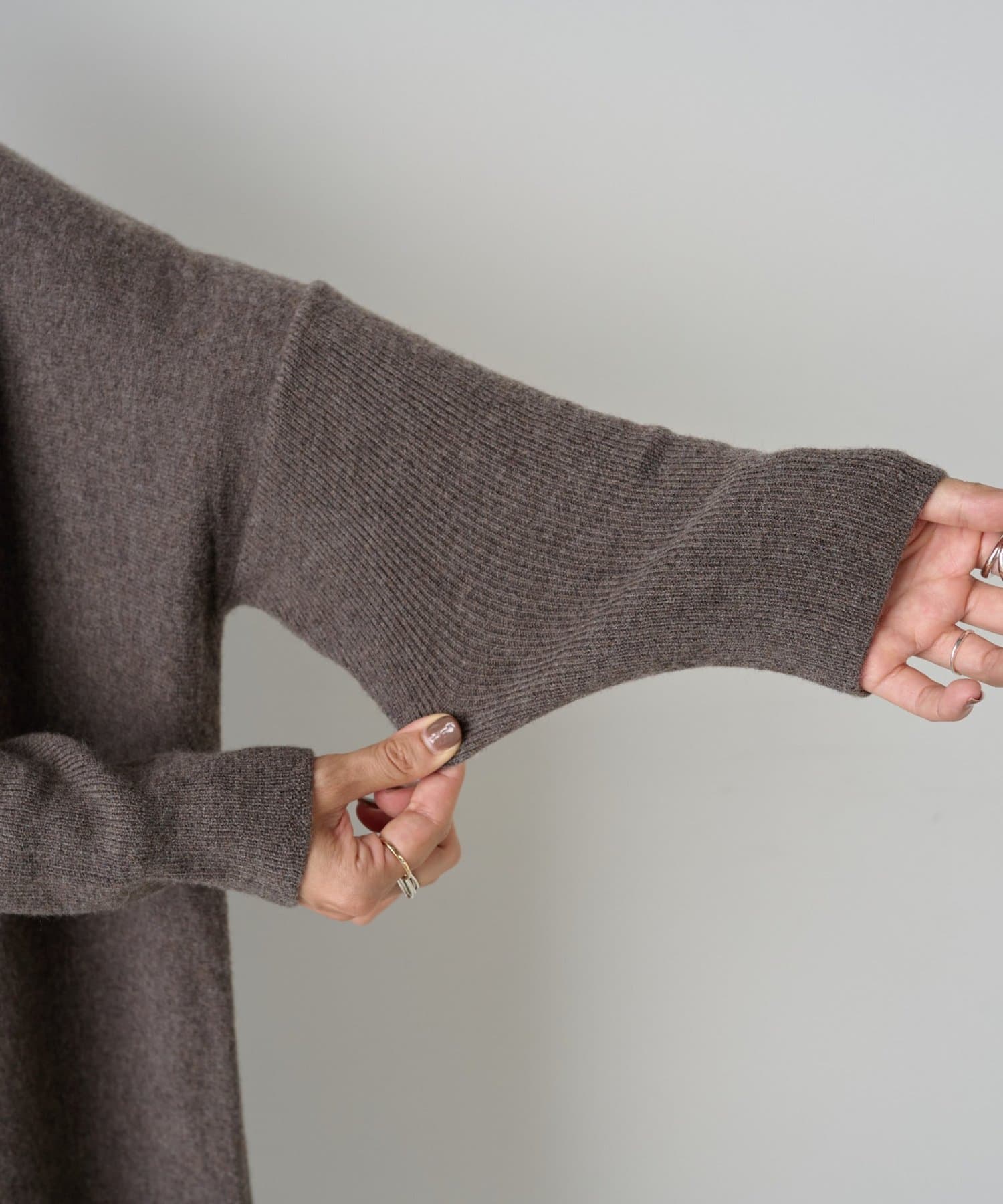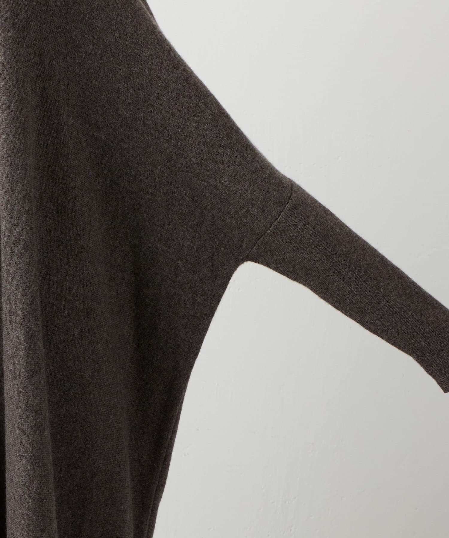 身頃をたっぷりととったドルマンスリーブにリブ編みの袖のバランスが絶妙なシルエットを生み出し、こなれ感を演出。