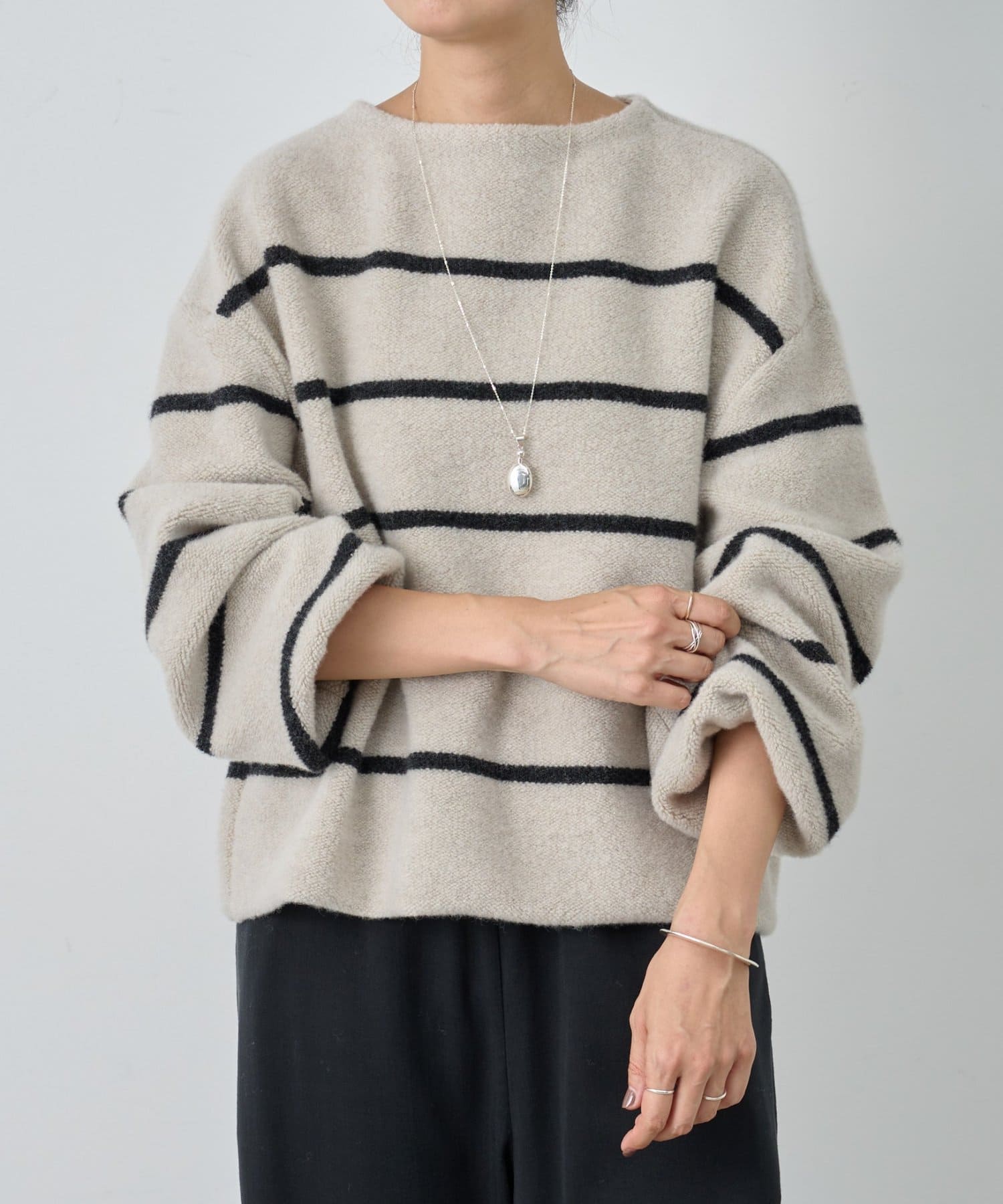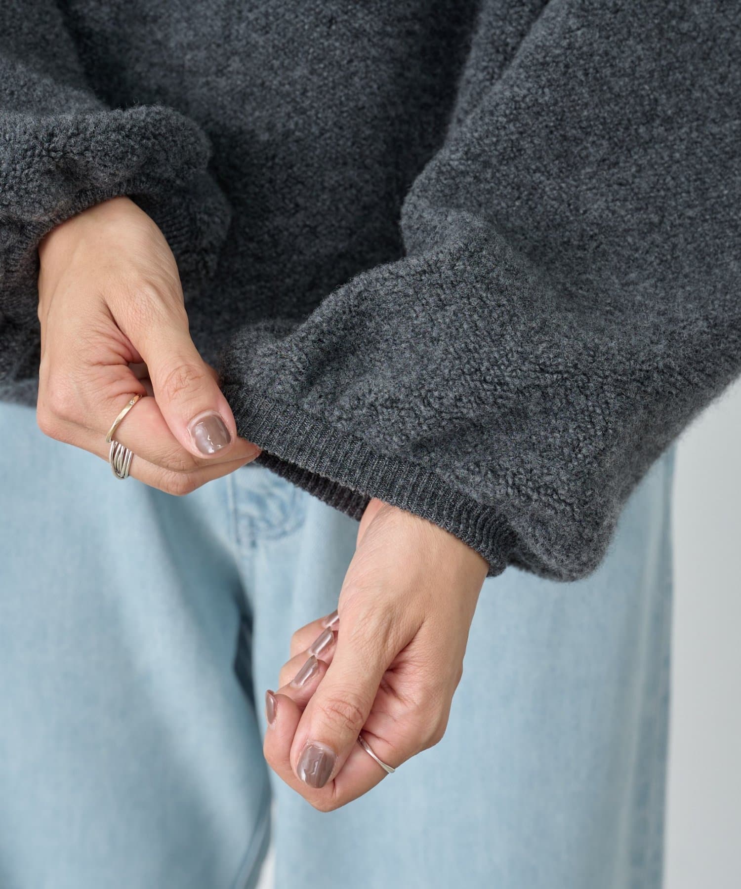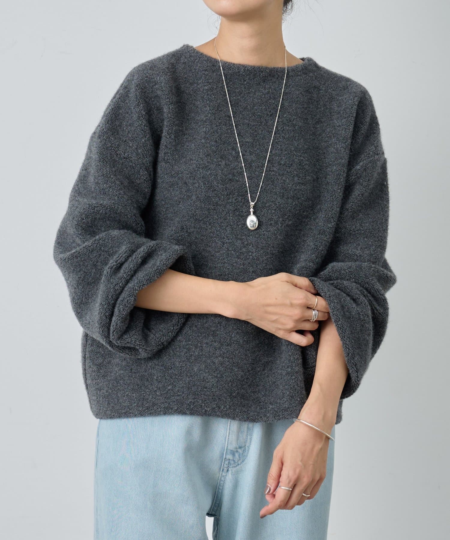 ウールパイル素材で仕立てた、やわらかな肌触りが魅力のニットプルオーバー。