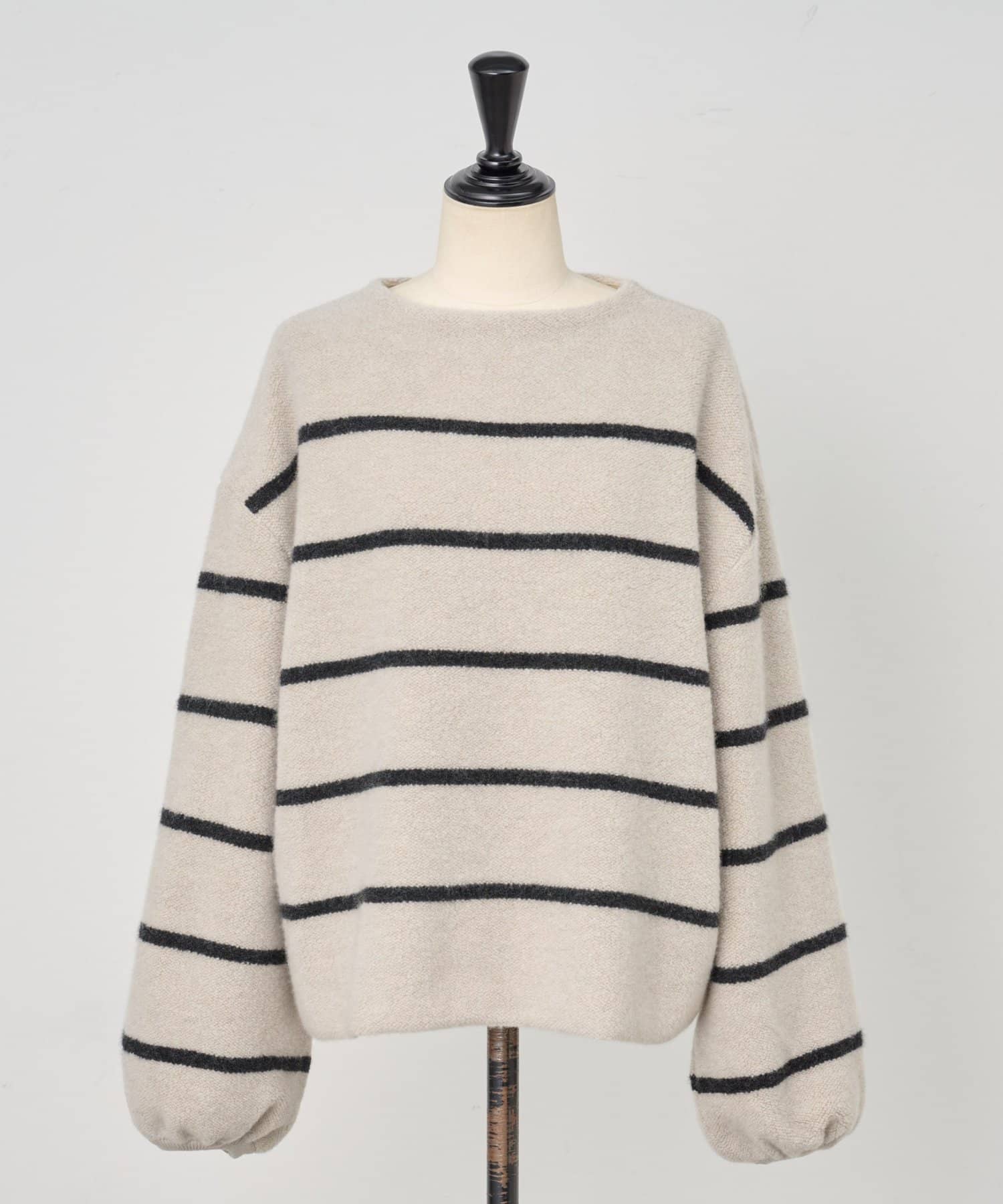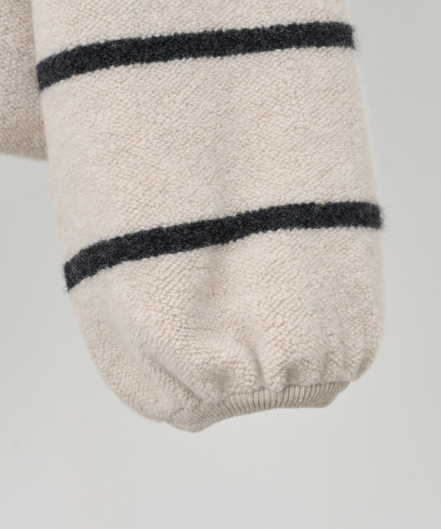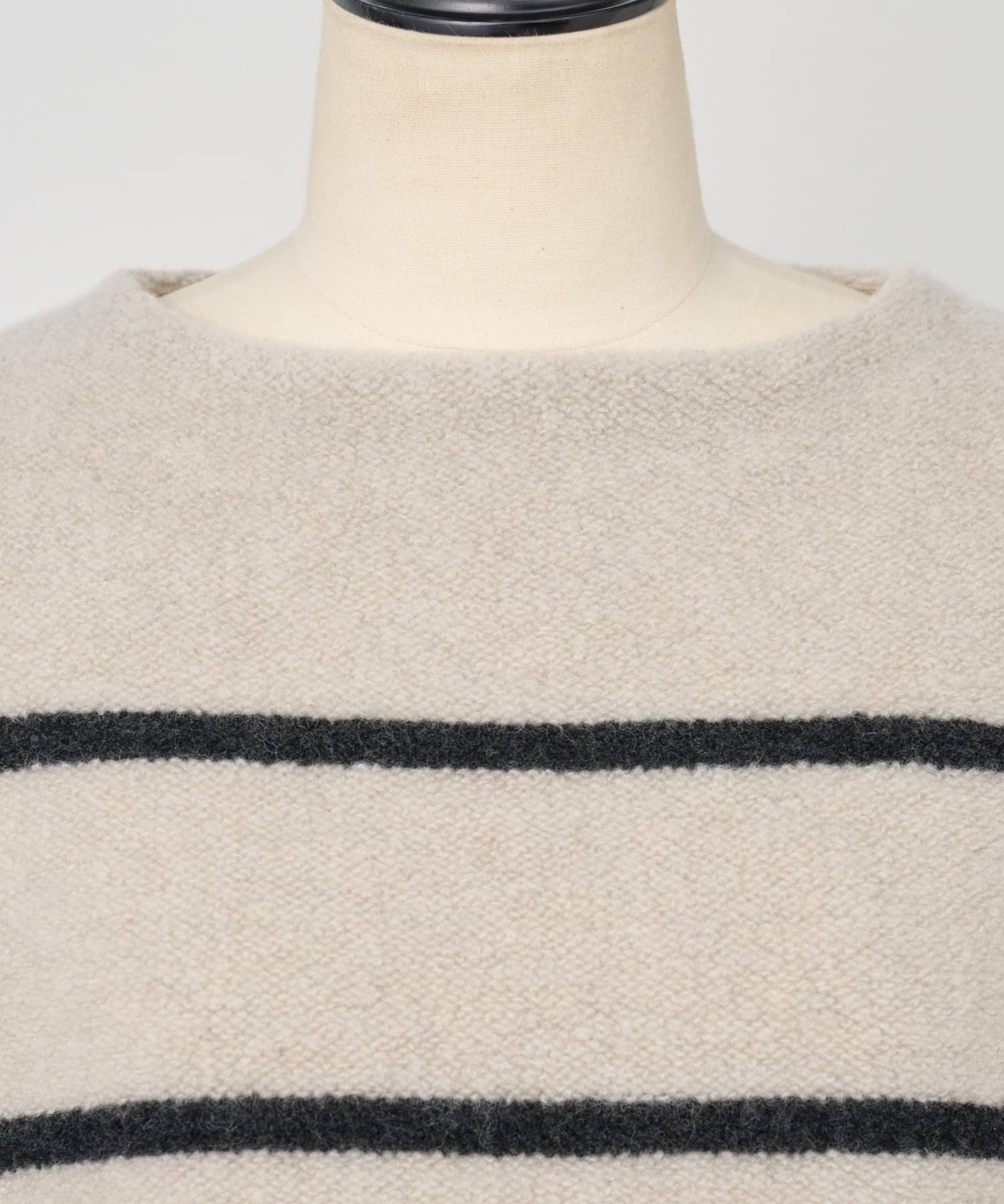 パイルの立体感を感じられる杢調のダークグレーと細いボーダーが大人カジュアルスタイルに相性の良いベージュの2色展開。