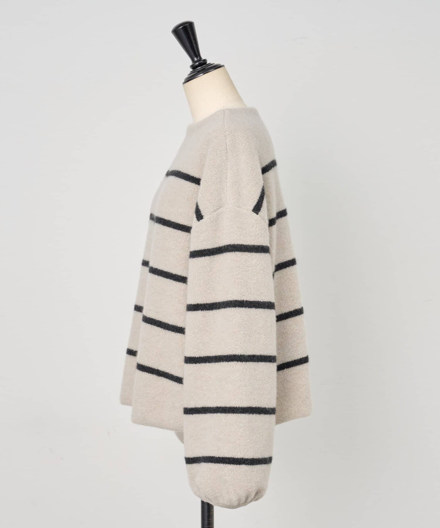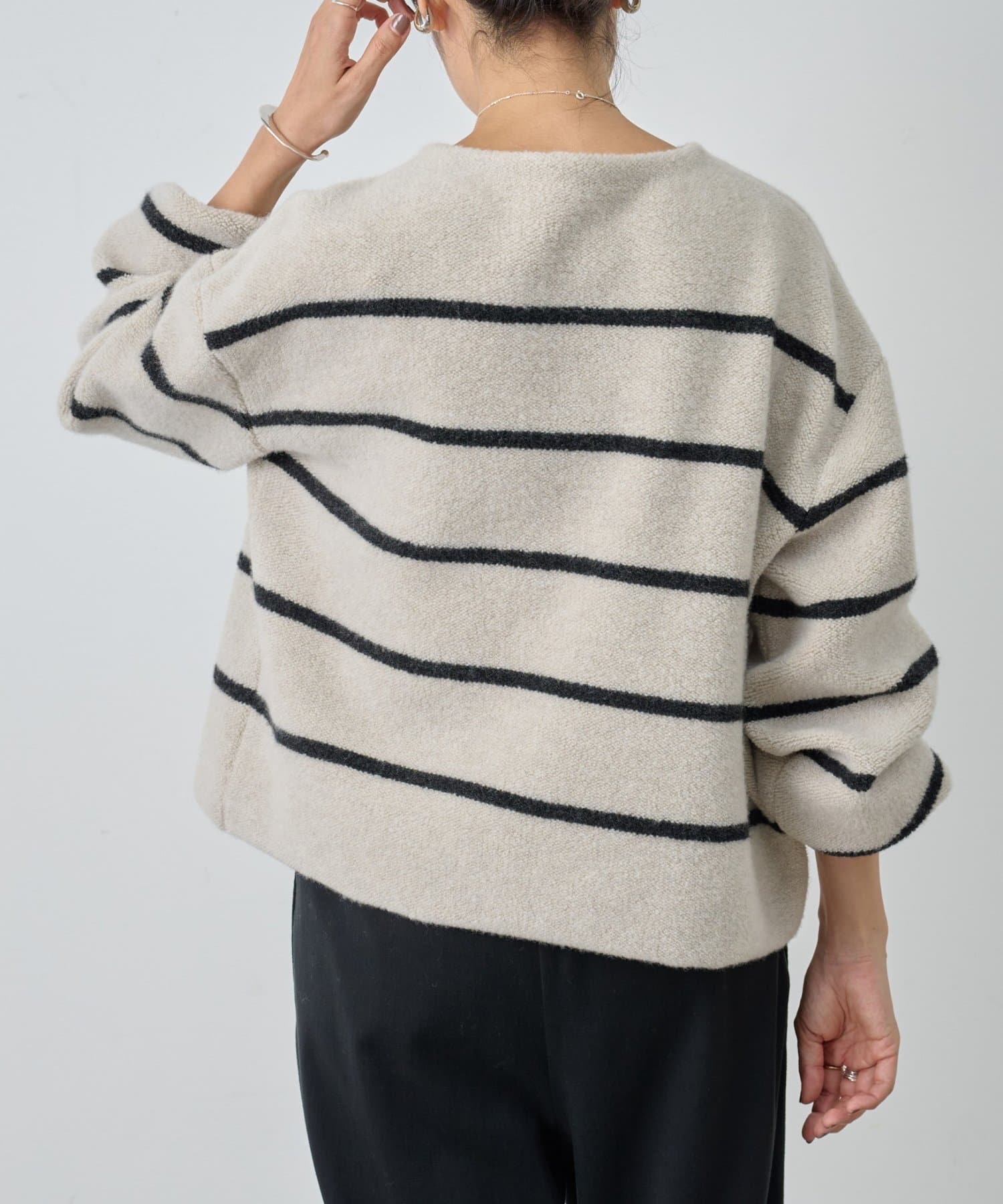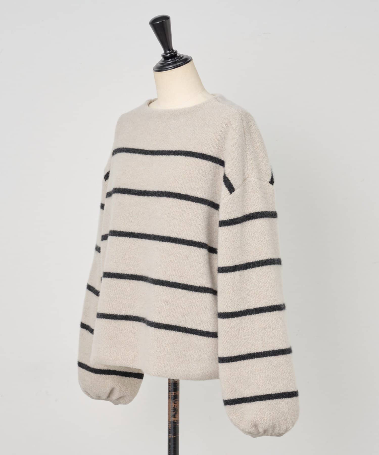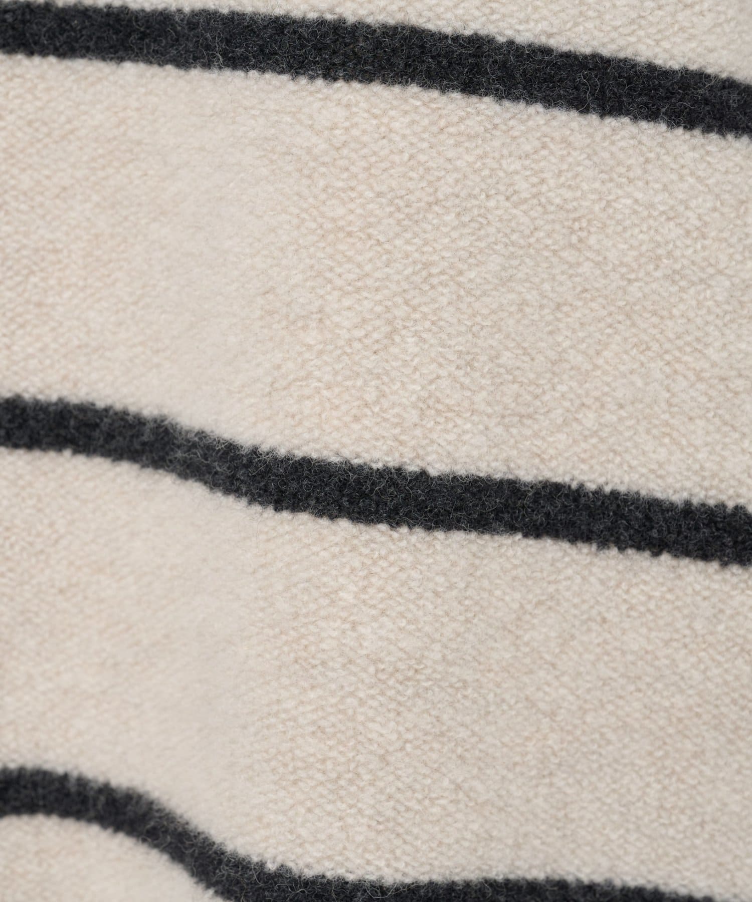 パイルの立体感を感じられる杢調のダークグレーと細いボーダーが大人カジュアルスタイルに相性の良いベージュの2色展開。