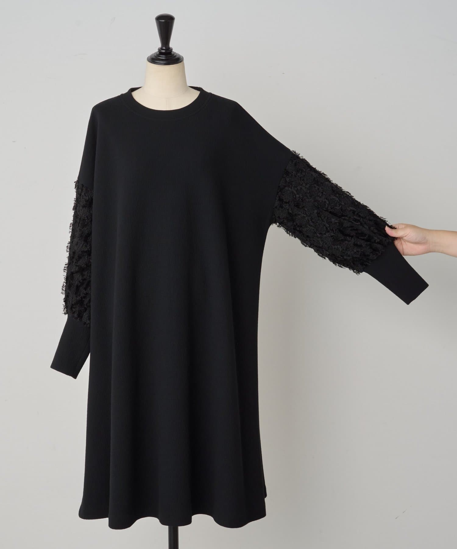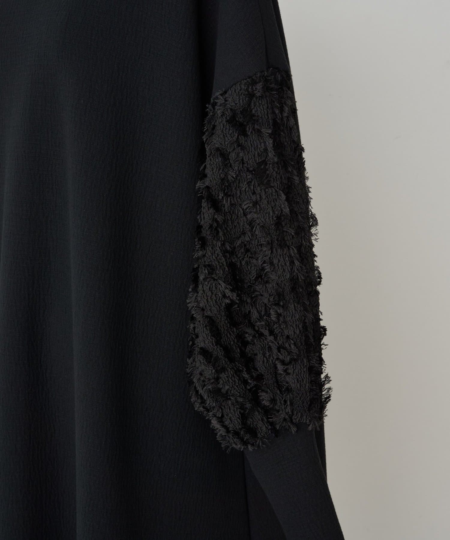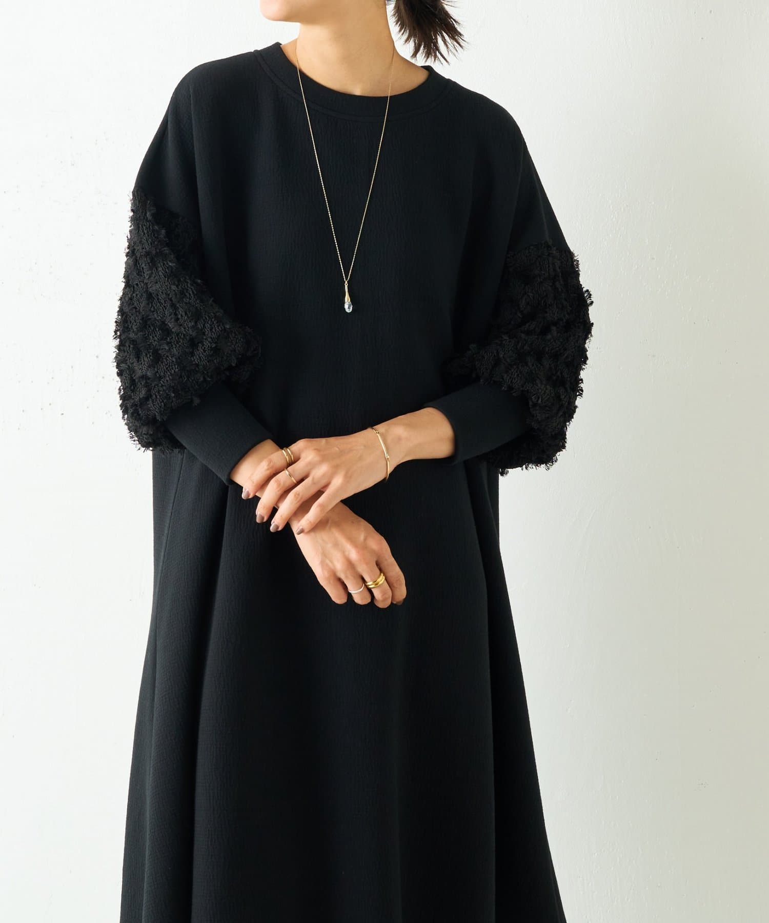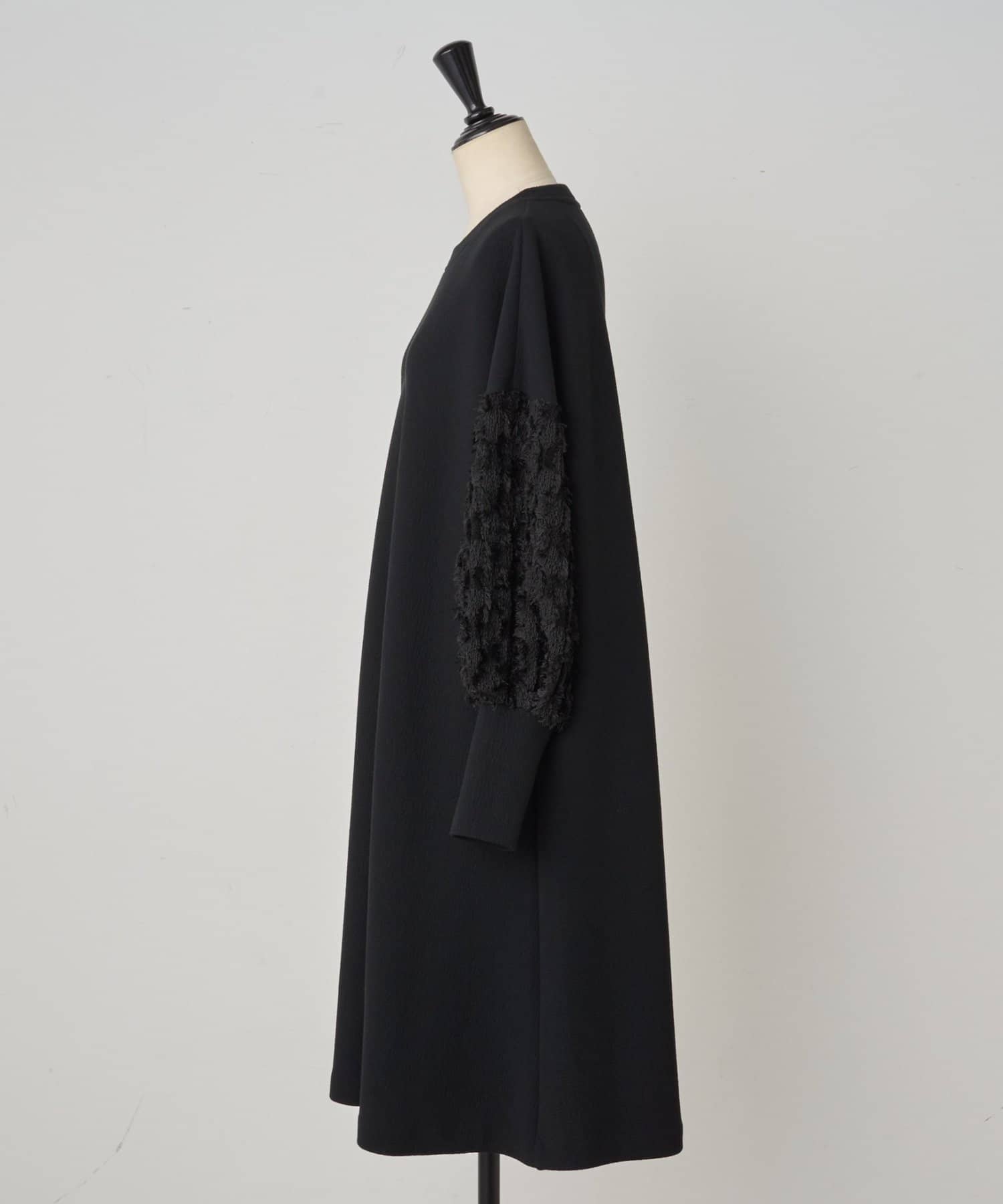 表情豊かなフリンジジャガード生地が目を引くミディアムワンピース。
