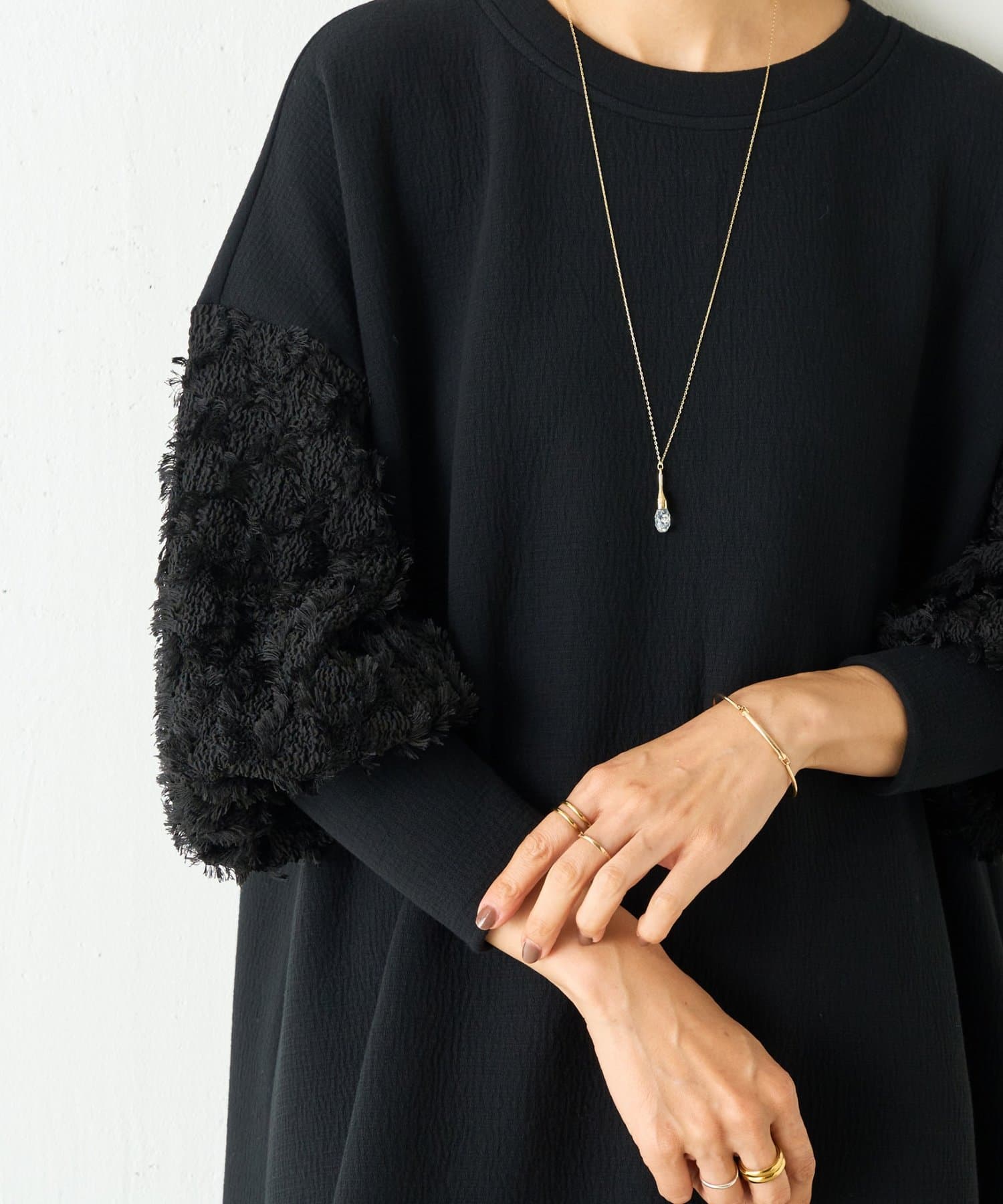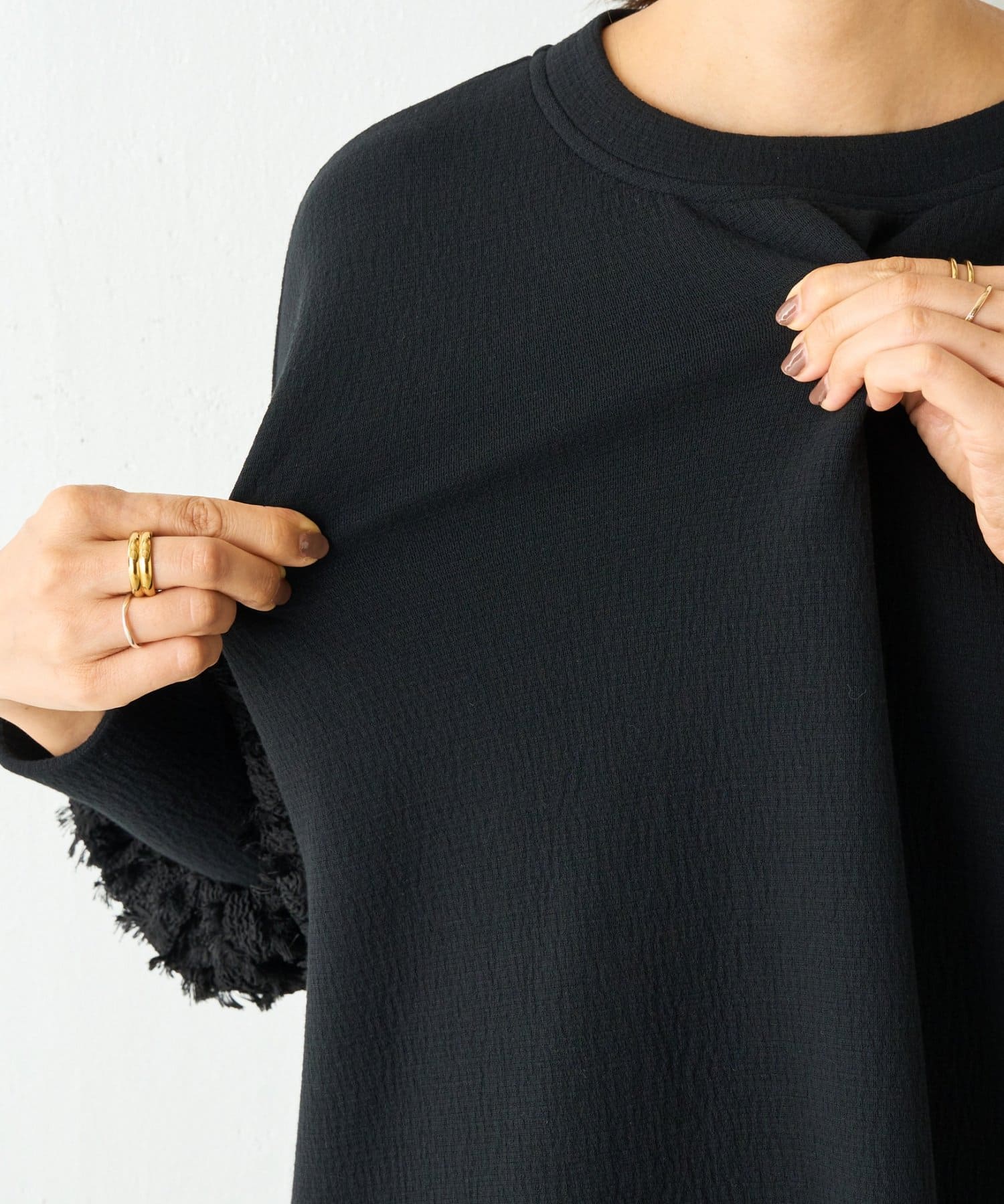ワントーンのブラックながら、シボ感のある立体的な生地が華やかさをプラスします。
