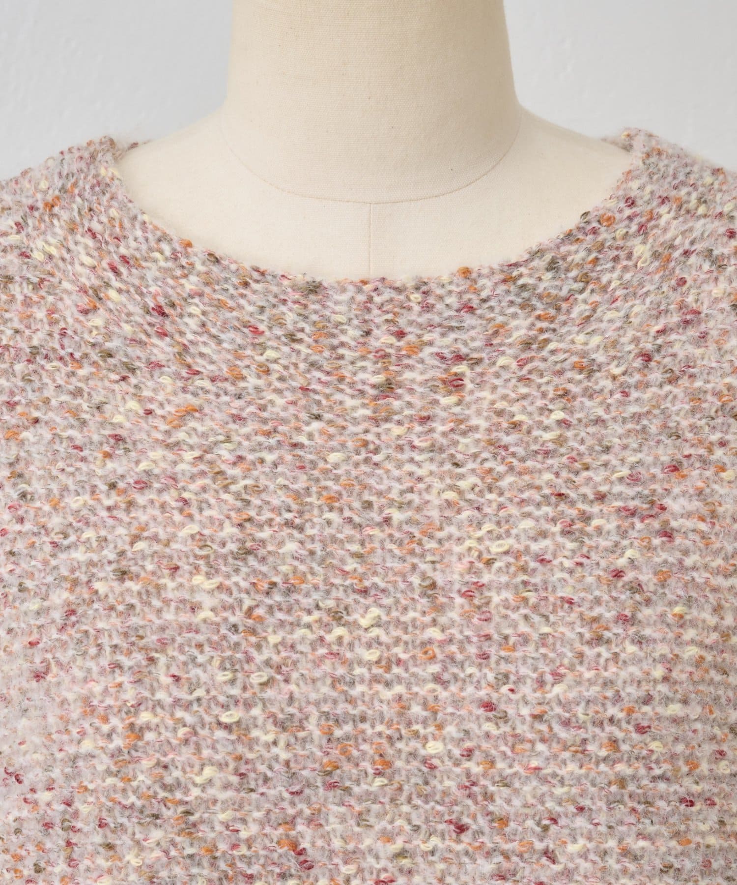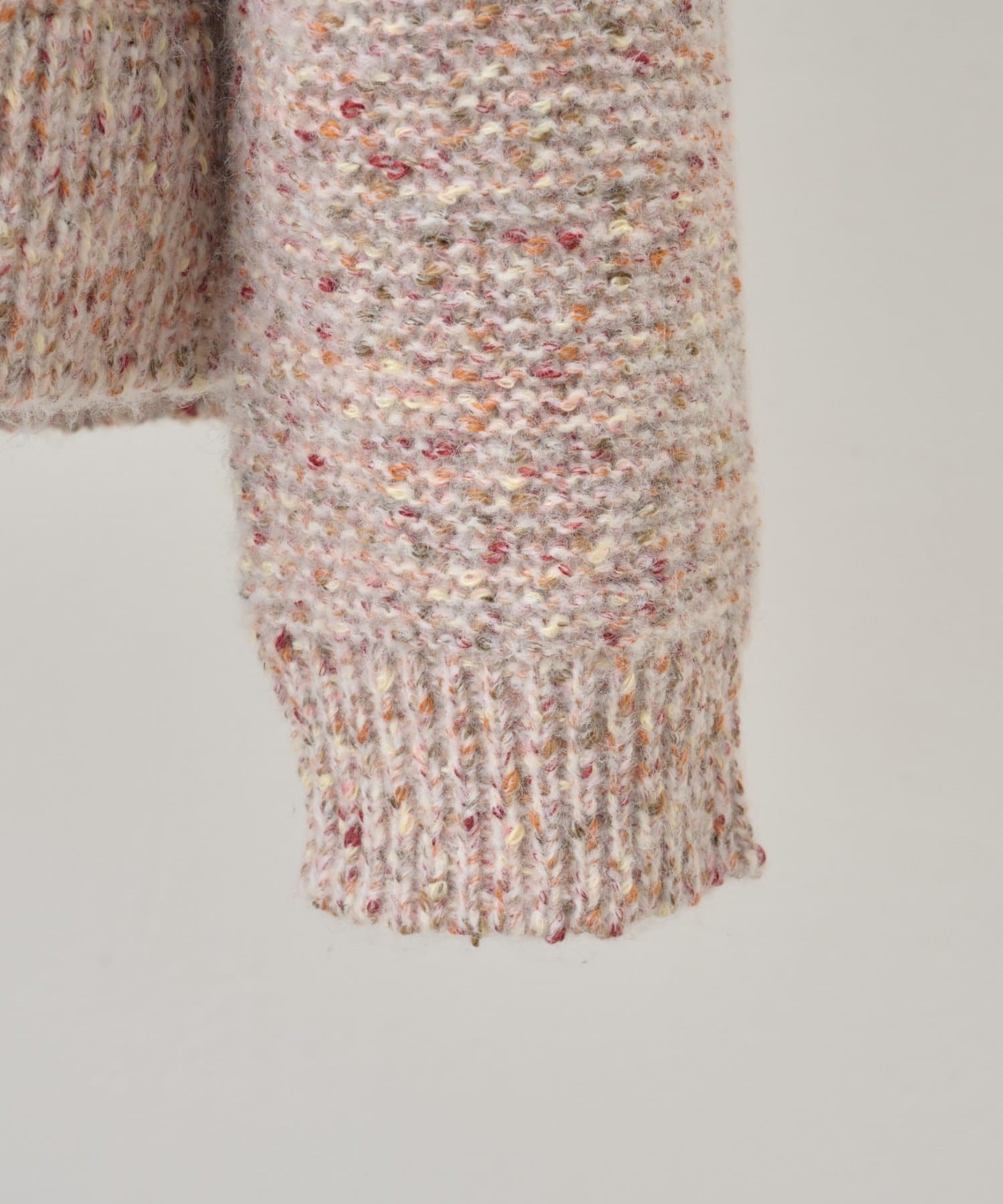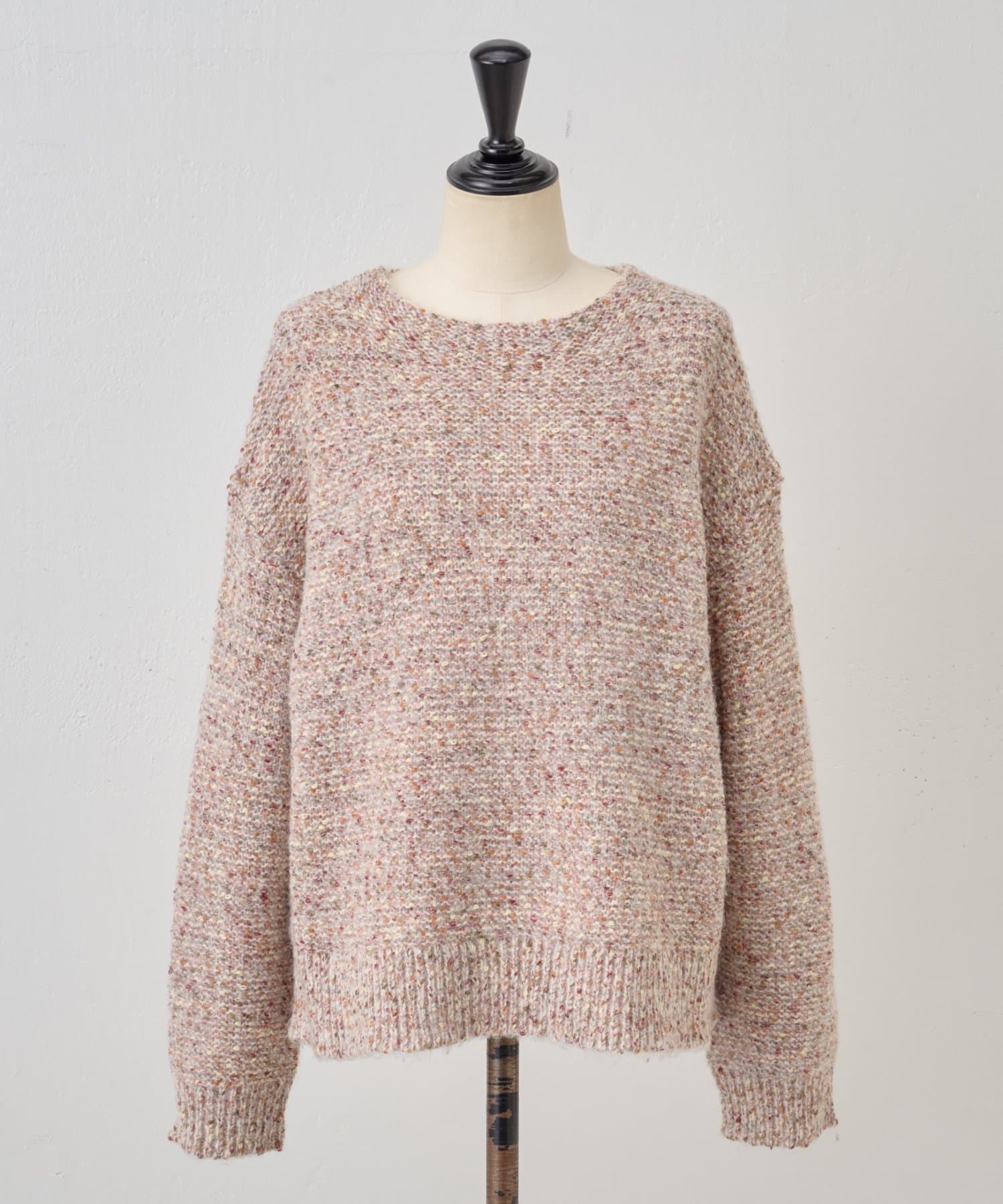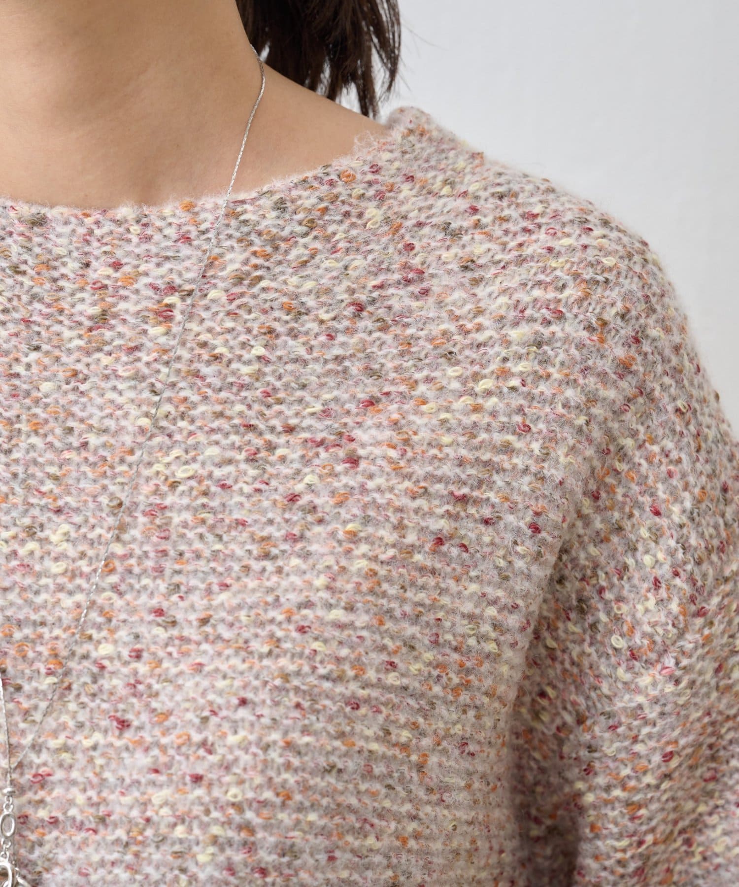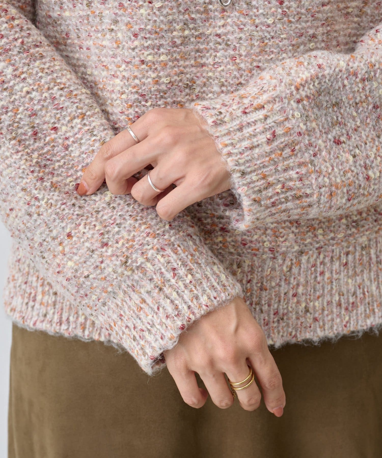 様々なカラーのミックスヤーンで編み上げた温かみのあるニットプルオーバー。