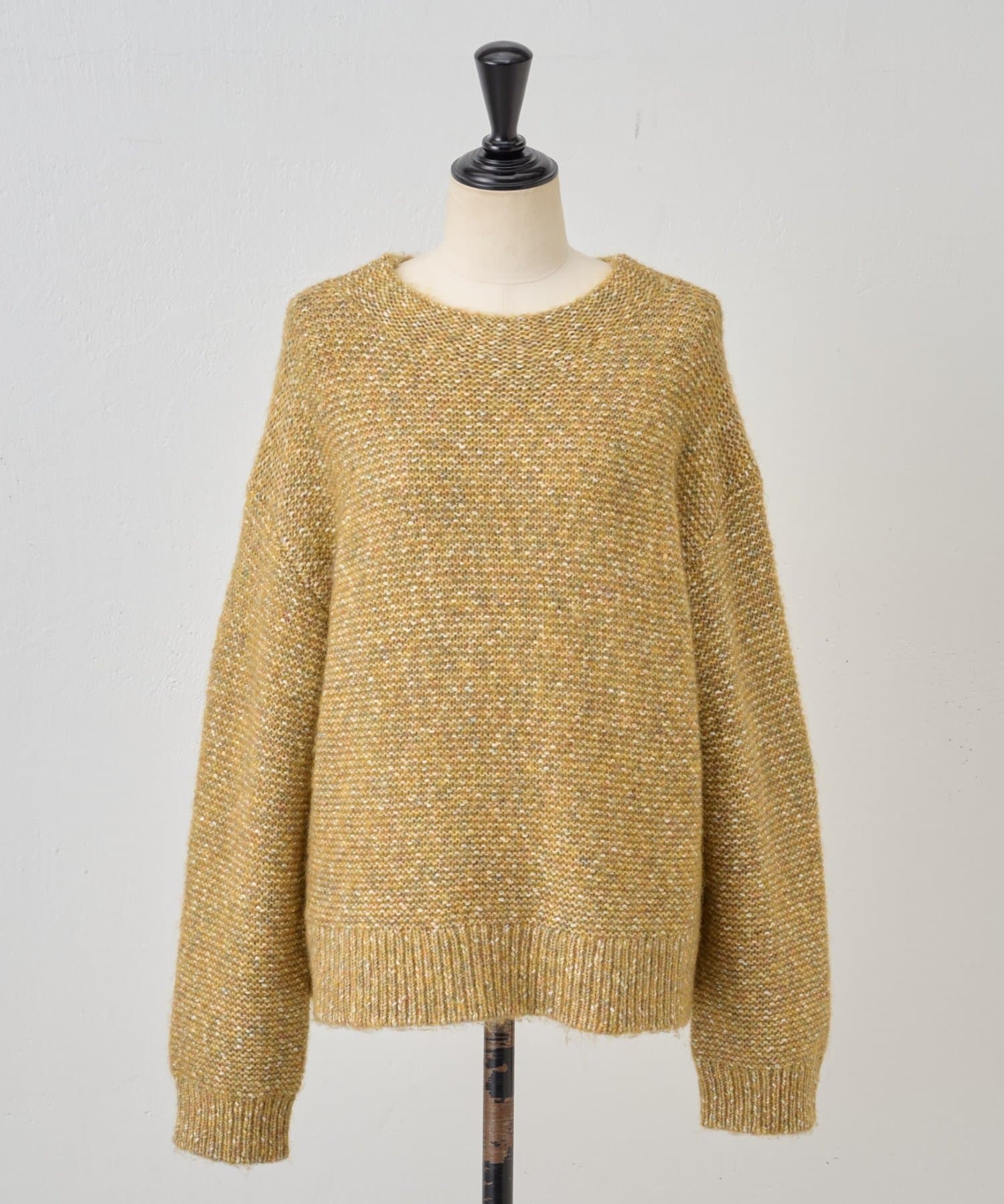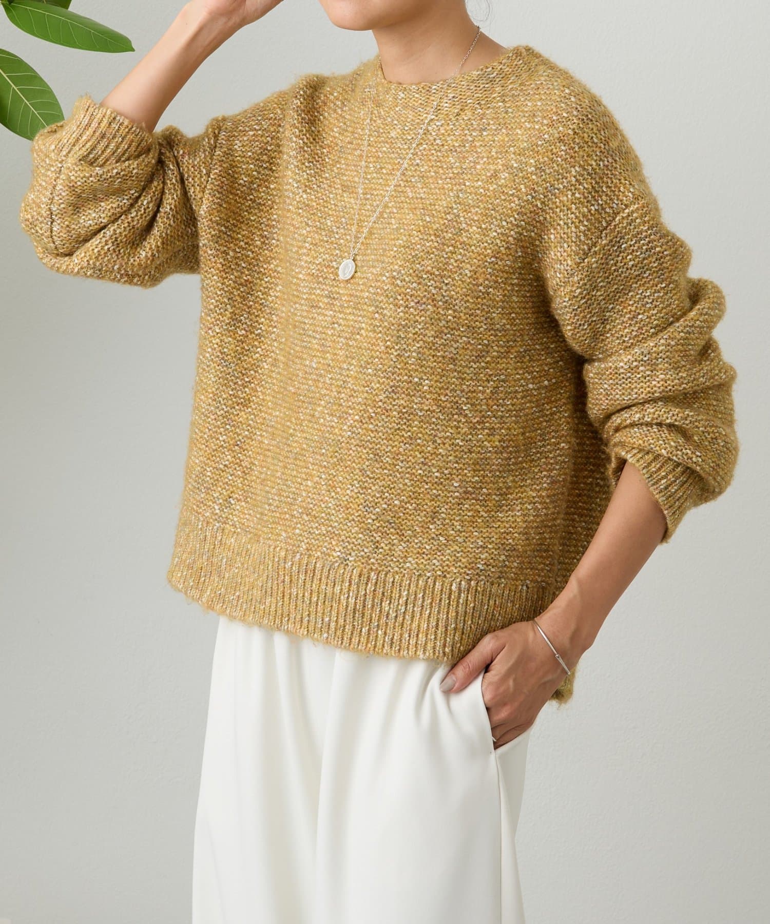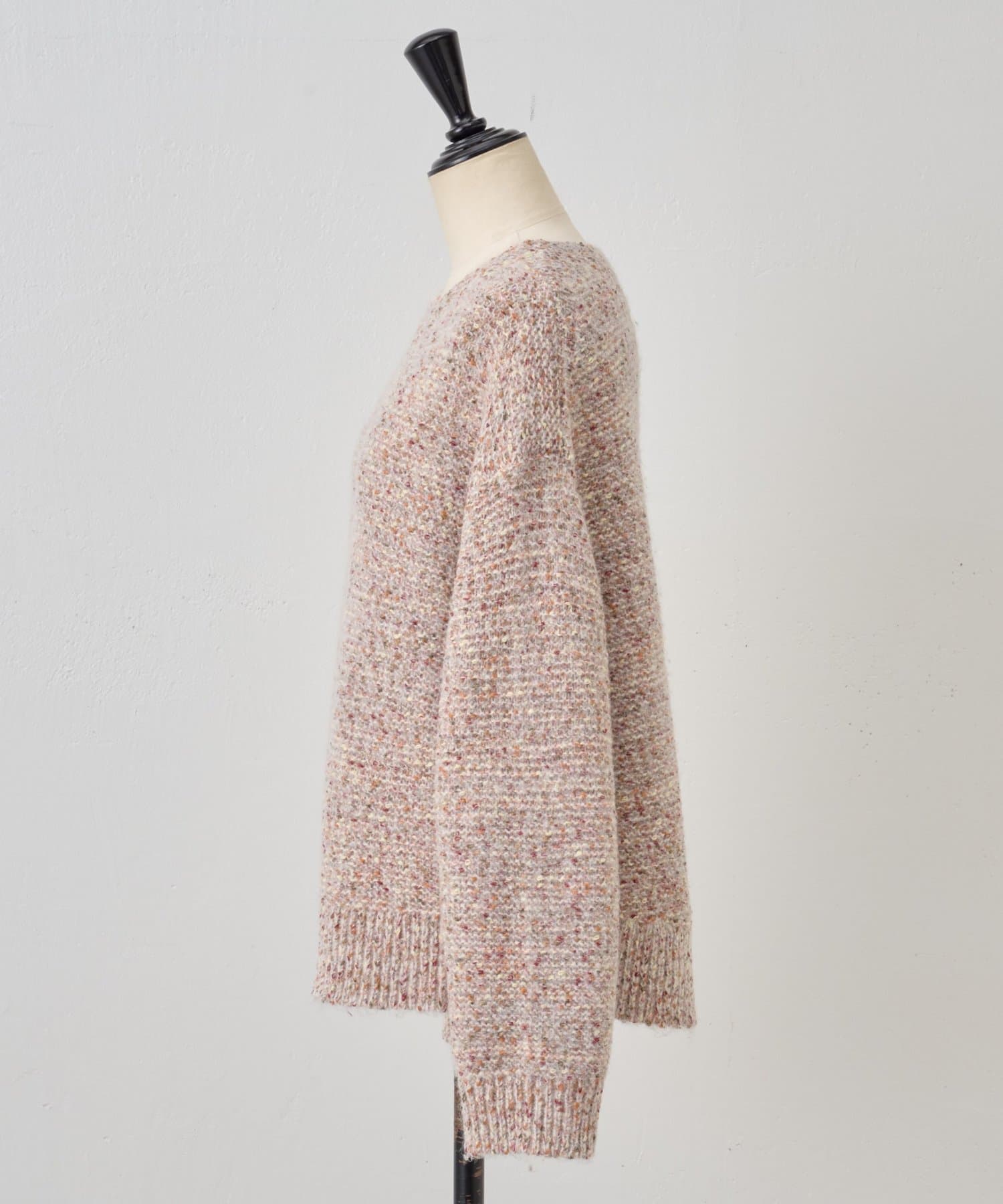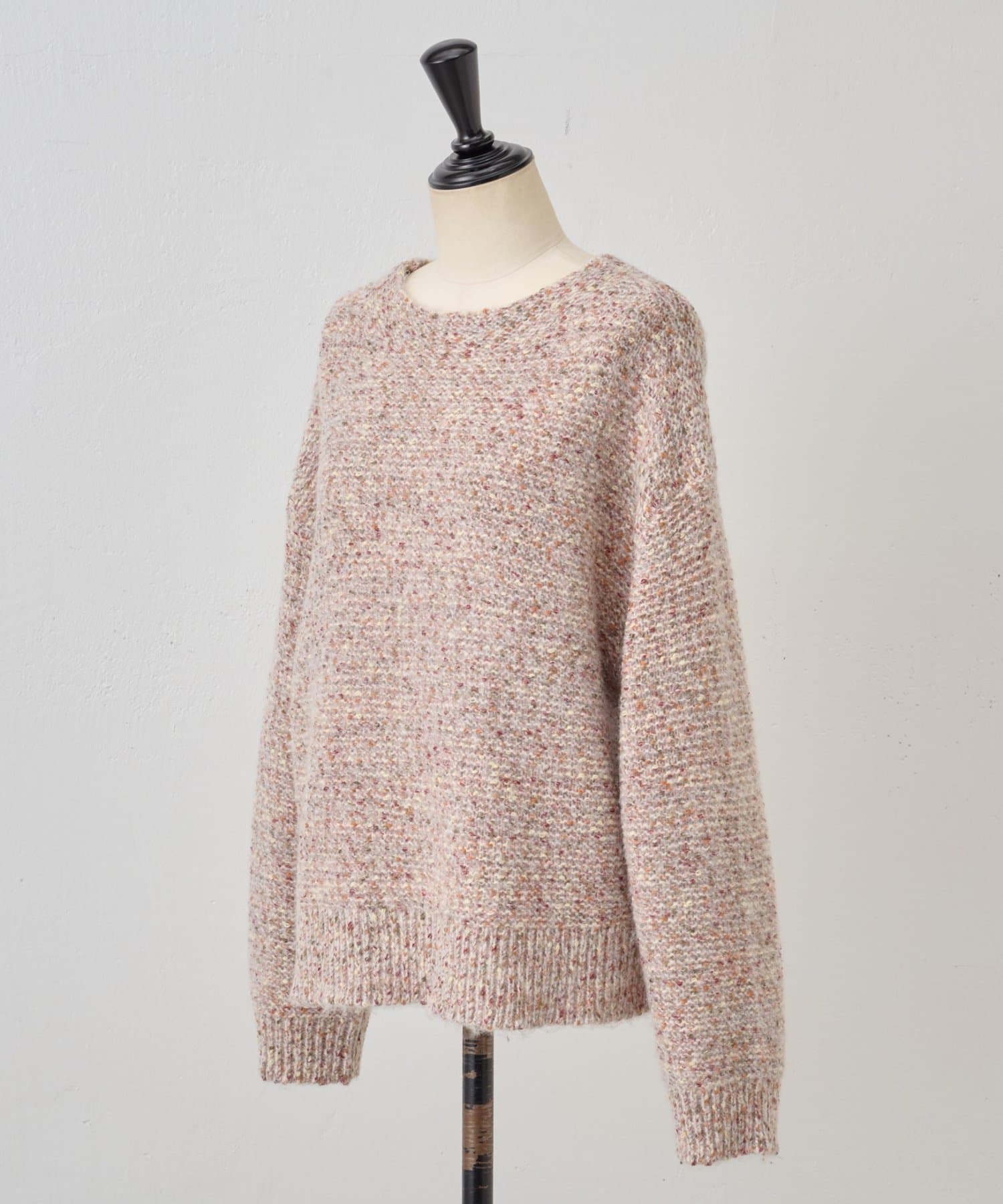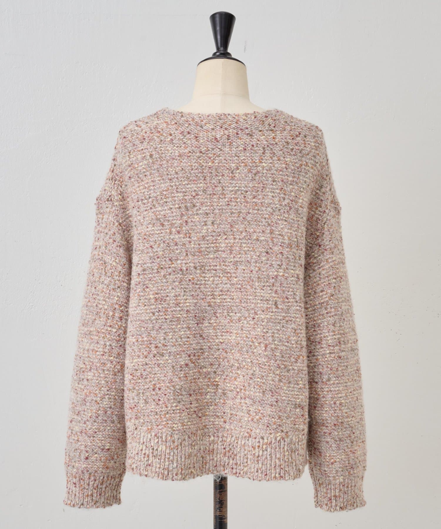 様々なカラーのミックスヤーンで編み上げた温かみのあるニットプルオーバー。